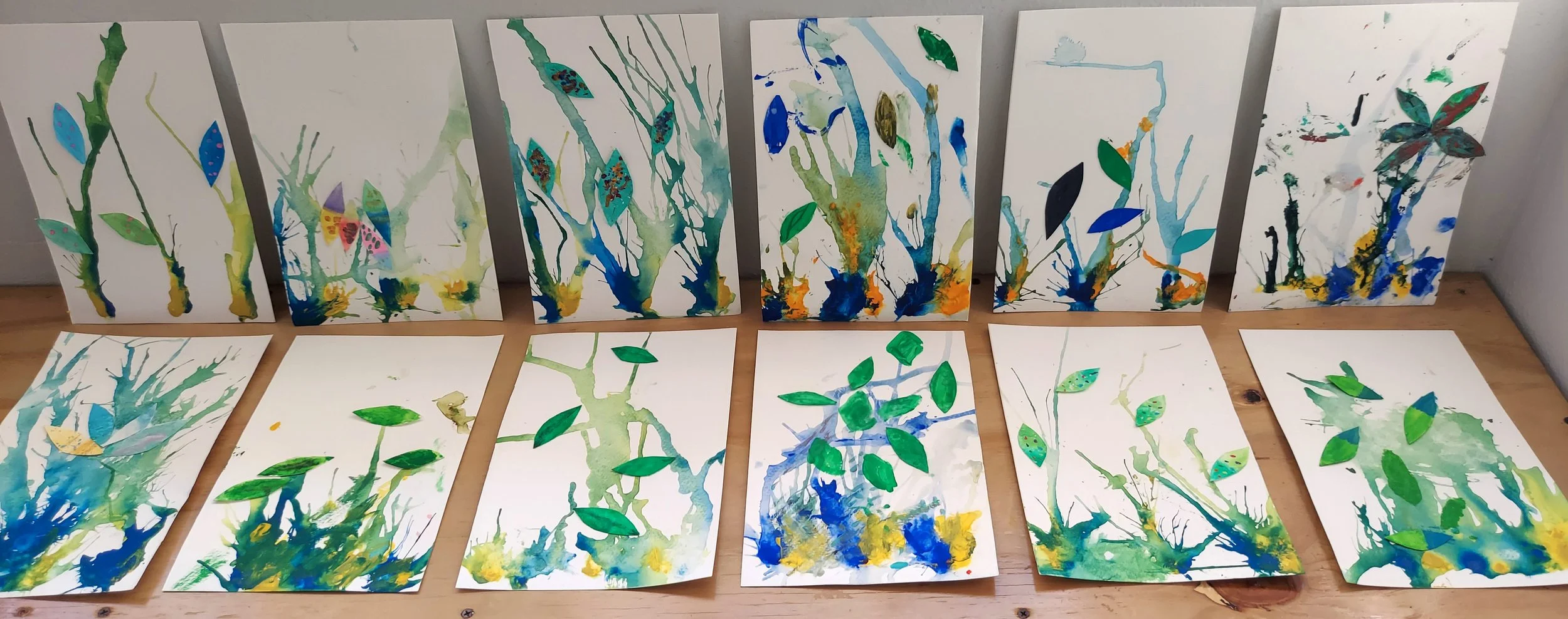 Leaves and branches were the focus of the air-blown watercolor paintings the kids did at their special watercolor workshop held this week.