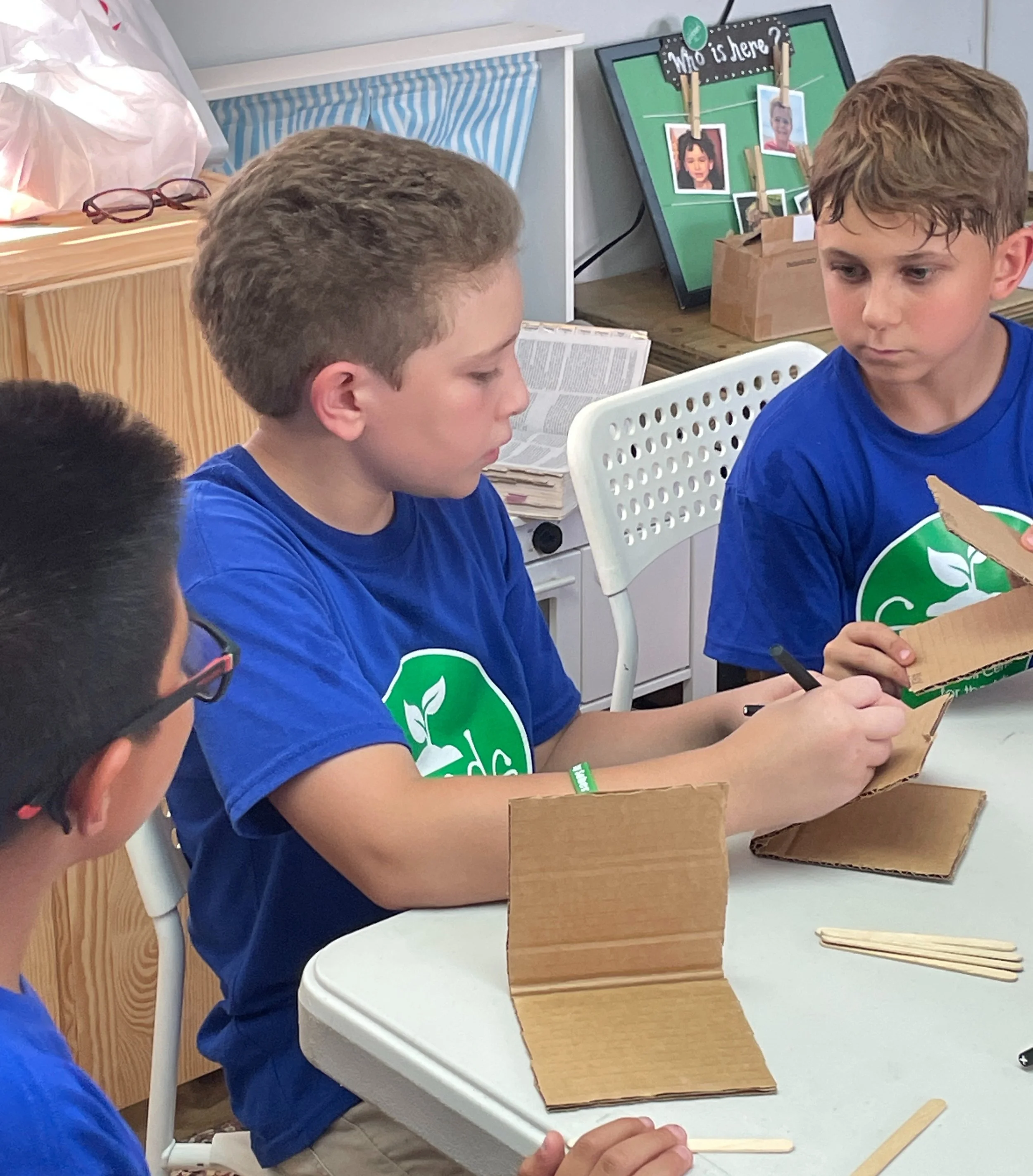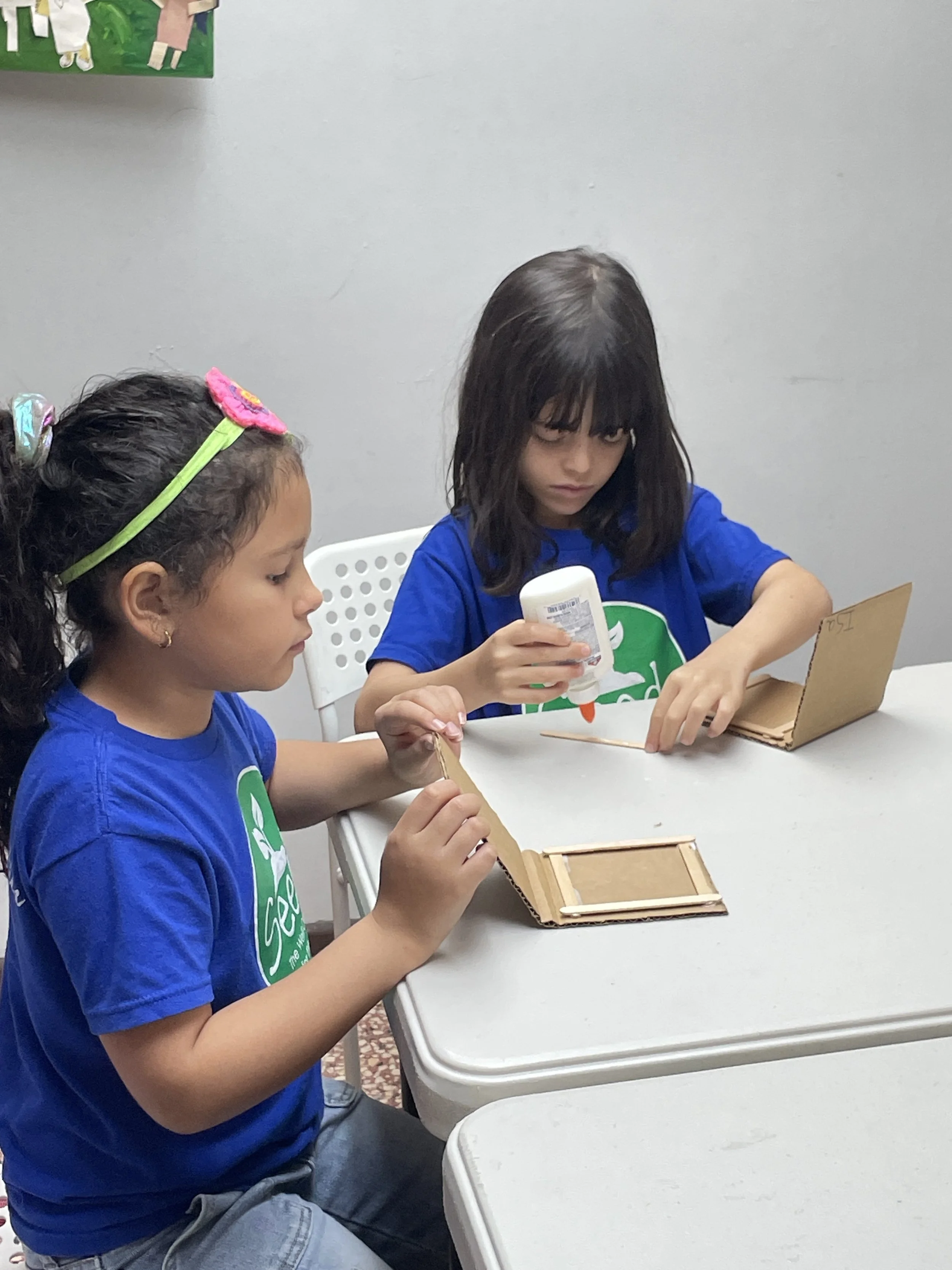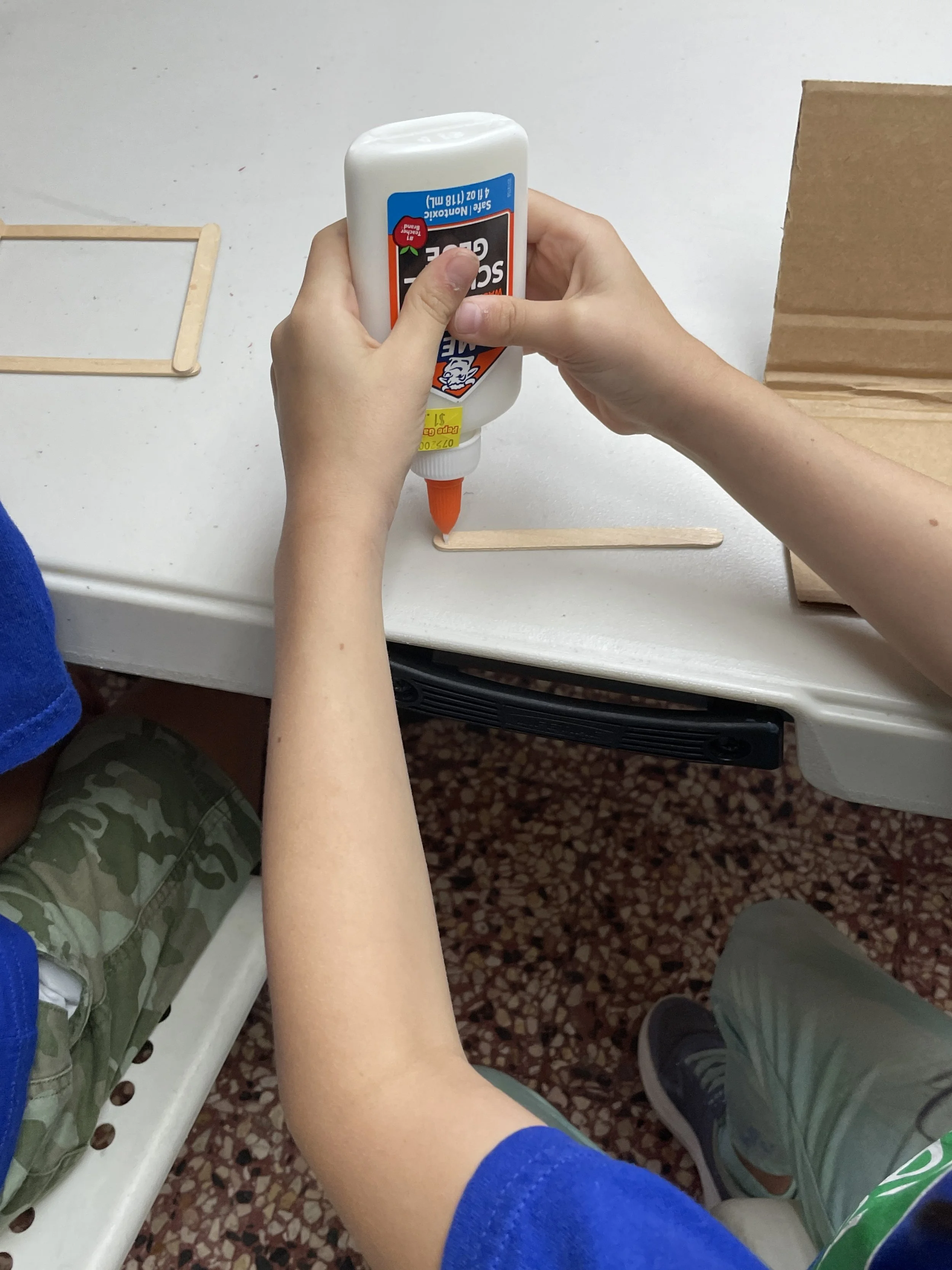In our first studio time, we had prepared an art activity for the students. They began to create a tool that students used in ancient Rome using craft sticks, glue, and cardboard. They will add the final elements this week and discover what it was and what it was used for.