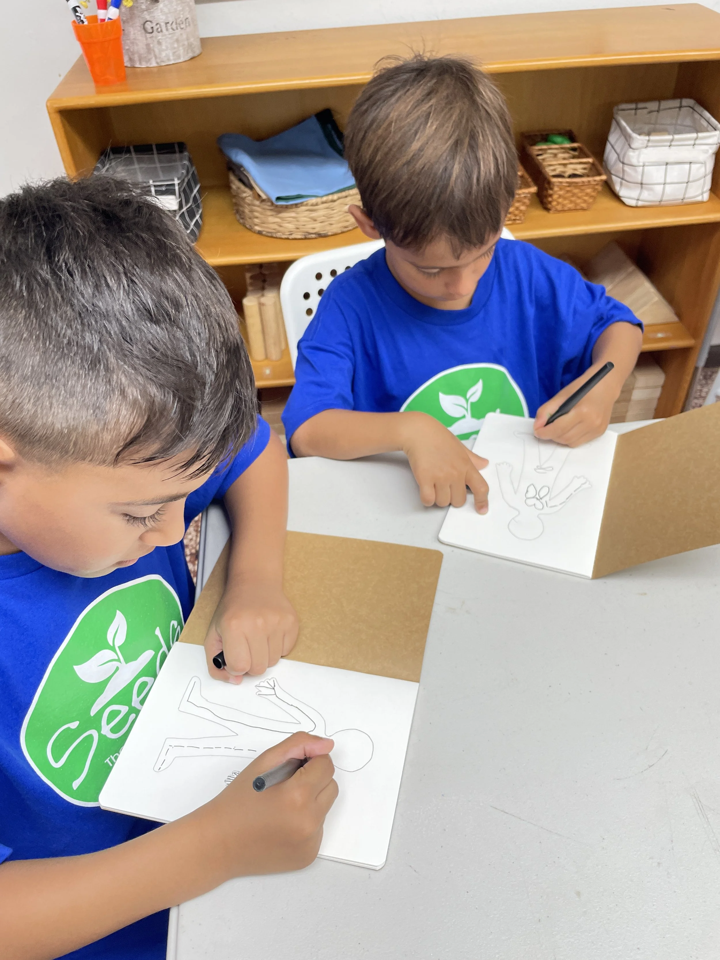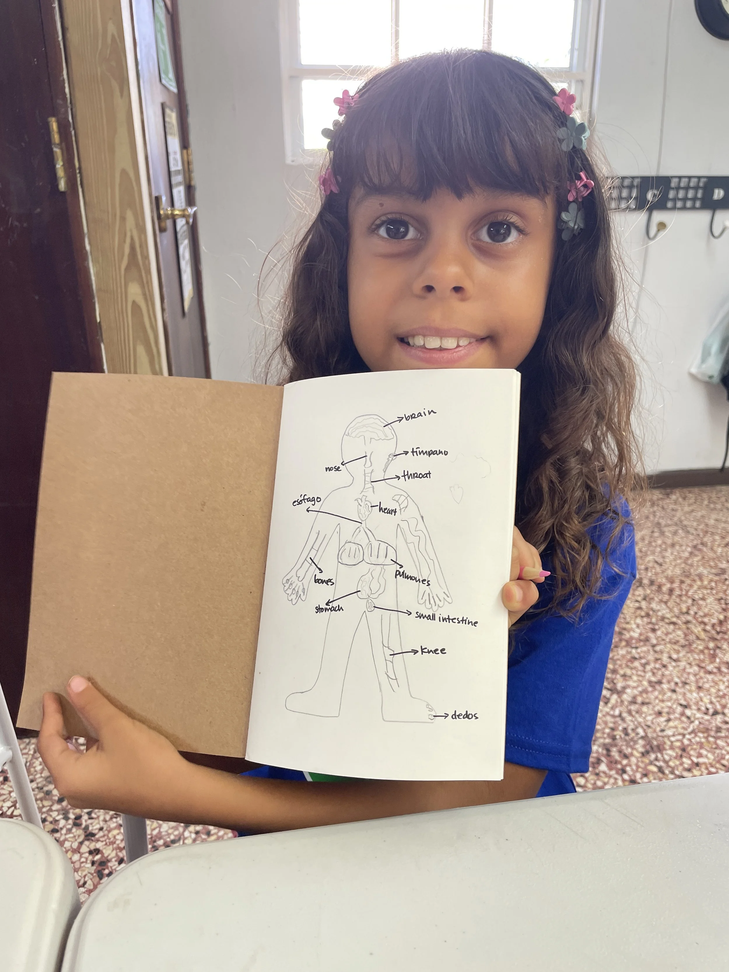 Our first class was an introduction to our theme of the year: Anatomy. The students received their science journals and were invited to do their first activity of the year. Their first page had an outline of a person and they were given a pencil to draw anything they knew we have inside our bodies. They went right to work including bones, lungs, hearts, and many other parts. This is a great starting point to see how much we know and then compare with how much they learned at the end of the school year. This week, we will begin to discuss cells, the building blocks of life.