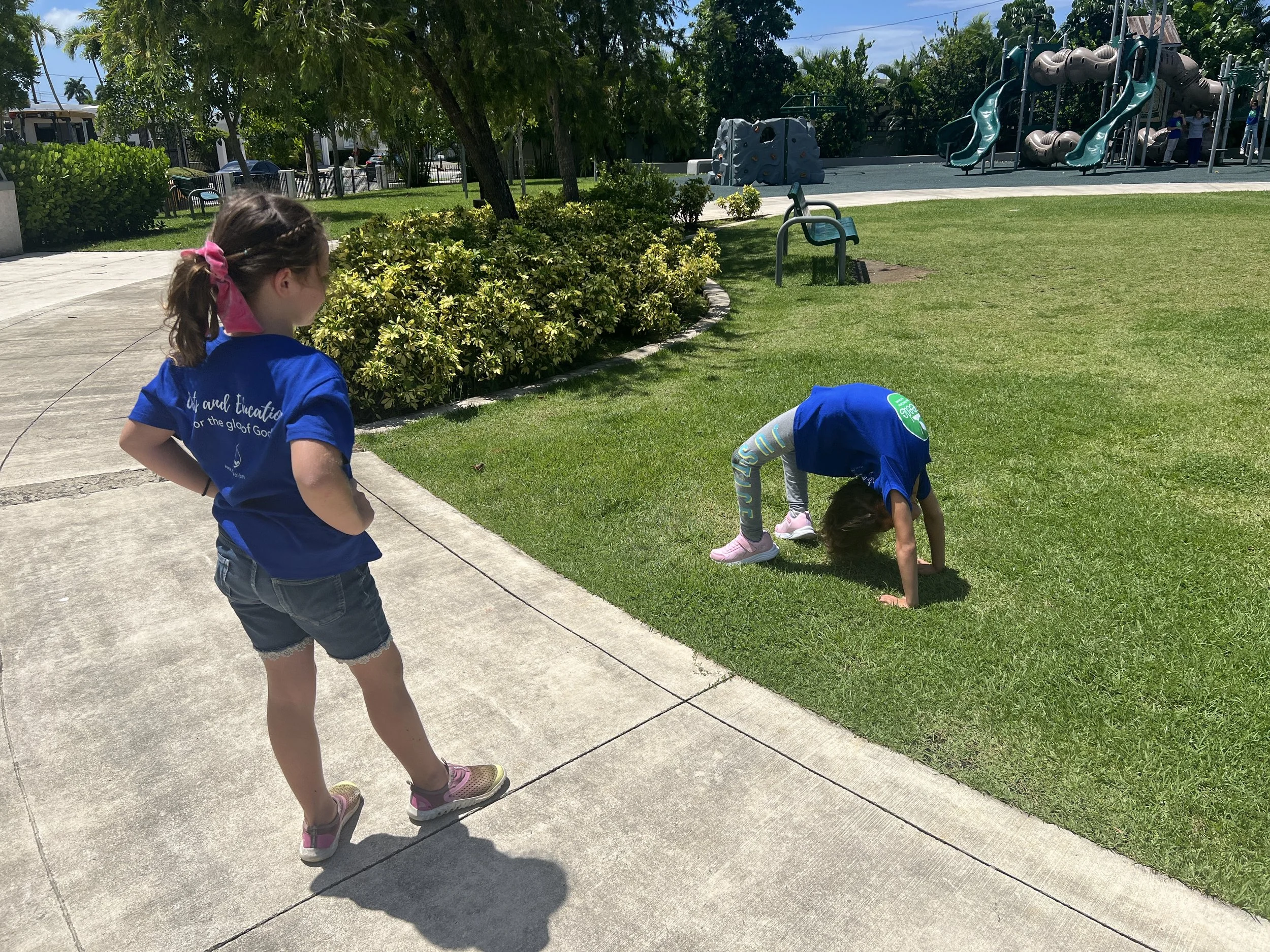 We had a great day getting to know each other and the routines we practice at the Center. We began with our time of worship, where we began to learn our first memory verse of the year Galatians 4:4-5 and our first hymn, “Tis So Sweet to Trust in Jesus.” We learned where our classes were and had a great time together during both of our outdoor park times.