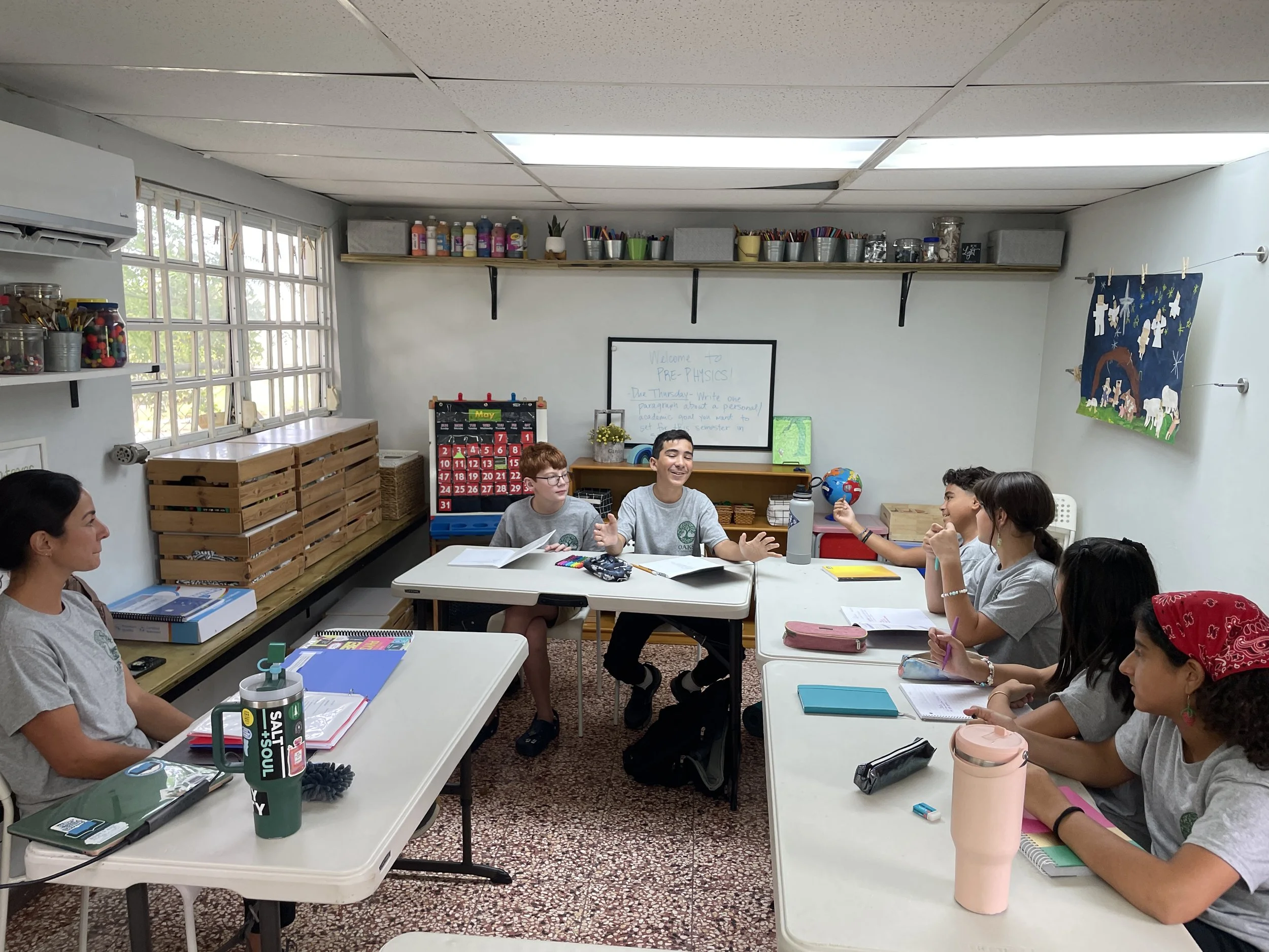 This week in both Oaks science classes—Pre-Physics and Chemistry— the students were oriented to how the class will flow, assignment expectations, and how to use their online class portal which includes Dr. Landry’s class videos and virtual labs. Also, the students were given the chance to reflect on their academic goals for this year of science which proved very fruitful when they shared their goals in class.