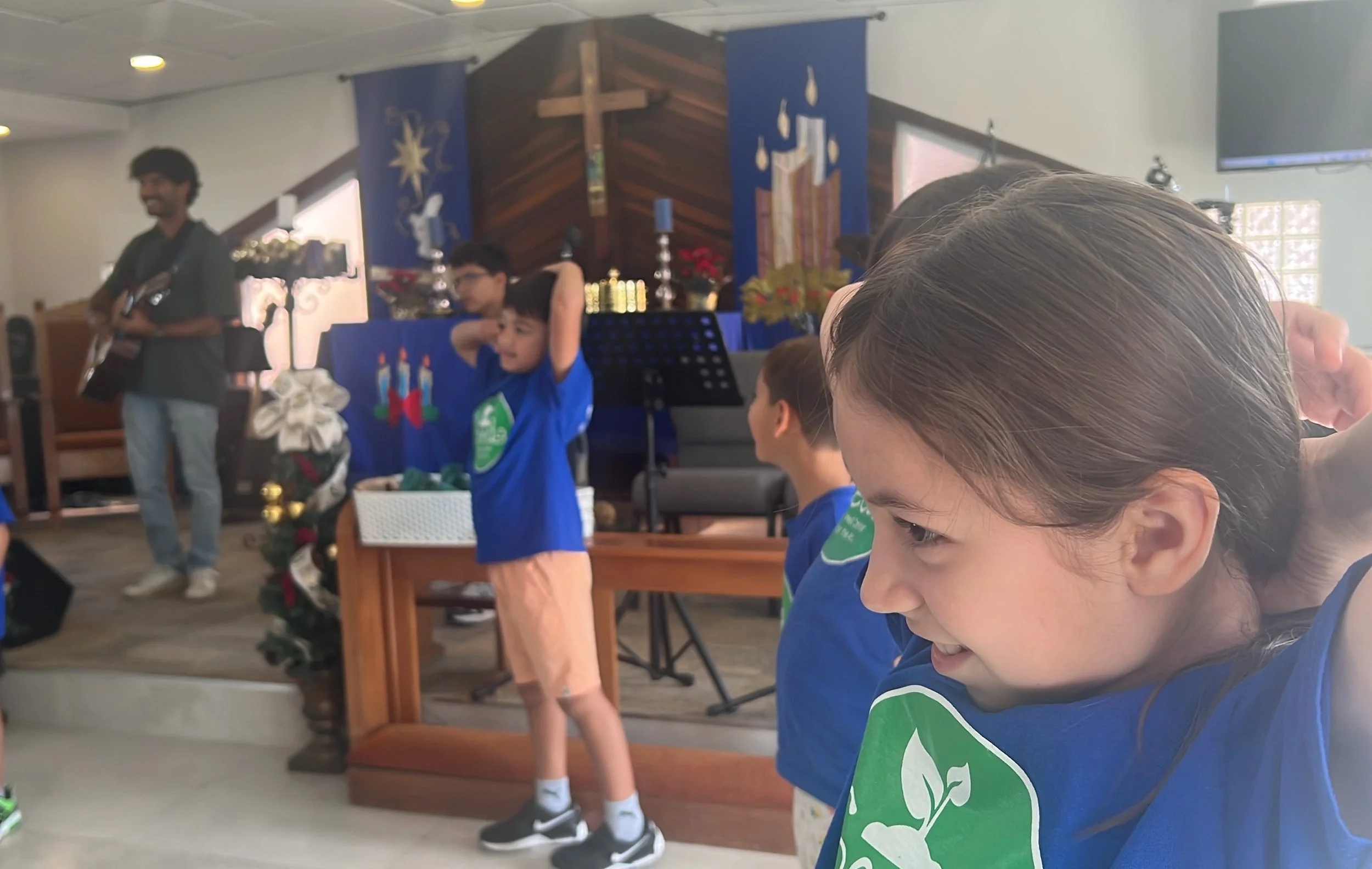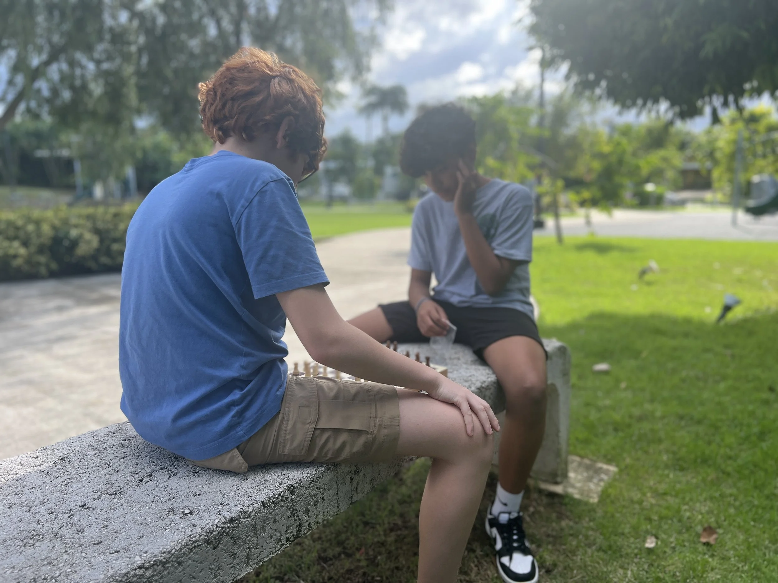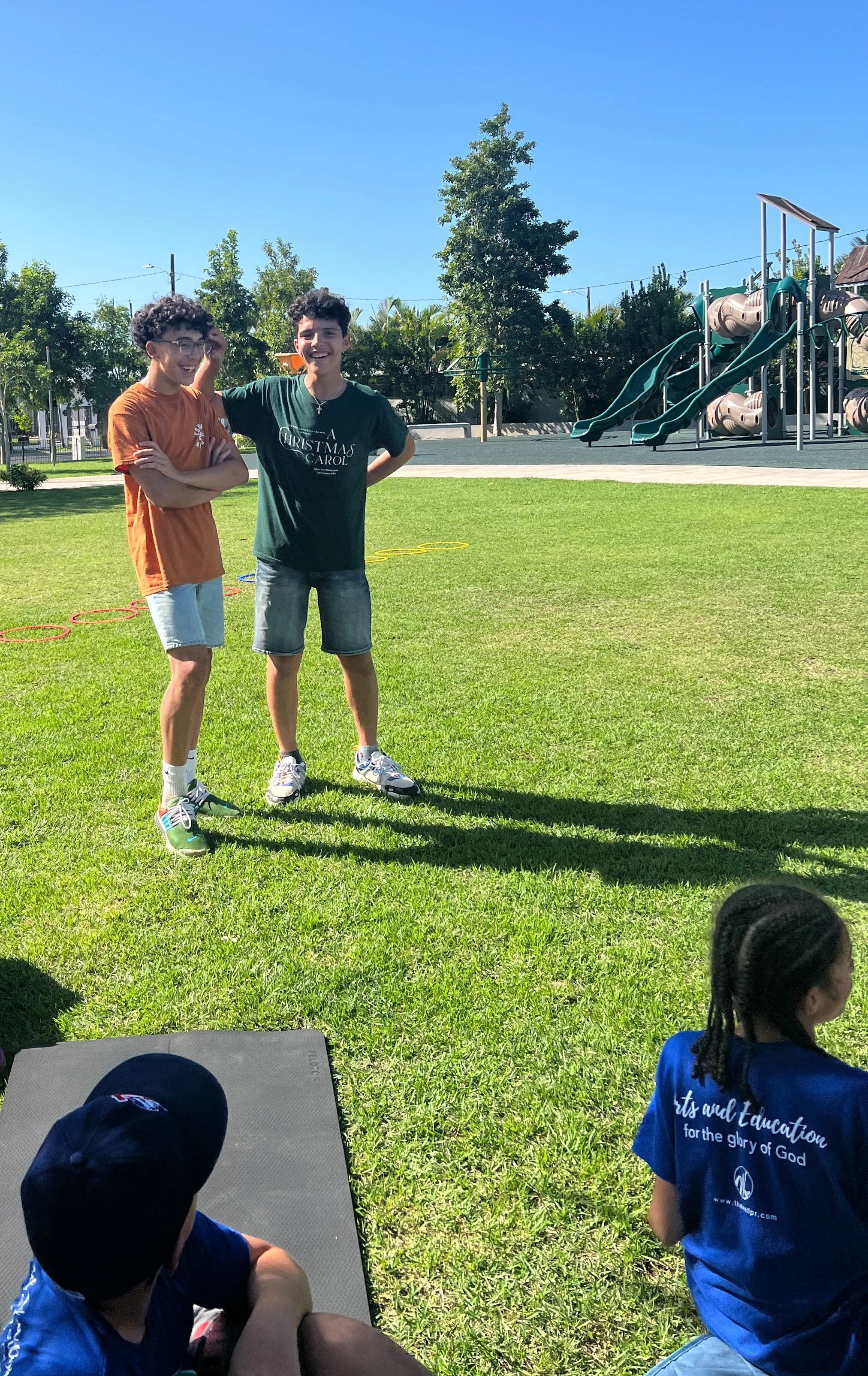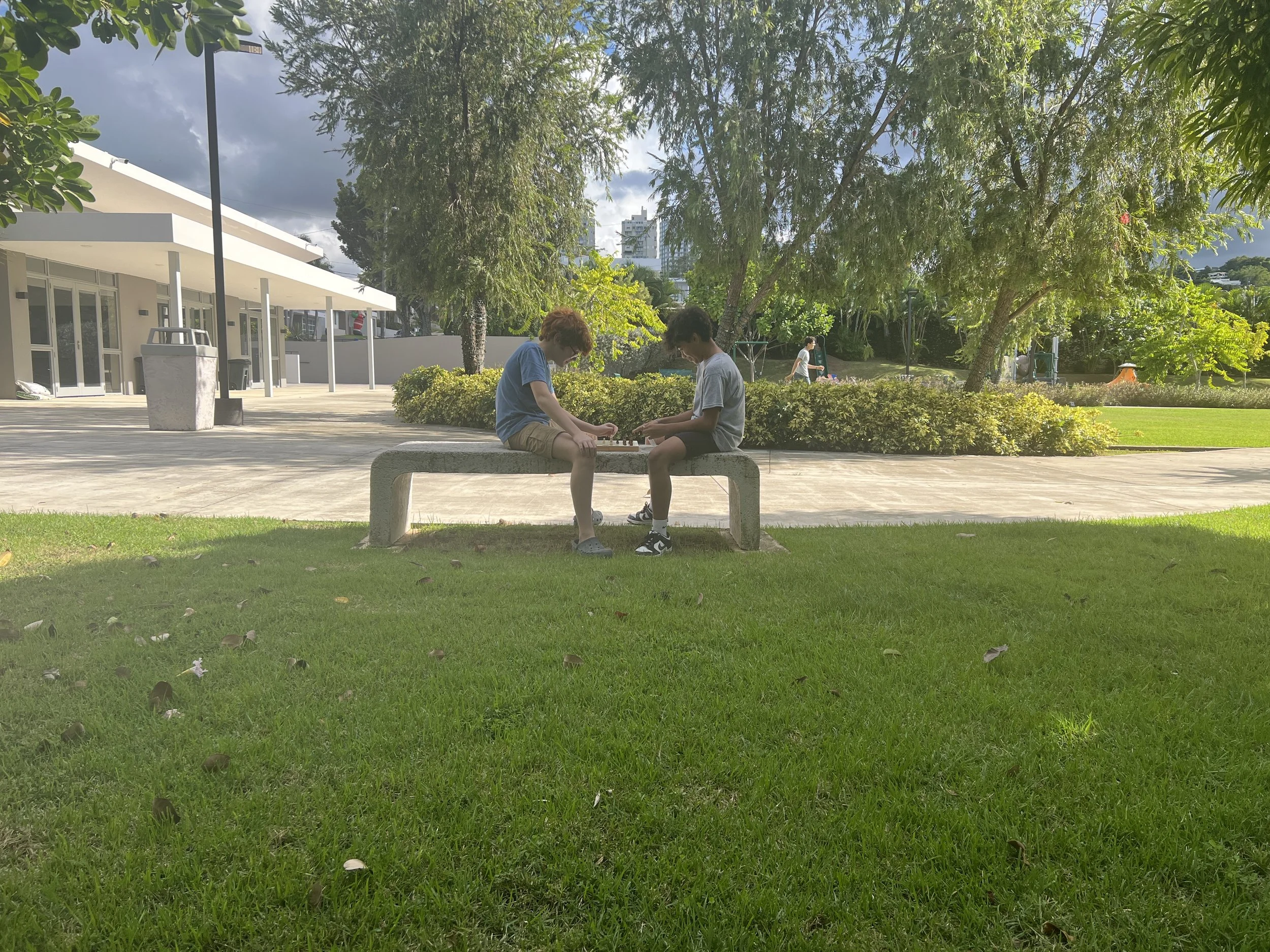 Eliam and Finn enjoyed a game of chess on another beautiful day in the park. As the semester wraps up, we thank God for his many little blessings, such as quiet moments like these in the park. But there were also some very exciting outdoor moments too as Mrs. Michelle made a guest visit with her Physical Education class for SEEDS this week. Read more below.