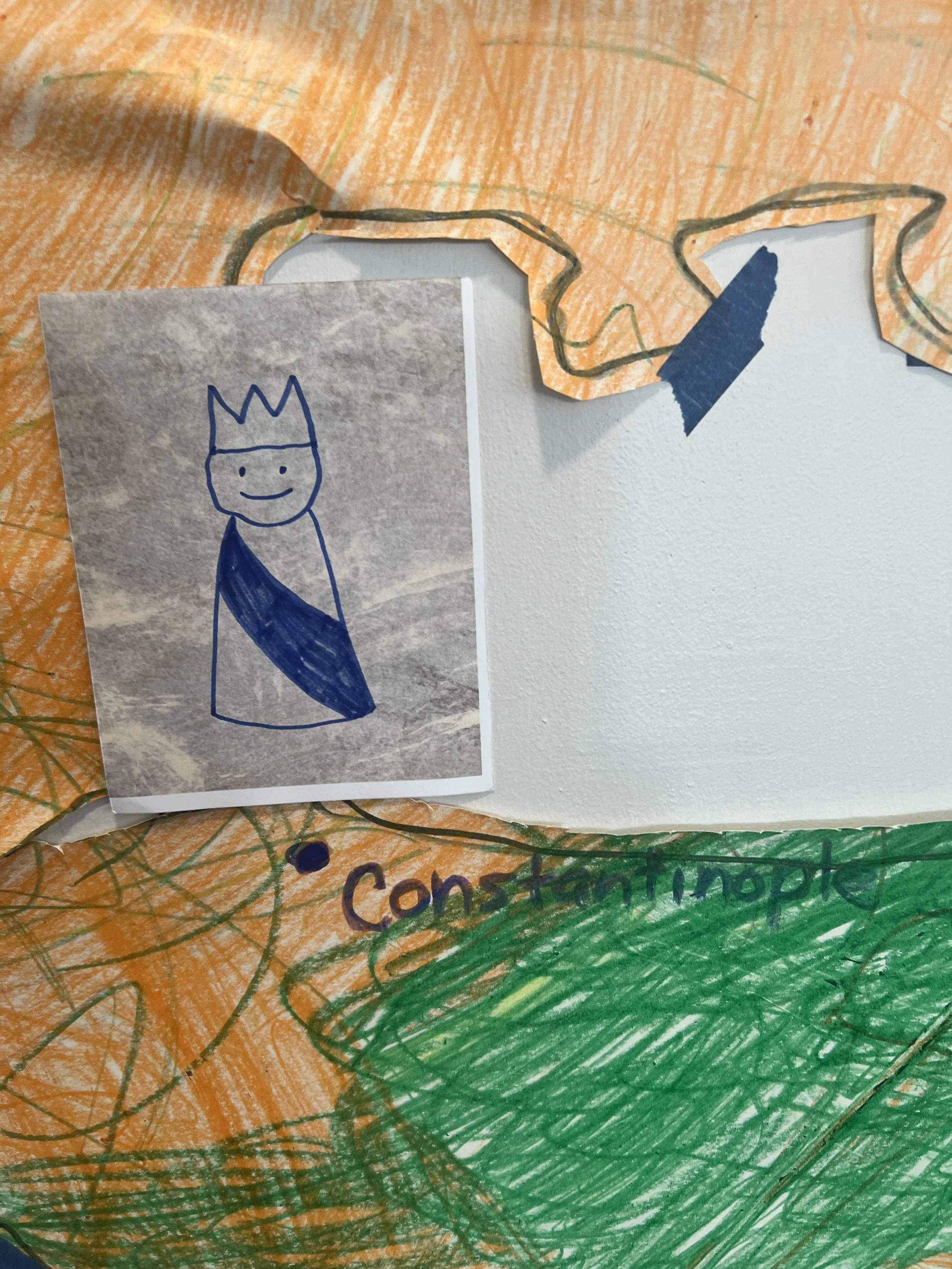 The students learned about the Roman Emperor Constantine and how he moved the capital of the empire to Constantinople. We worked together to make a huge map to place on the wall to see the expanse of the empire and the distance between Rome and the new capital. We also learned that after Constantine, the empire was divided into the Eastern and Western sides. The kids had to decide, based on what we learned, which side they would rather live in if they were citizens at that time of History.