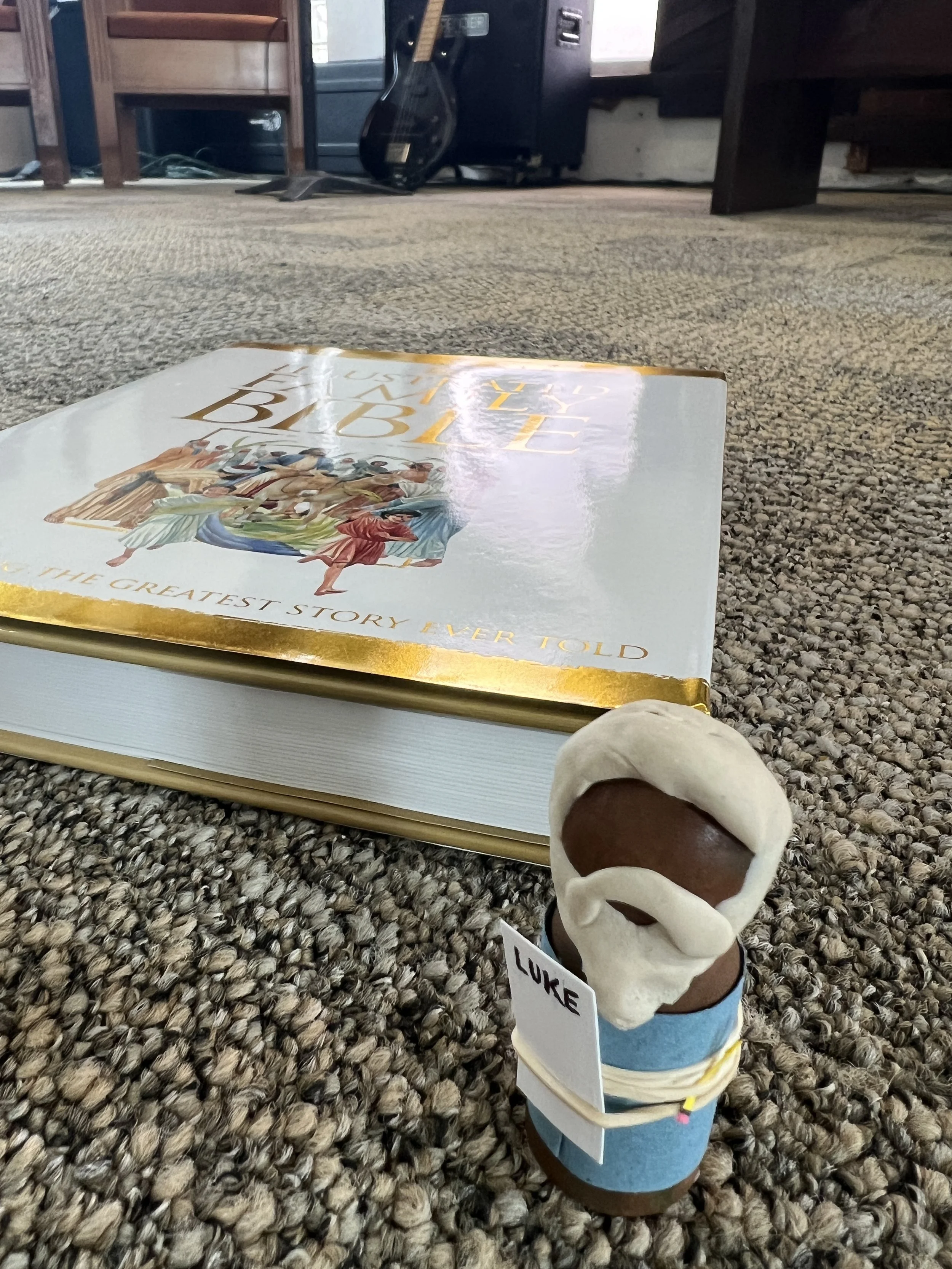 We began the Seeds Program again last Friday and introduced our Bible study for the second semester: the Gospel of Luke. We will be going through some of the stories as told in the book over the next few months and you can follow along at home using your DK Illustrated Bibles. Here is a figure of Luke holding his pencil for us to remember that he was the writer. We also honored Javvah, who celebrated her birthday over the break.
