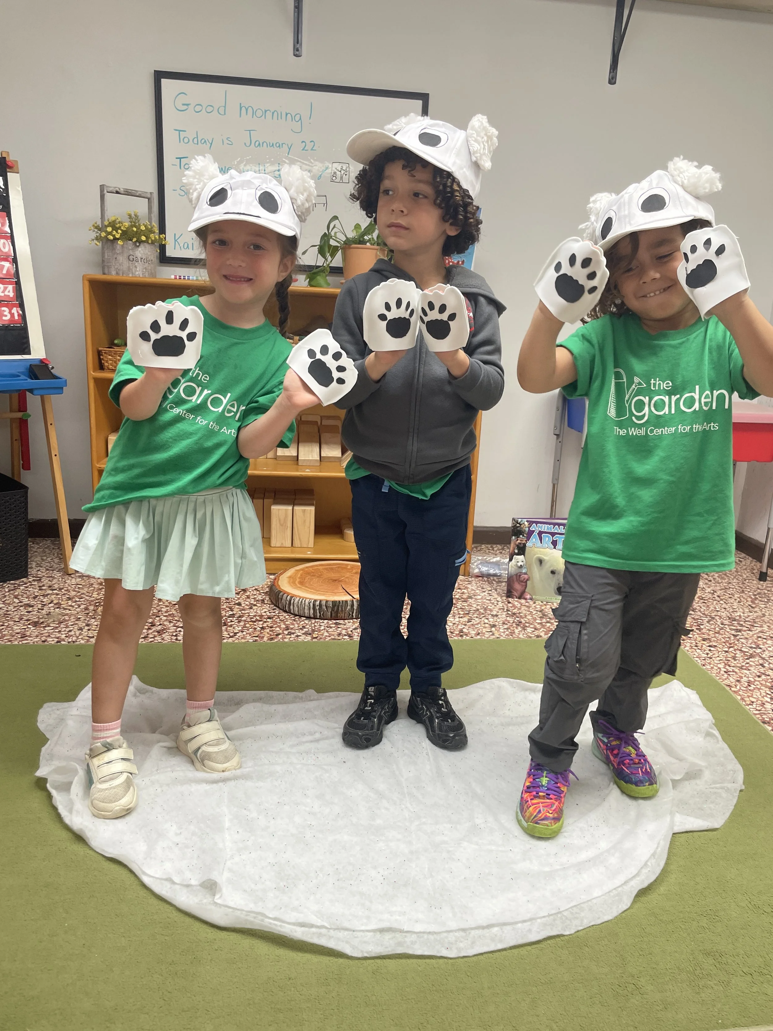 During circle time, we practiced the new rhymes including a fun one about polar bears which included dressing up with paws and hats!