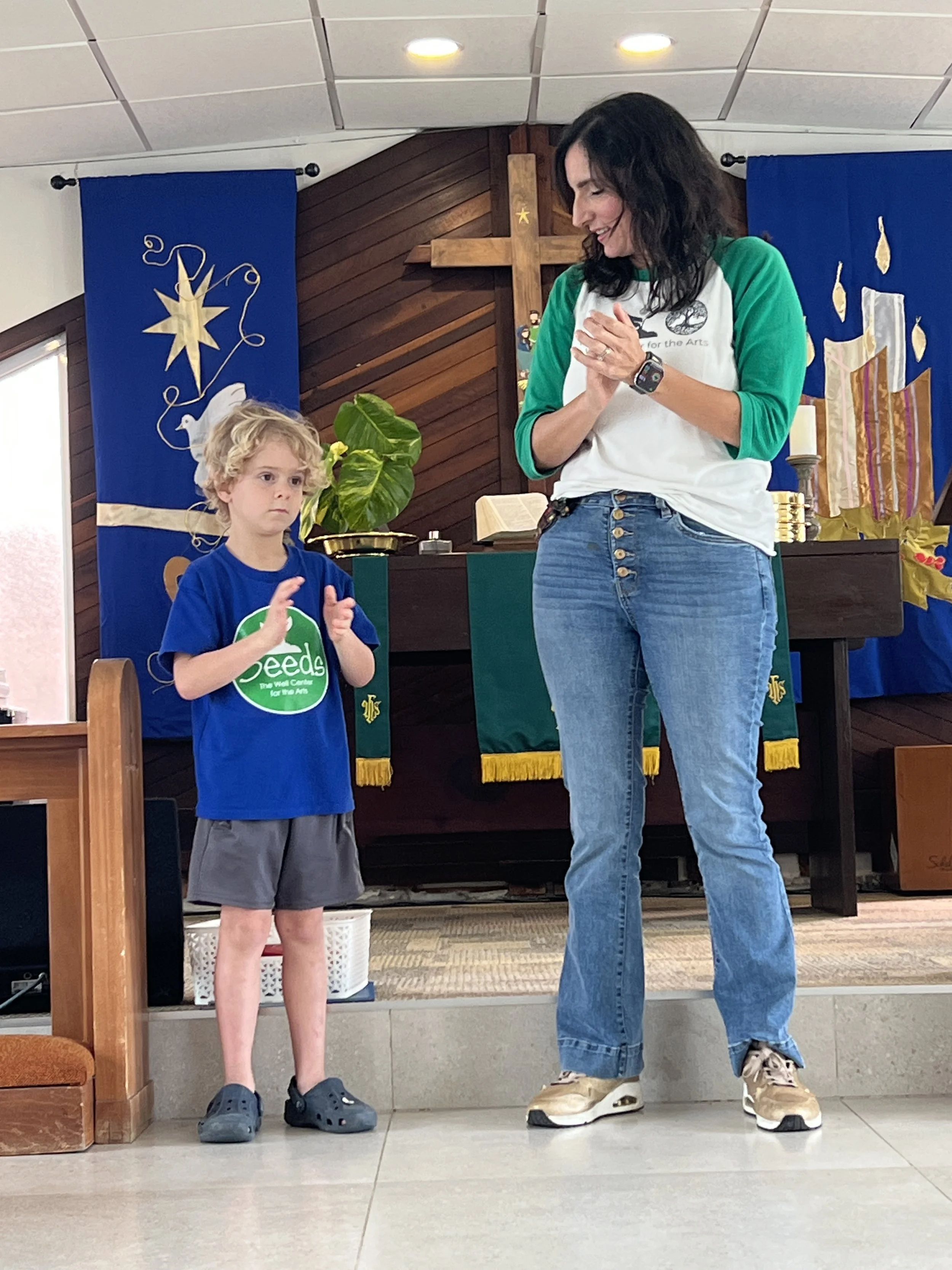 This week at worship time we learned more about Jesus and the beginning of his ministry by the Sea of Galilee. Jesus did such amazing things and said such wonderful things that people wanted to follow him. The people marveled at his teaching because he spoke with authority. The people could tell that this was a new kind of teaching, different from the teachers of the law and religious leader. We were introduced to Peter, Andrew, James, and John, fishermen who began to follow Jesus. We learned a new song called “Deep and Wide.”