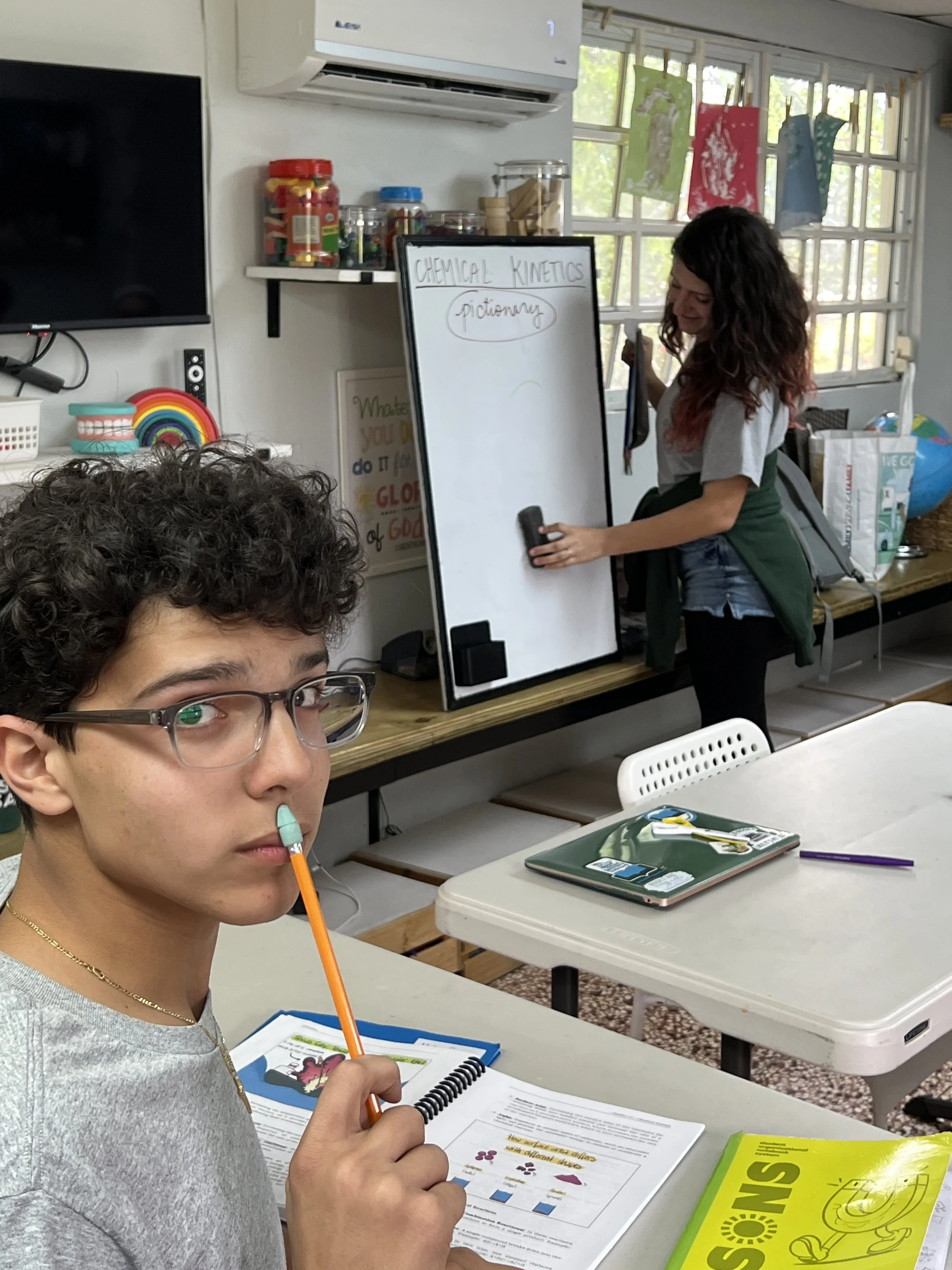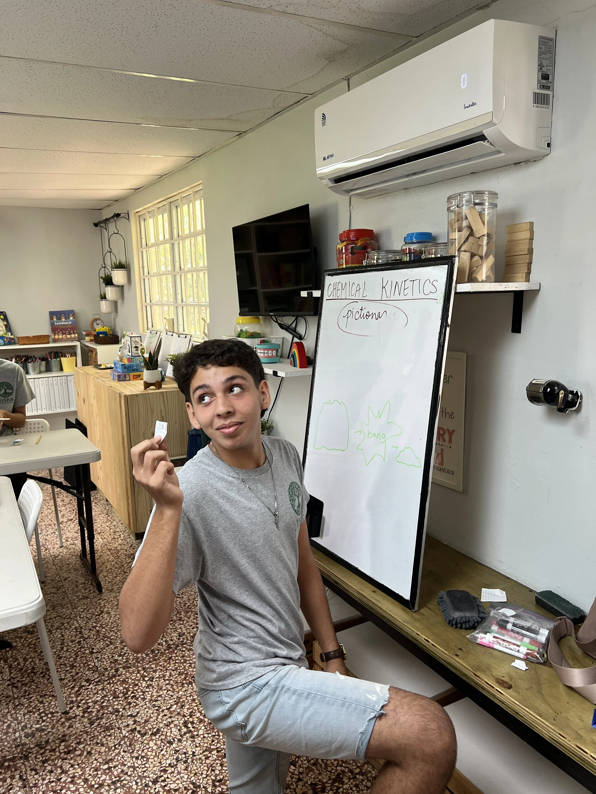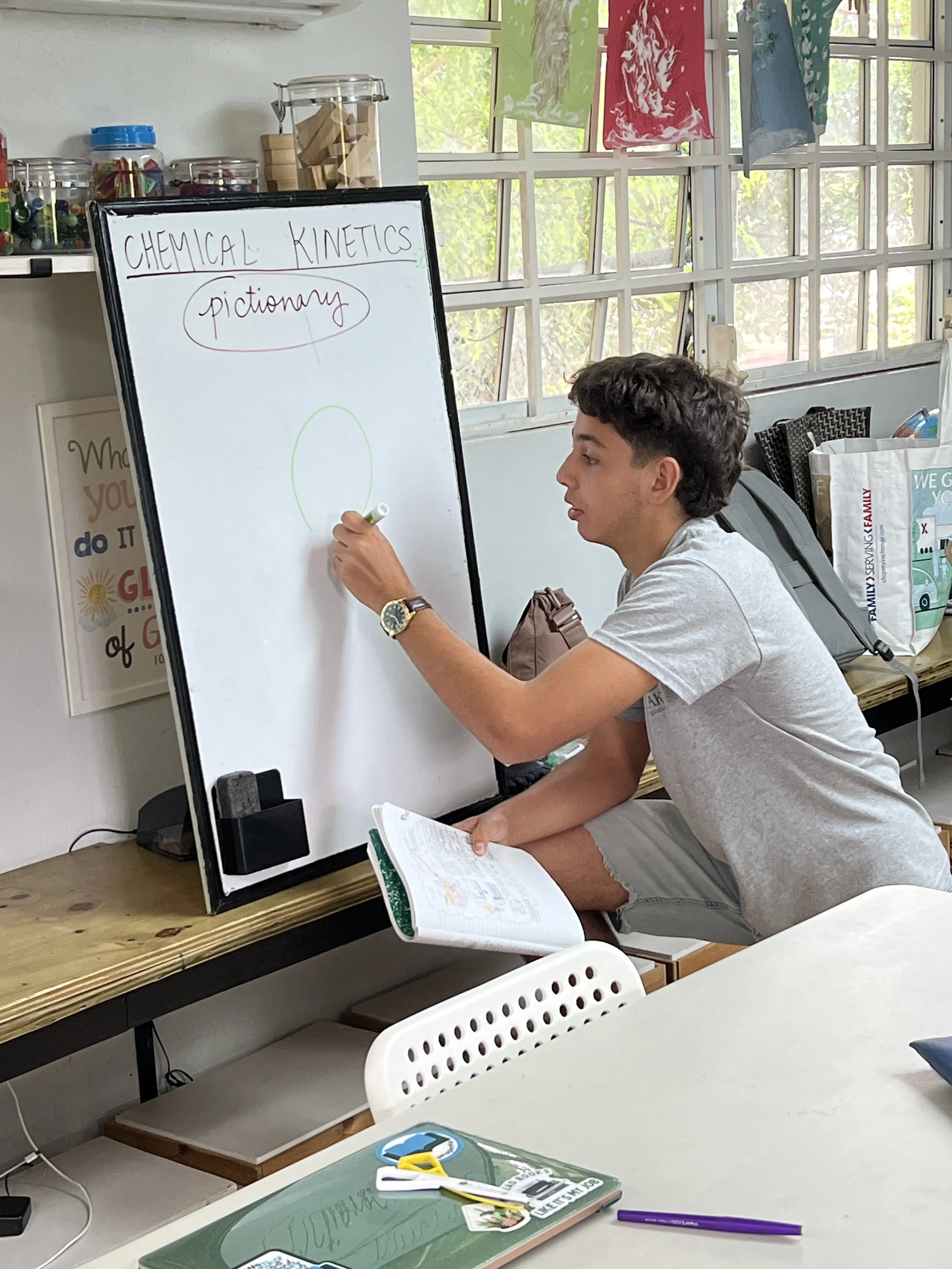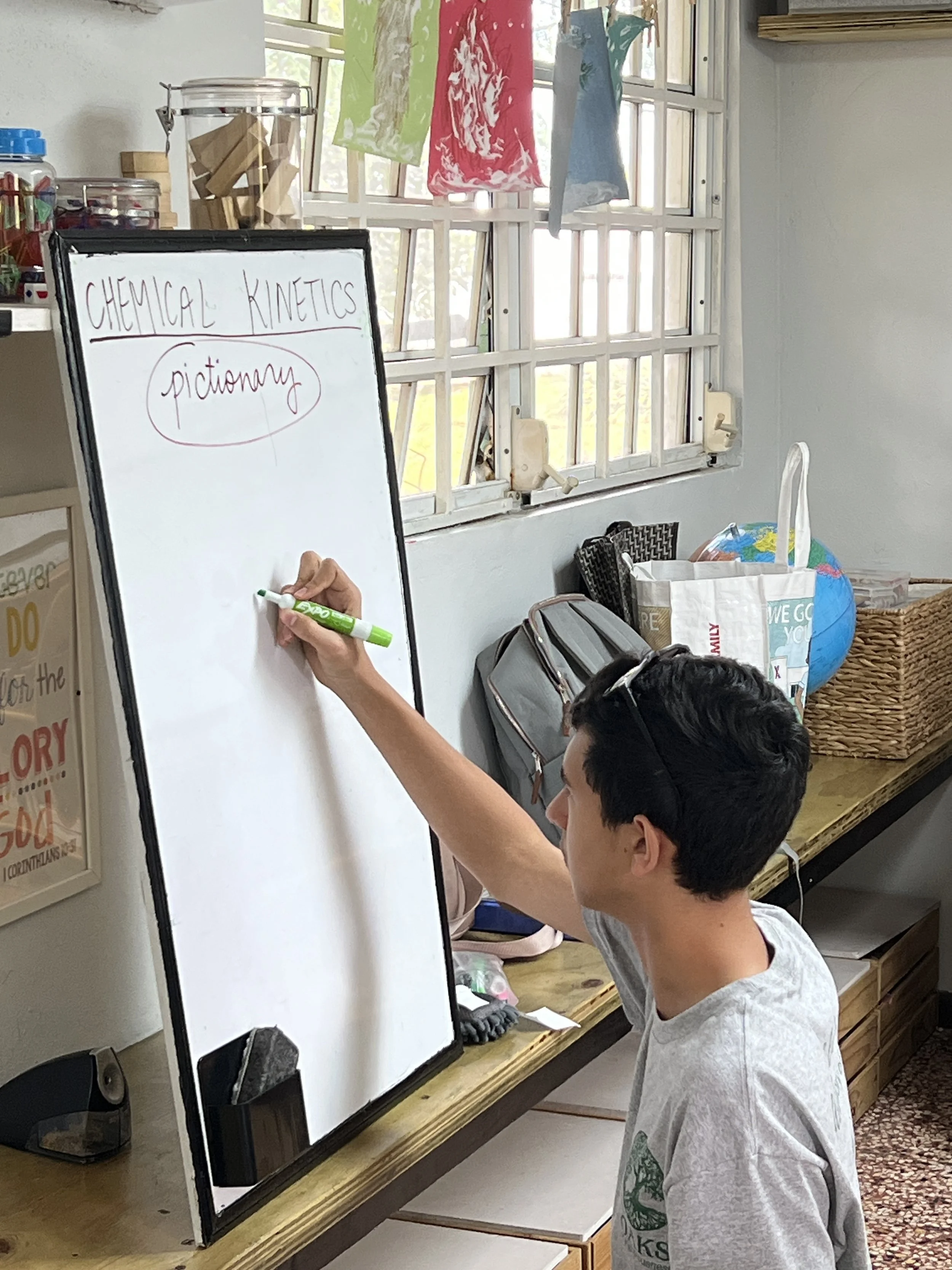 In Chemistry this week, the students learned about chemical kinetics-the rate of a chemical reaction and what affects the occurrence of a reaction. Some of the factors that speed up a chemical reaction are light, temperature, and surface area. The students also learned about six types of chemical reactions, such as synthesis and decomposition. As a form of retrieval practice, the students got to play pictionary for both topics.