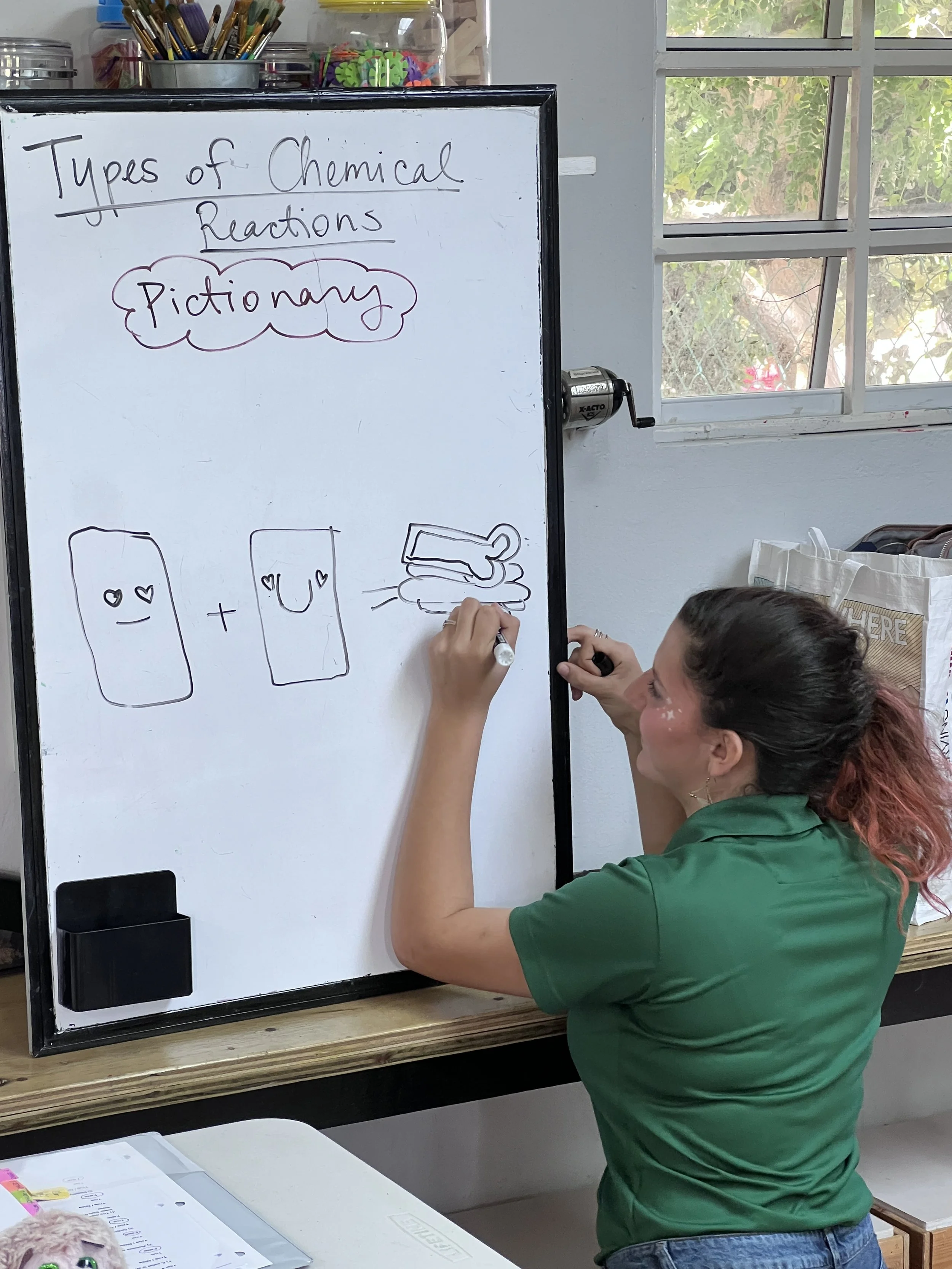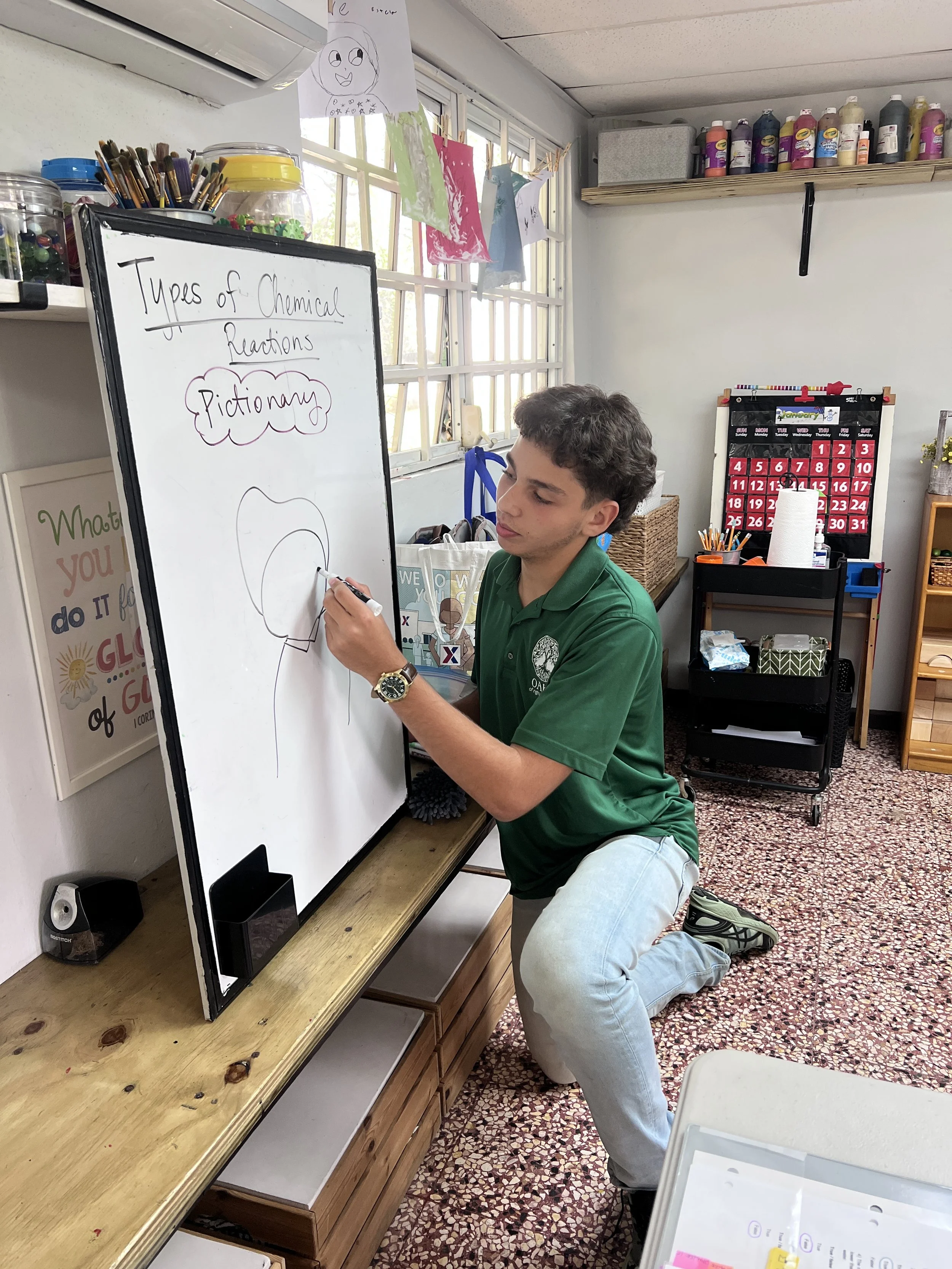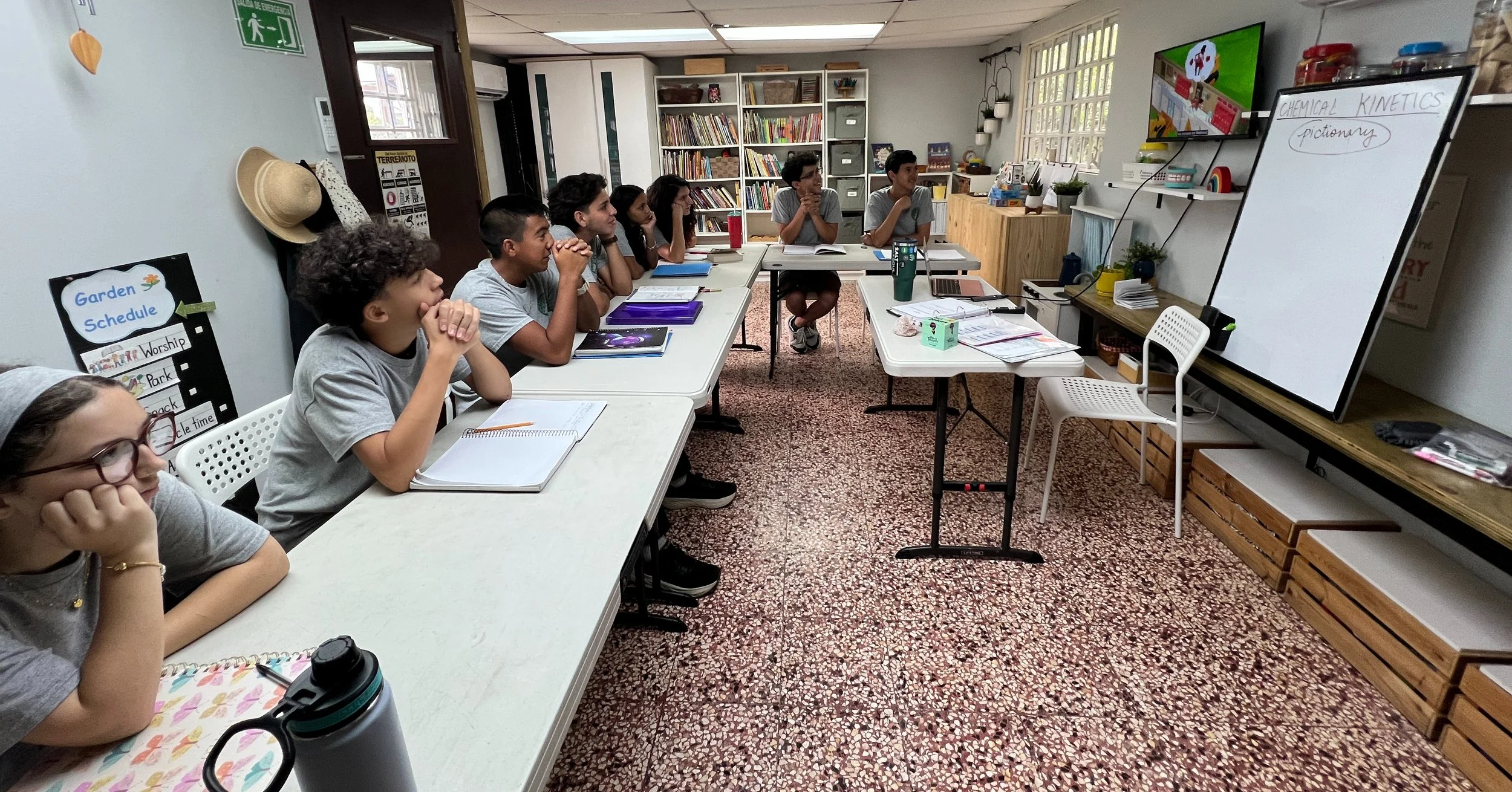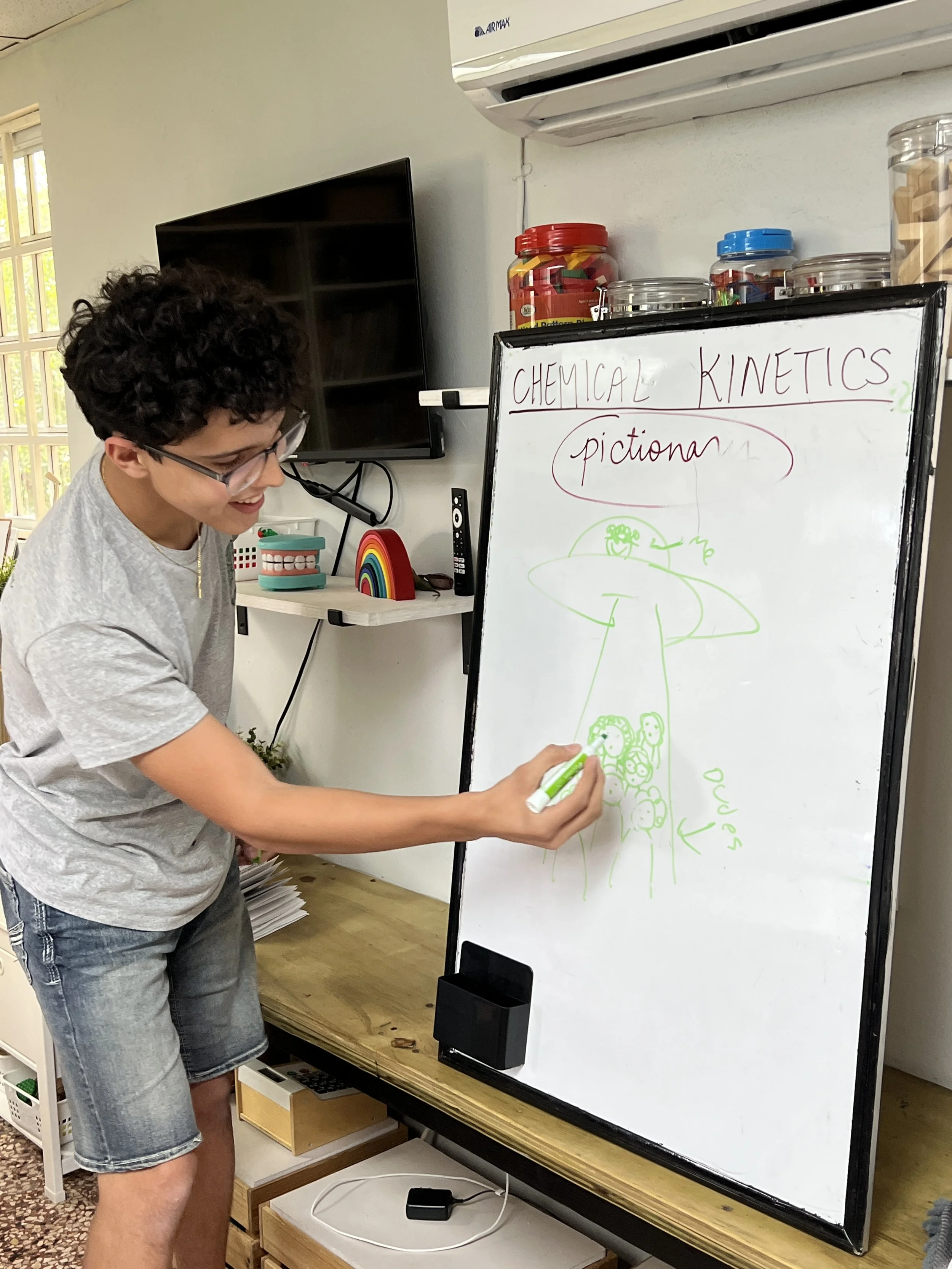 In Chemistry this week, the students learned about chemical kinetics-the rate of a chemical reaction and what affects the occurrence of a reaction. Some of the factors that speed up a chemical reaction are light, temperature, and surface area. The students also learned about six types of chemical reactions, such as synthesis and decomposition. As a form of retrieval practice, the students got to play pictionary for both topics.