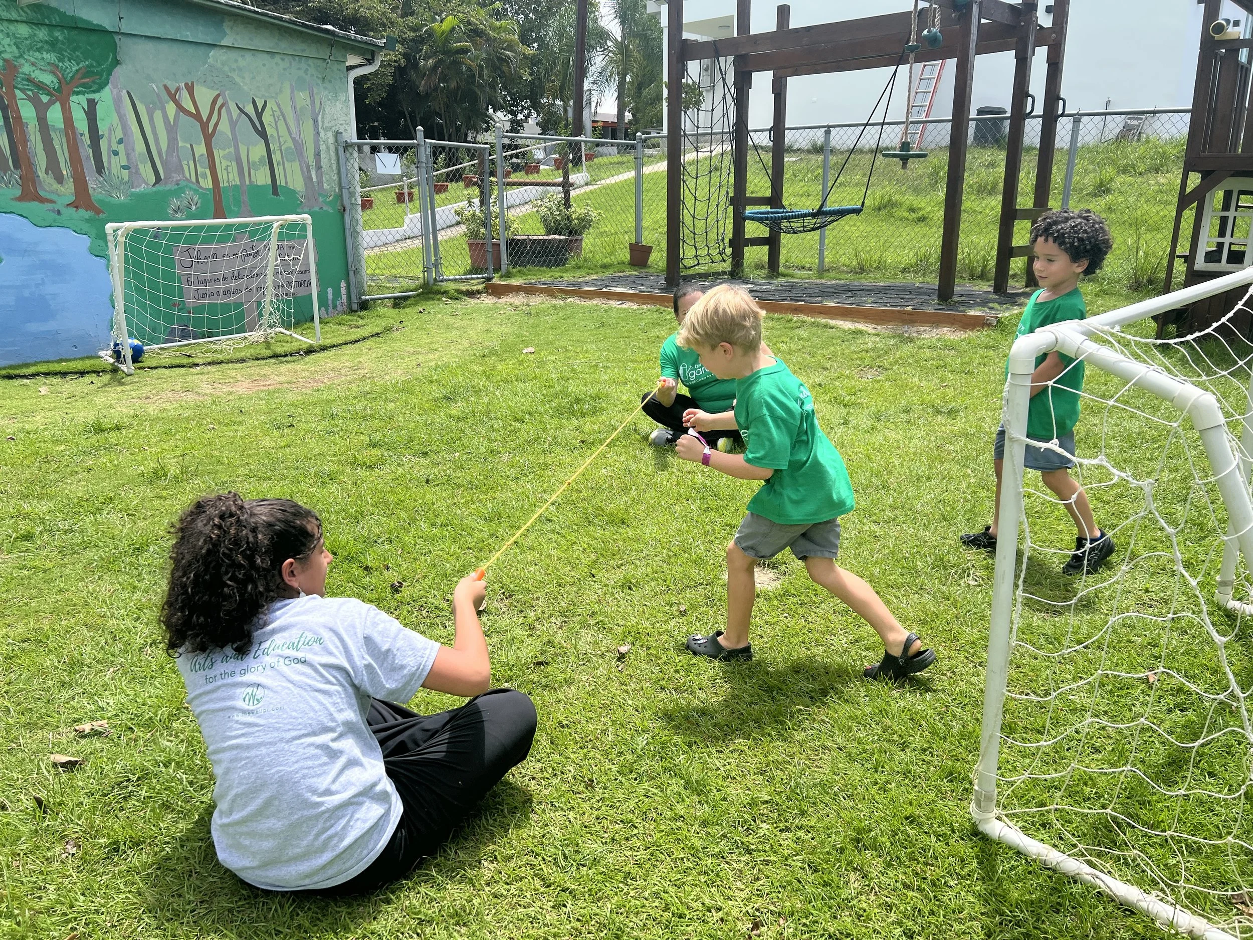 Miss Ana began volunteering with us last year and is a Pre-Med student at the University of Puerto Rico. She is also a former volleyball player. This year, she is taking an elective in volleyball at the university and we asked if she could do physical education on Fridays with an emphasis on volleyball this semester with the kids. She lovingly agreed and we were thrilled to use our brand-new volleyball net and balls. The kids learned about volleying the ball this week through some warm-up exercises and then had a chance to try out the net.
