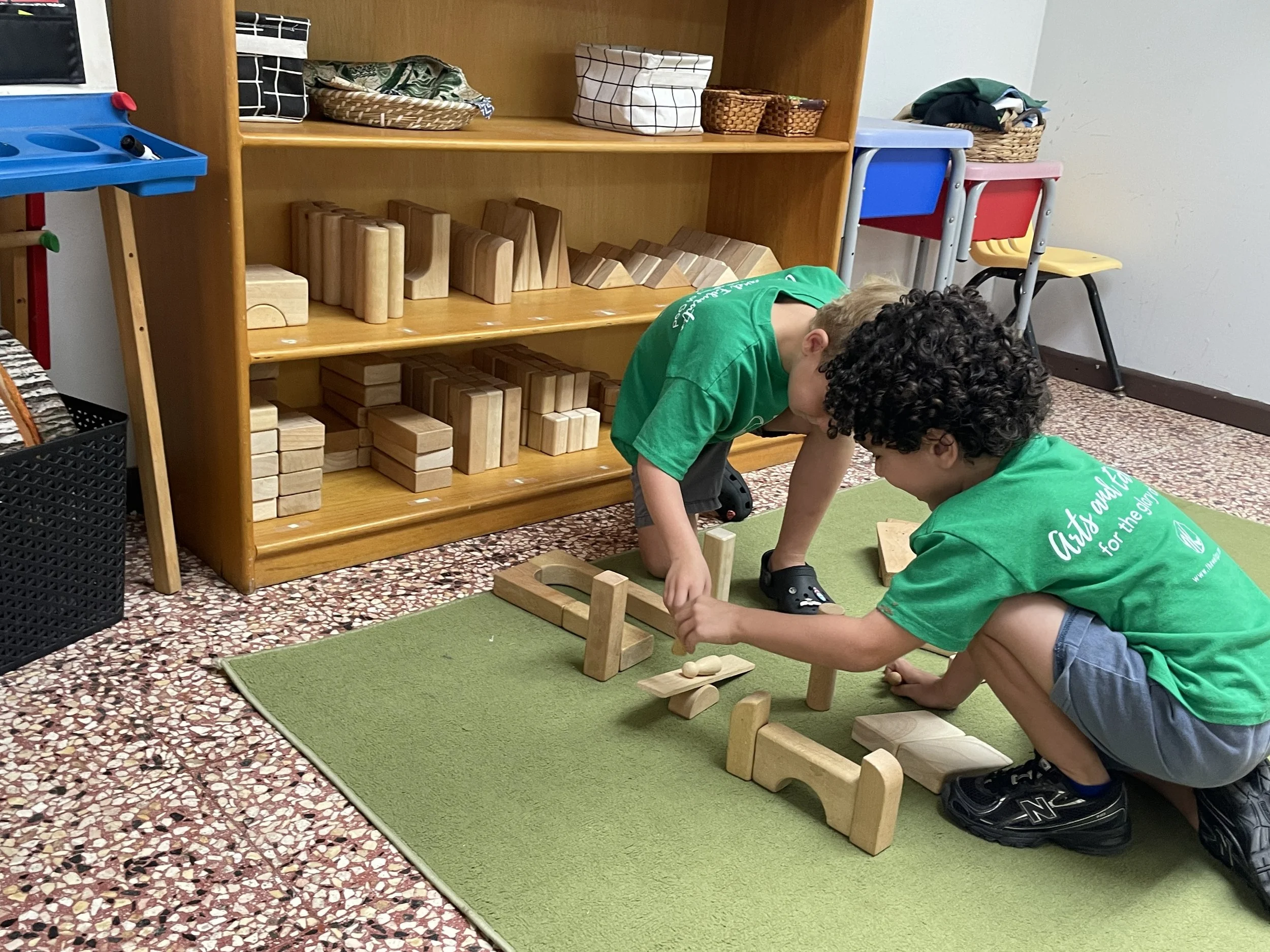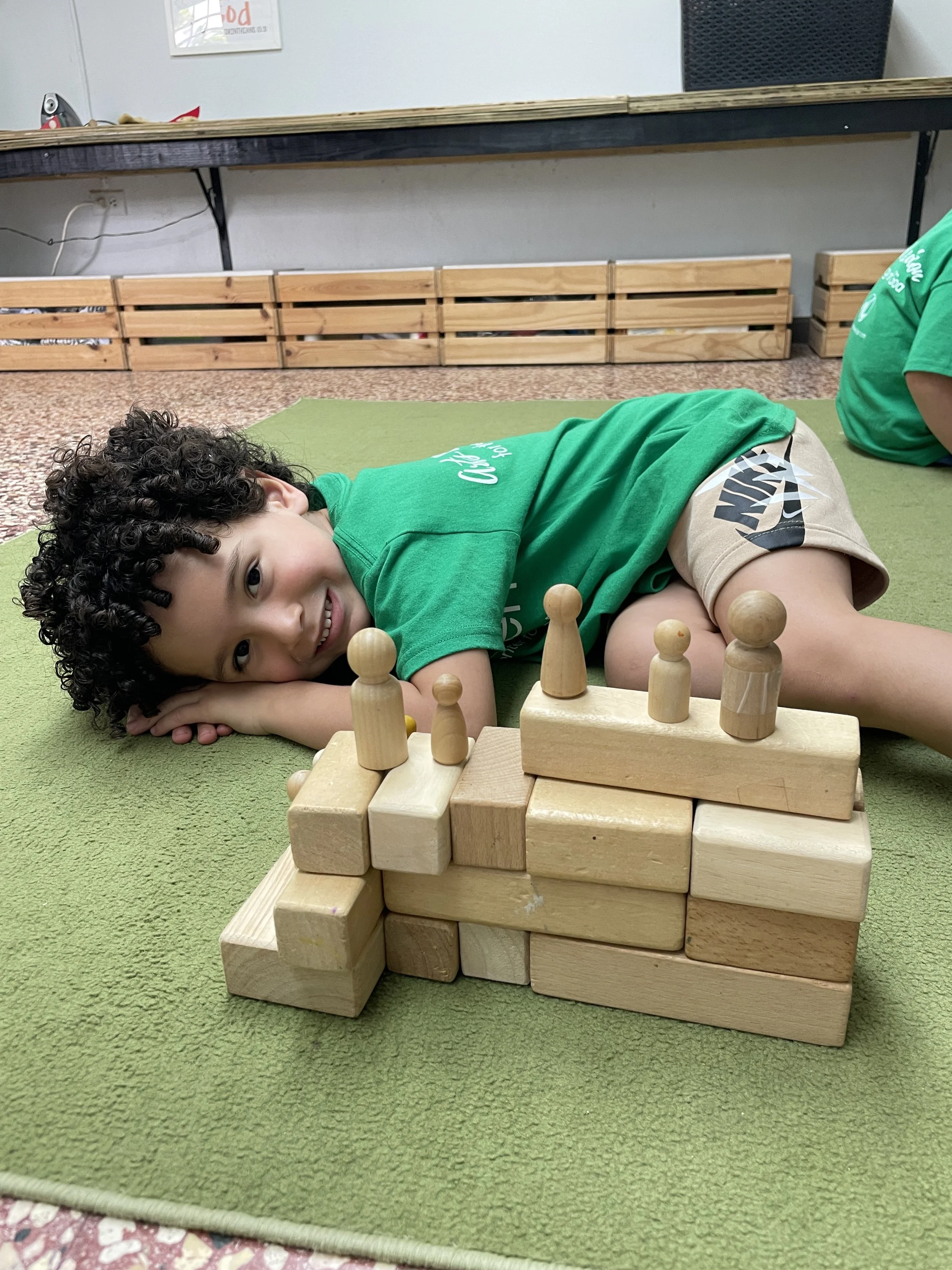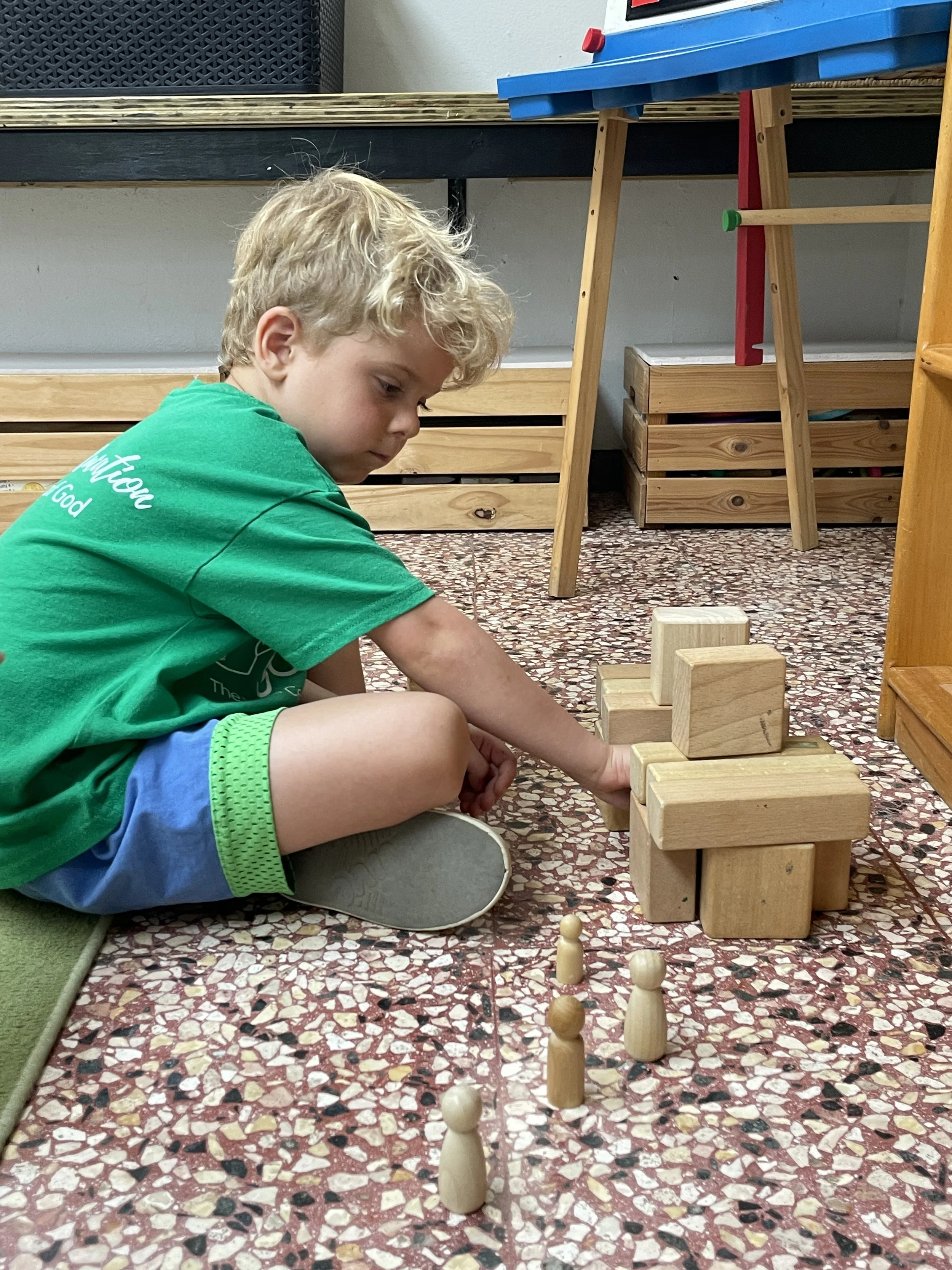 We also continue to practice the proper way to use the materials of each of our play centers and most importantly learn how to share and have fun together. This week, we opened the wooden block station. We are all getting to know each other better and friendships are growing. During playground time, they have enjoyed having Mrs. Doreen pretend to be a big dinosaur who wants to catch them. We call him the “misunderstood dinosaur” because he’s only trying to be their friend and play. They also like to play Happy Chef! They cook, serve and sell food with great big smiles, but the part they most like is charging outrageous prices for the food, like $80 for a hotdog!