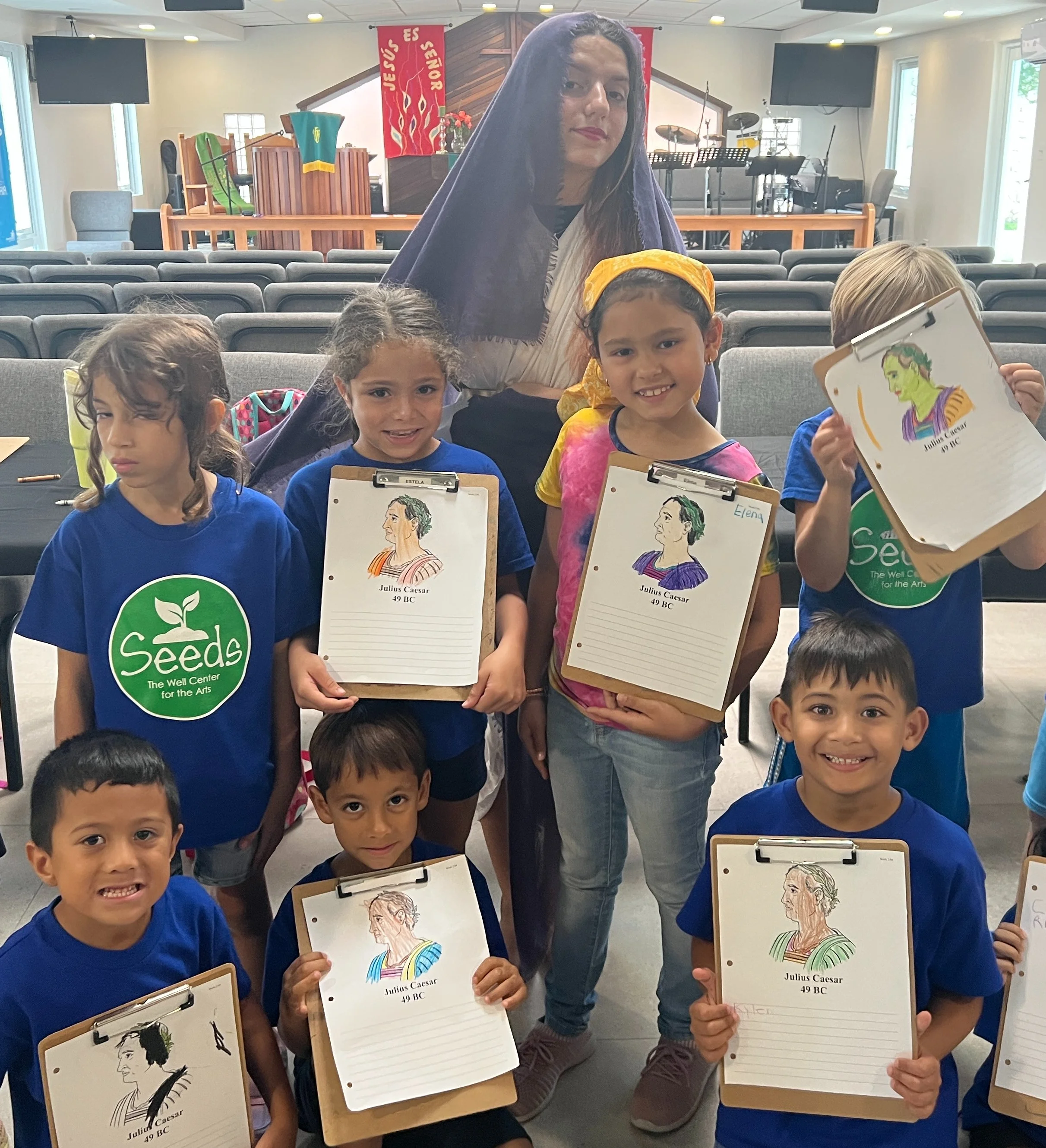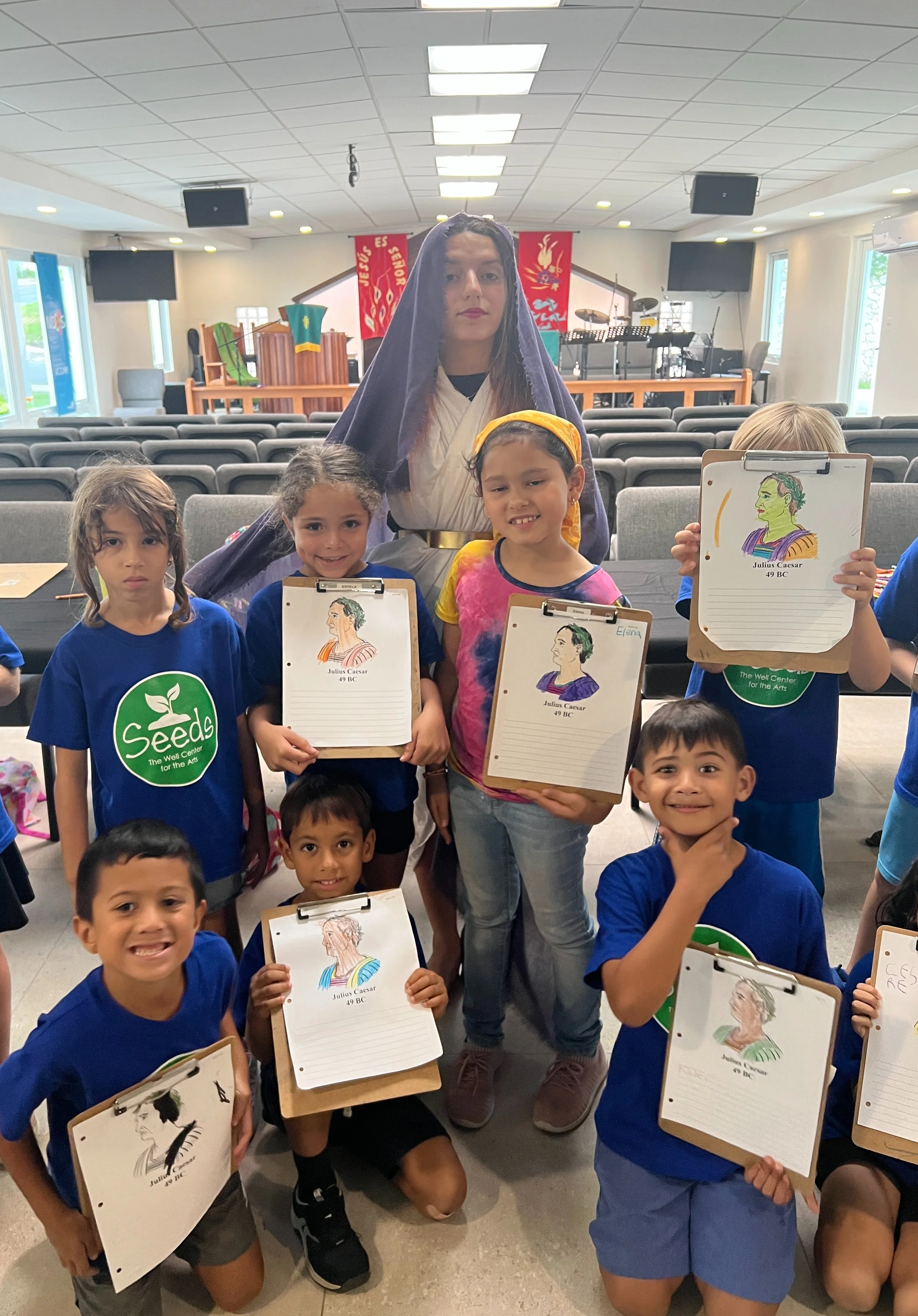 What a week of history! The bulk of our time was spent talking about a major figure that moved Rome from a republic to an empire: Julius Caesar. We continued working on plays that help us understand the stories and were so excited once again when the Time Machine brought Calphurnia, Caesar’s wife to our classroom. She told us a lot about his life, and also his death. At the end, we colored our new student sheet of Caesar.