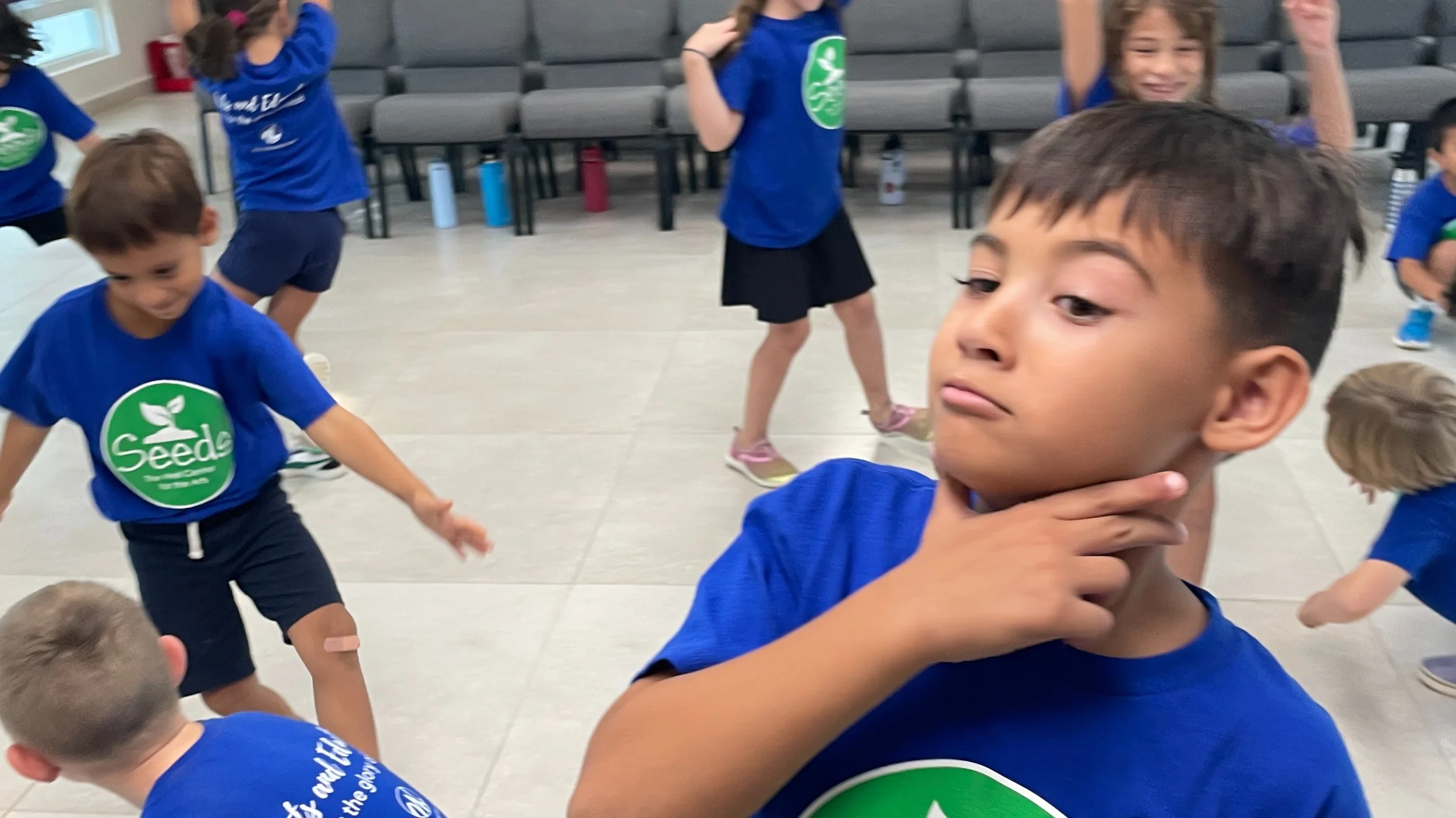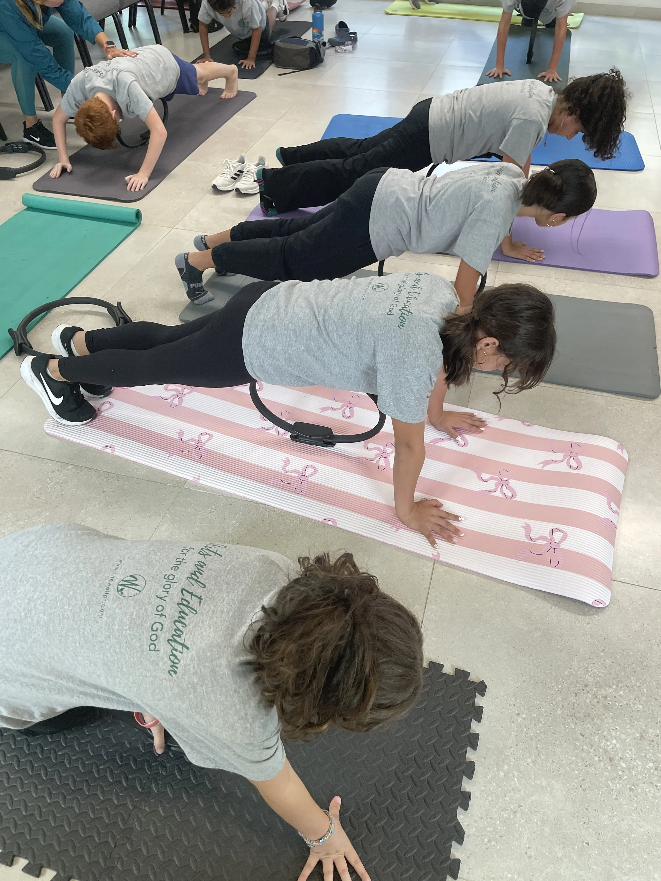 As always, we continue to discuss these themes in our small group time, while the other group takes science with Mrs. Catherine. We also had a great time setting up the volleyball net for us and for the Seeds students. Mrs. Michelle also came in again this week for another exercise class.