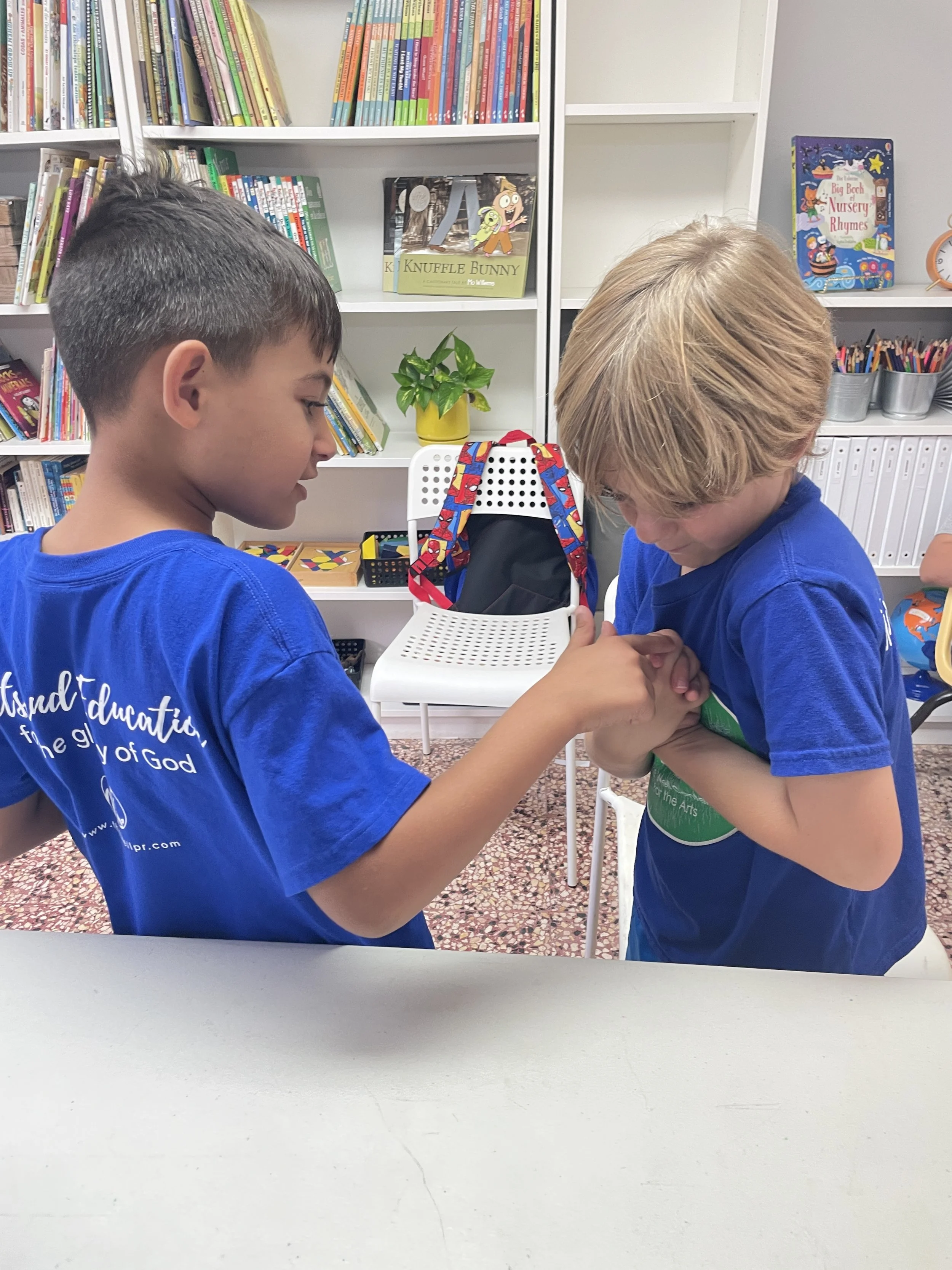 In our time of Worship, we added new parts of our Galatians verse, as well as adding more movements to the hymn, “Tis so Sweet to Trust in Jesus.” Mr. Jared showed the children how the 400 years between the times of the Old Testament and the New were a period of waiting for the promised Messiah or “Seed” mentioned all the way in the book of Genesis. This talk of a “Seed” inspired a nature walk later in the day where we found many different seeds of various sizes, colors and shapes. We will be planting some of them in the small playground this week.