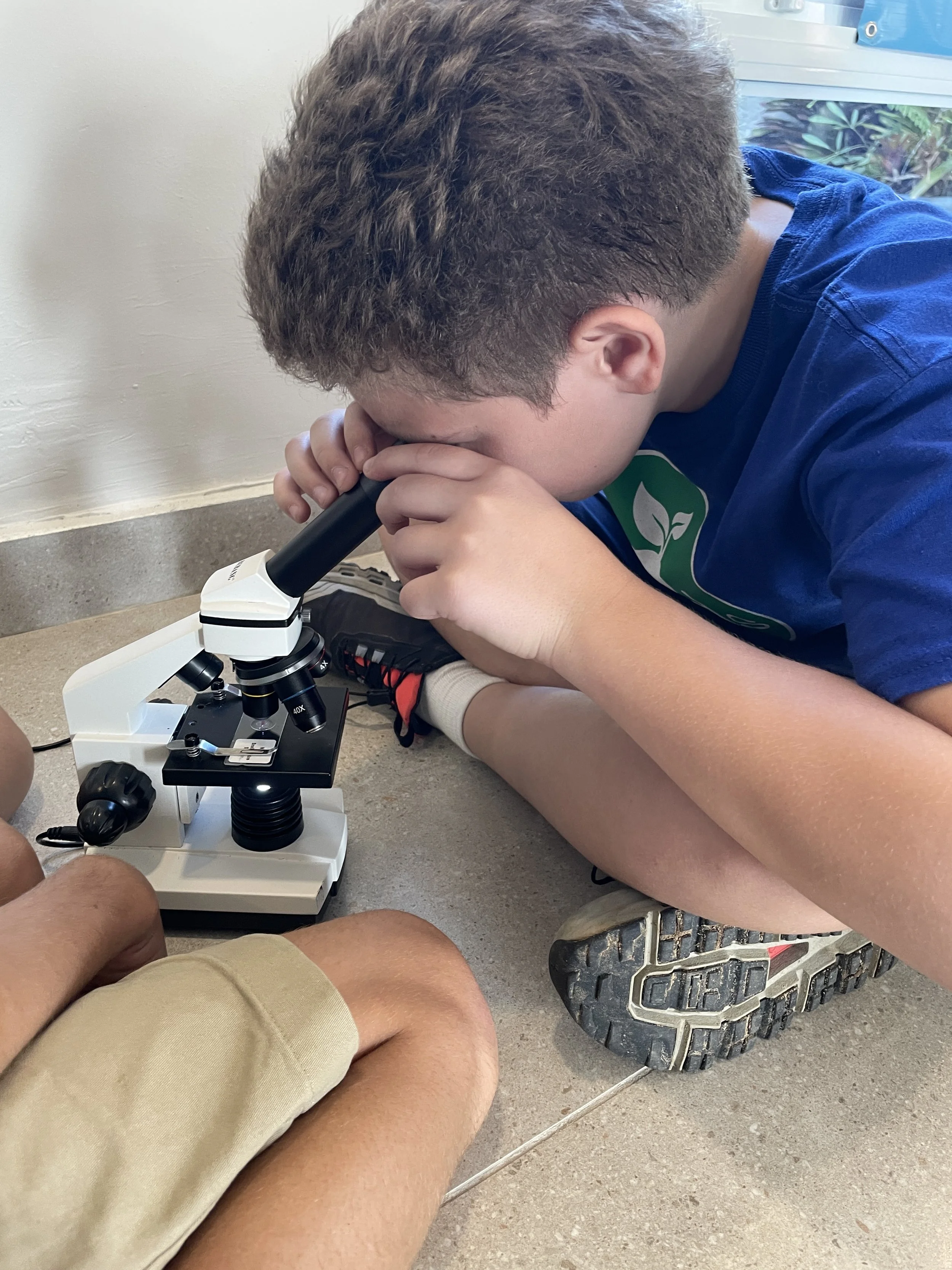 This week we began learning about the brain and the central nervous system. We learned that there are three main parts of the brain: the cerebrum which is divided into a right and left side with different but complementary strengths, the cerebellum or little brain, and the medulla or brain stem. After discussing the different functions of each part we used play doh to sculpt the pieces. I explained that using play doh as a way to review what we learned is one of the methods that we use in class to help them remember. Noah P. brought in his favorite microscope and shared it with his group.