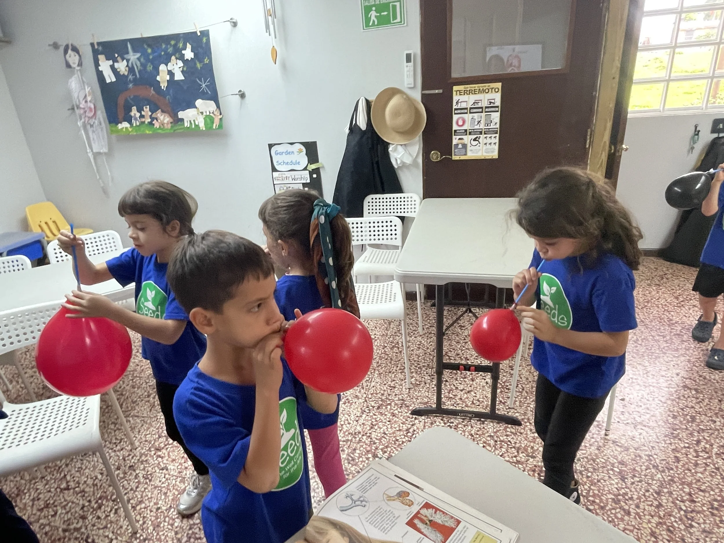 This week we finished learning about the respiratory system. We reviewed the arts we had learned about the week before and focused on the superhero hero of the respiratory system: the diaphragm. We saw how this thin, dome-shaped muscle flexes and relaxes to help your lungs exhale and inhale. I brought a model I made with a two liter soda bottle, a balloon, and a plastic bag. This showed the kids how it worked when the balloon inflated and deflated as they each took a turn with the model. They had to say “inhale” as the balloon filled up and they pulled the bag and “exhale” as the balloon deflated and they pushed the bag up.