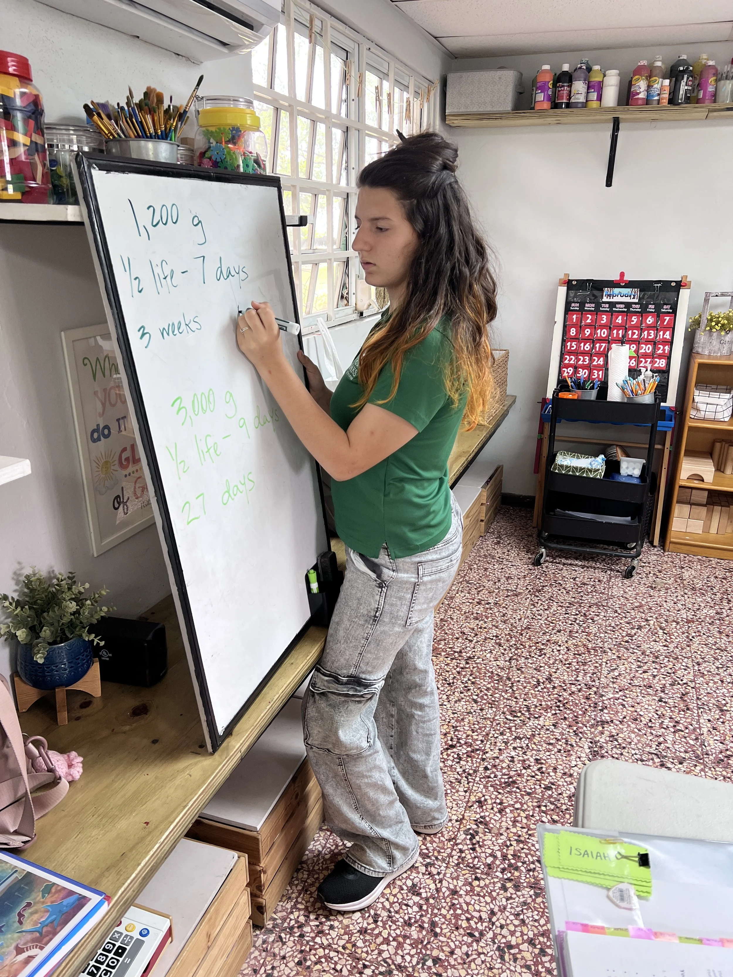 In Chemistry, the students learned about the interesting topic of radioactivity and nuclear chemistry. Since the chapter opened with the story of the devastating 1986 Cherobyl nuclear disaster, they were confronted with the gravity of the topic. Through viewing a video of how a nuclear reactor is operated and maintained, the students were better able to understand what led to that historic Chernobyl disaster. In addition, they learned why certain elements are radioactive and how to calculate a half-life.