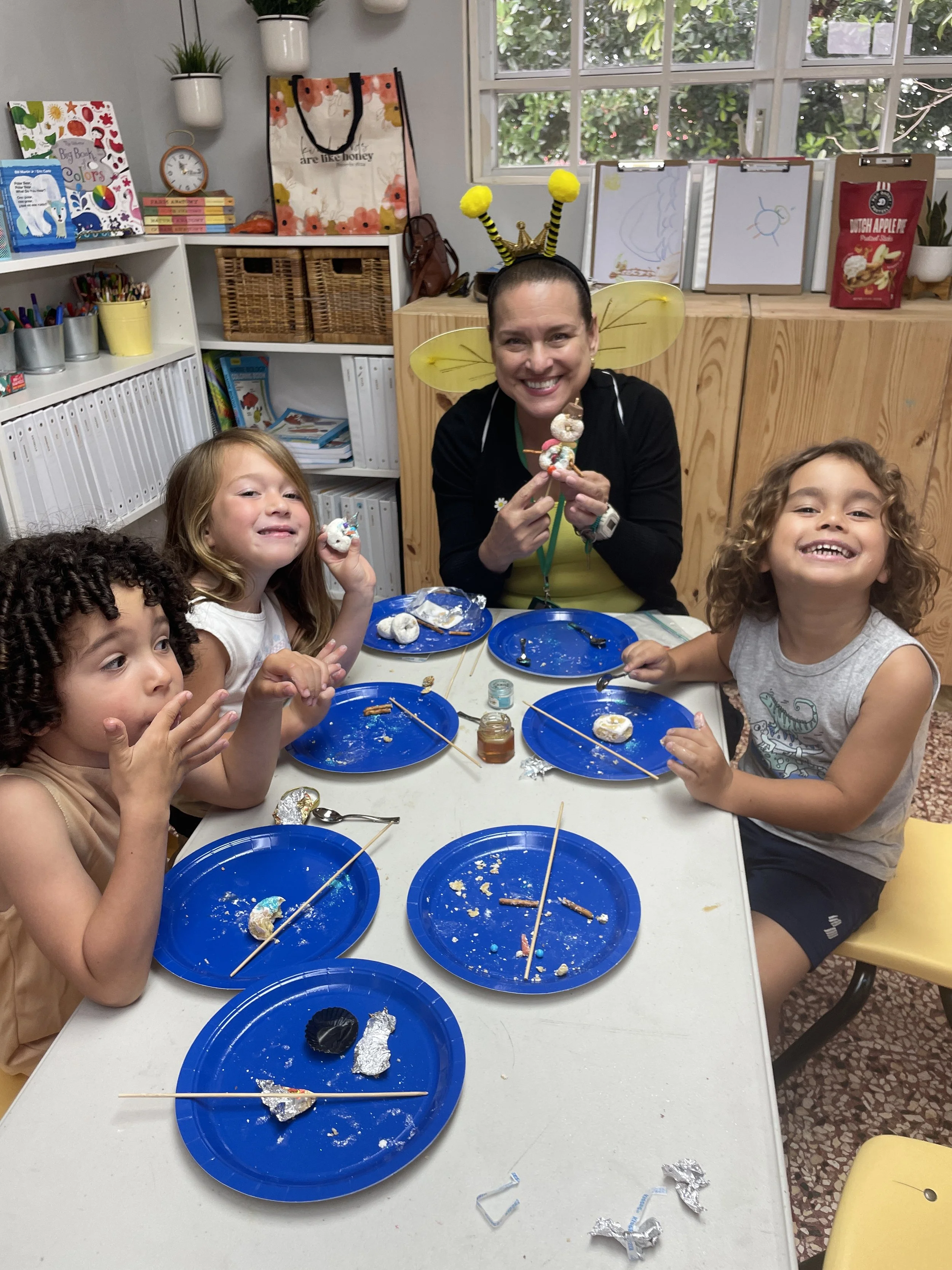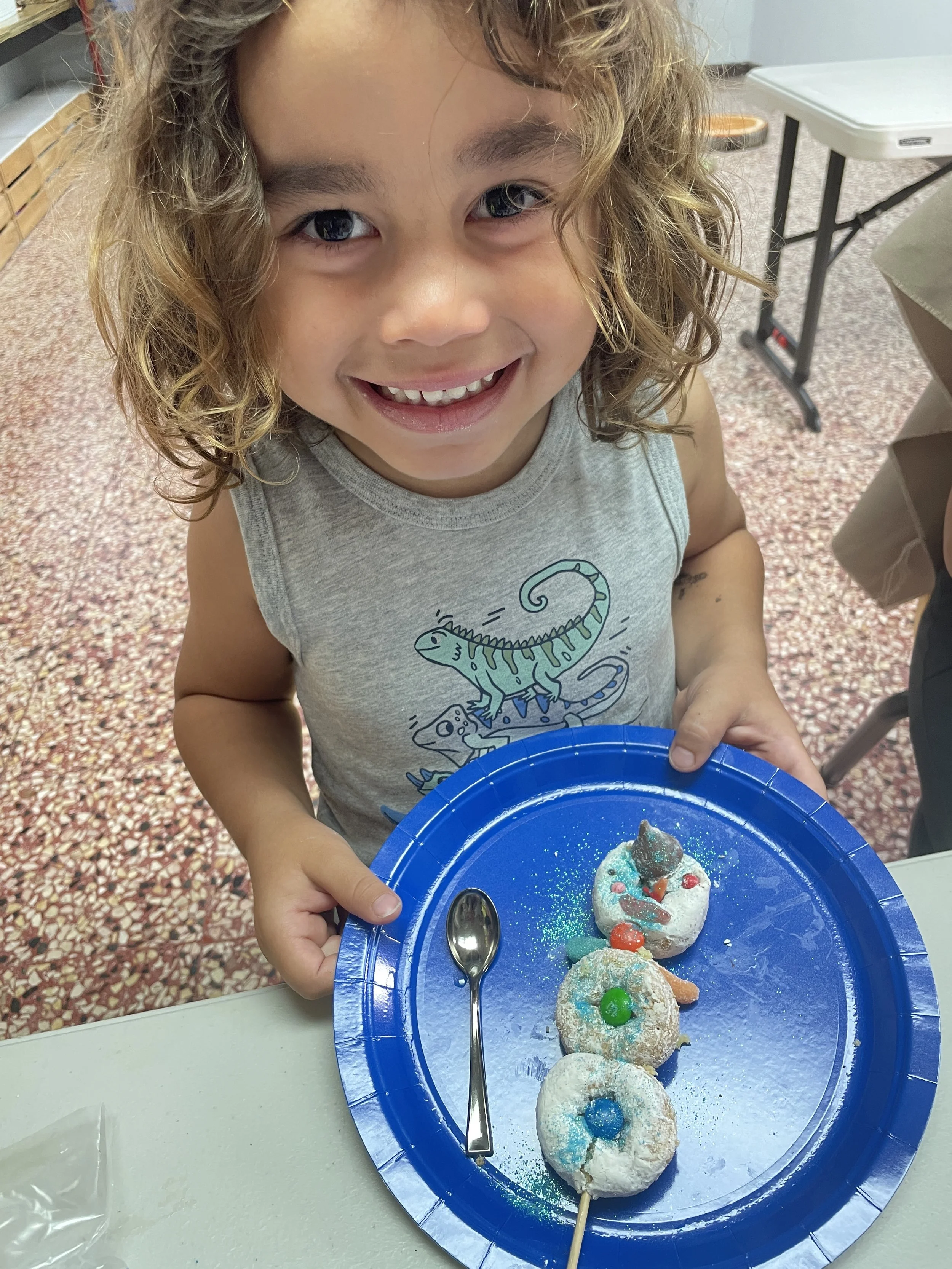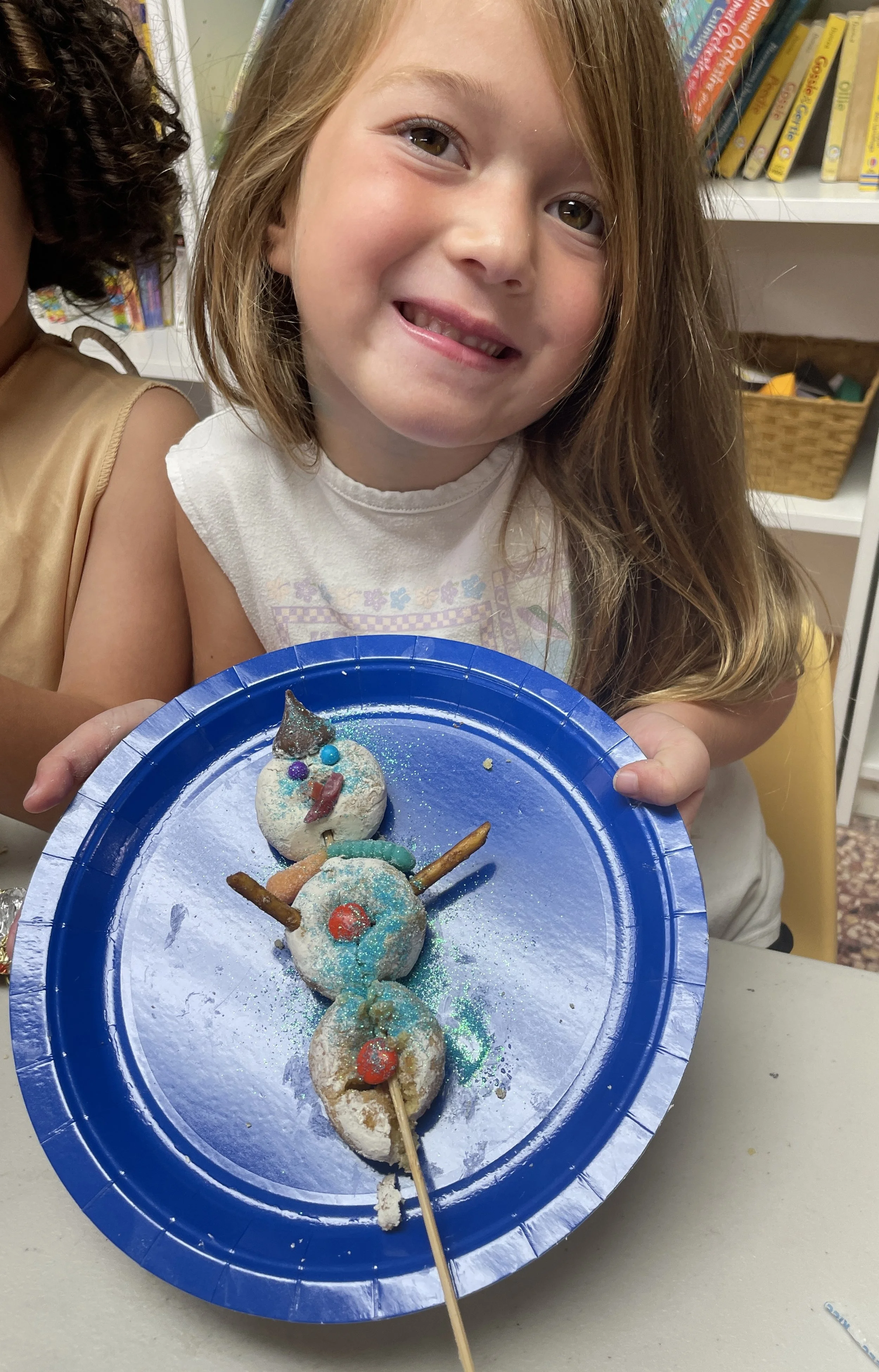 During activity time this week, we said goodbye to our winter/snow theme. We finished our penguin rocks and reviewed what we learned about polar bears and emperor penguins. We learned that during the winter, lakes freeze and people can ice skate on the frozen water. We also had the chance to play with ice cubes and pretend to ice skate with Lego people. We liked that a lot. We also enjoyed a yummy snowman craft using donuts and candy. It was unforgettable!