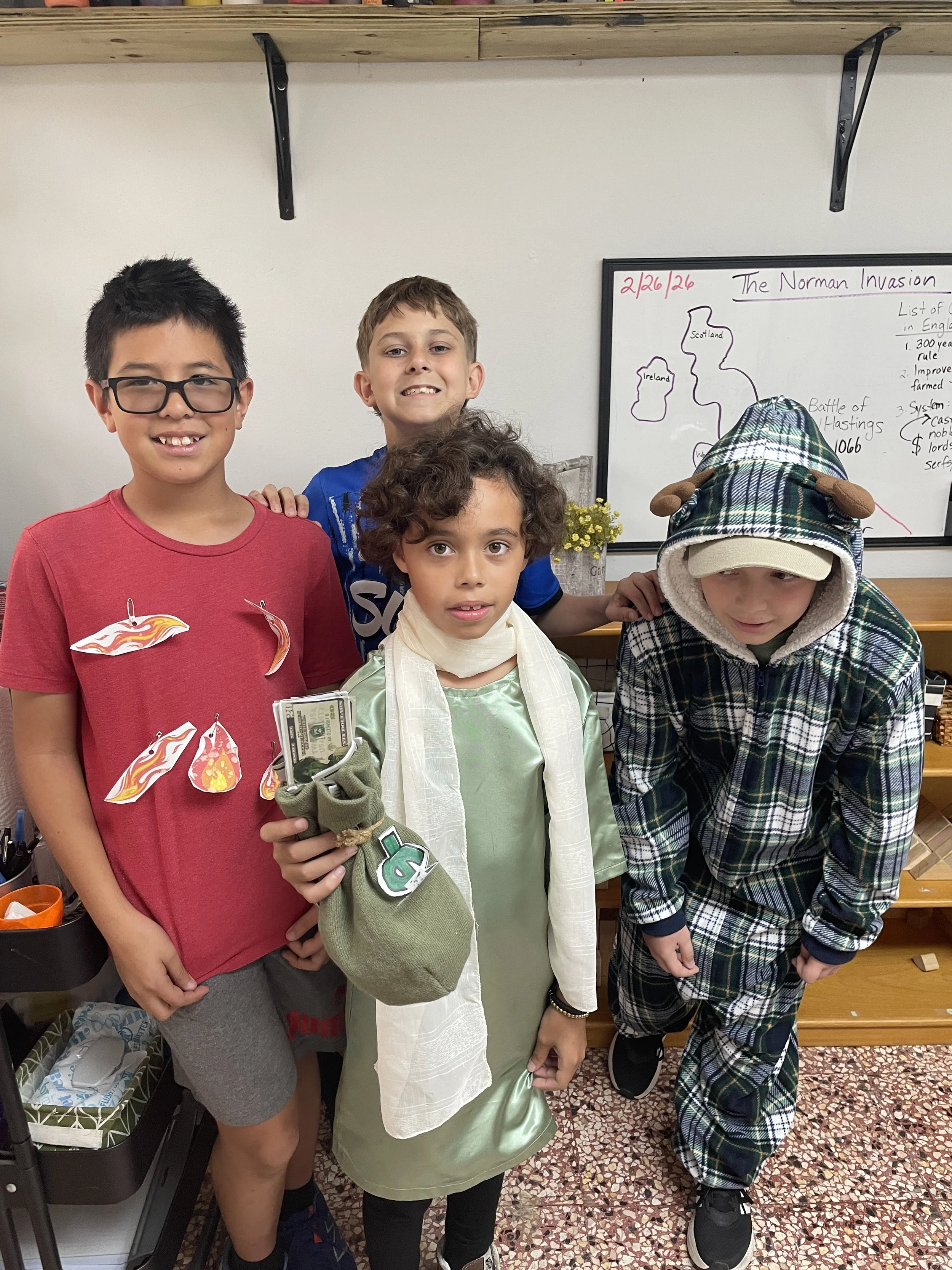 We have begun to incorporate a new book into the afternoon session, “The Story of the World.” We’ve learned a lot about the Norman Conquest, particularly, the Battle of Hastings of 1066. The kids even got to act out a scene from the reading, which is part of their at book package. Our discussions this week can help set them up for the readings about the Age of Chivalry in England during this time period.