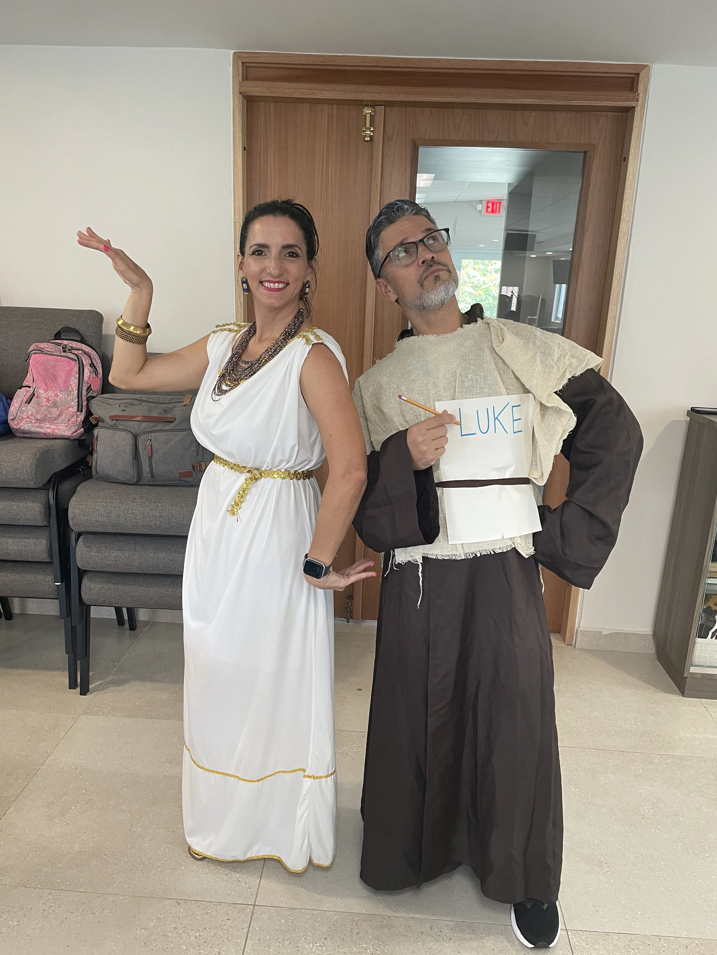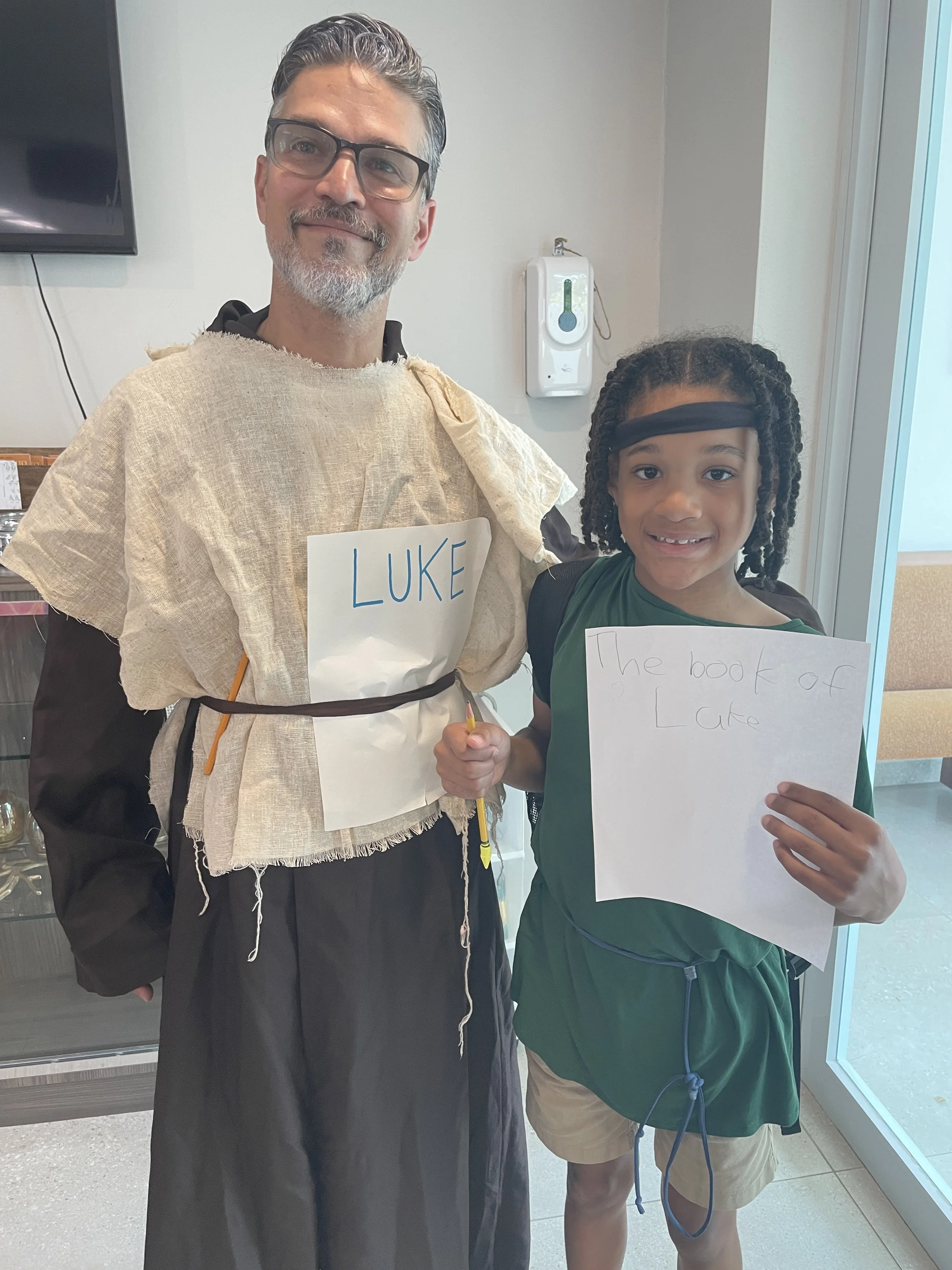 Mrs. Vivi and Mr. Jared came dressed as Elephant and Piggie! But the highlight was certainly seeing Carib come on Friday dressed as Zaccheus the tax collector with his own face printed on his money! This was perfect as we read through this very story in our readings of Luke 18 and 19. Check out the other great Bible characters shown in the photos below.