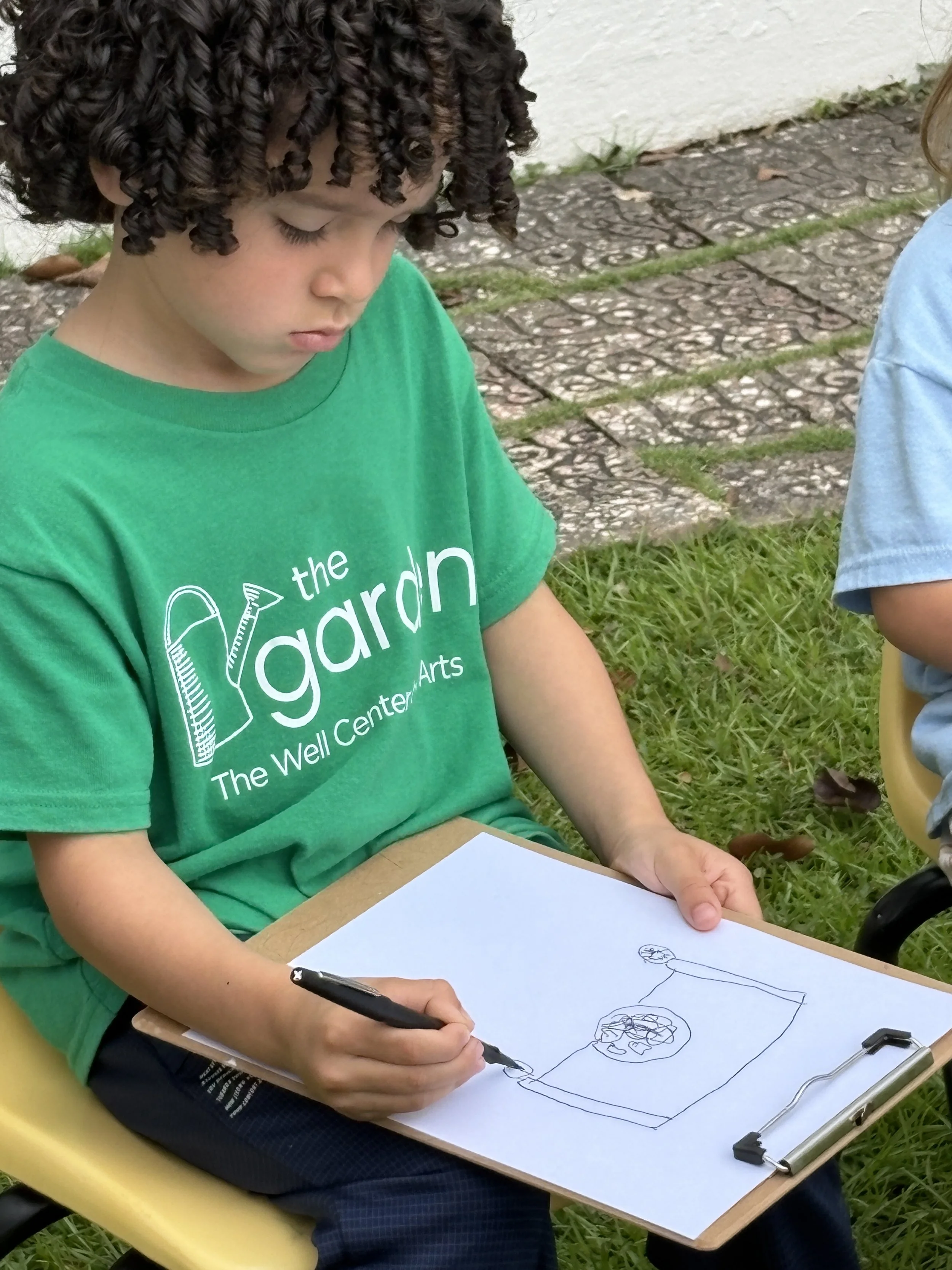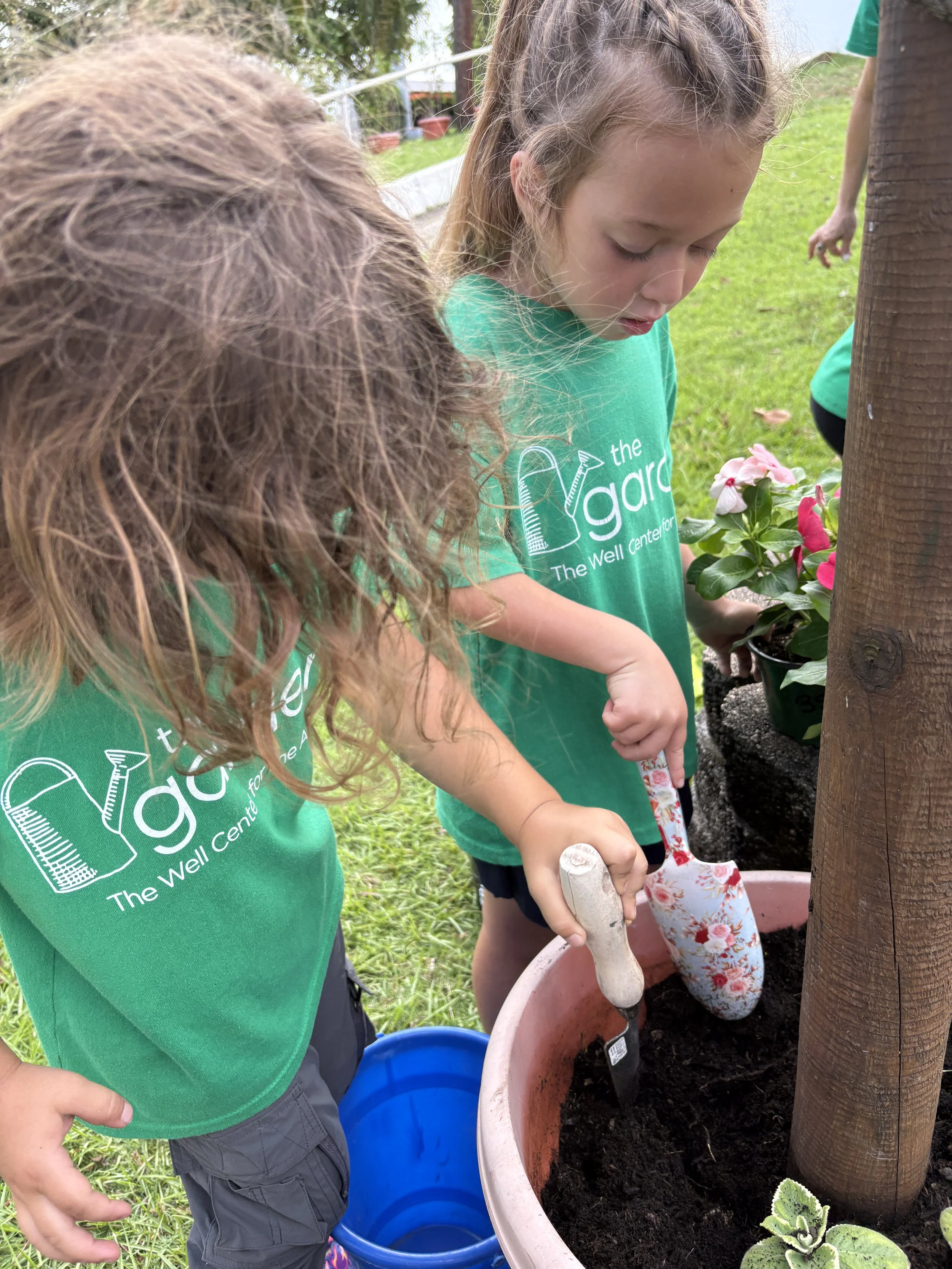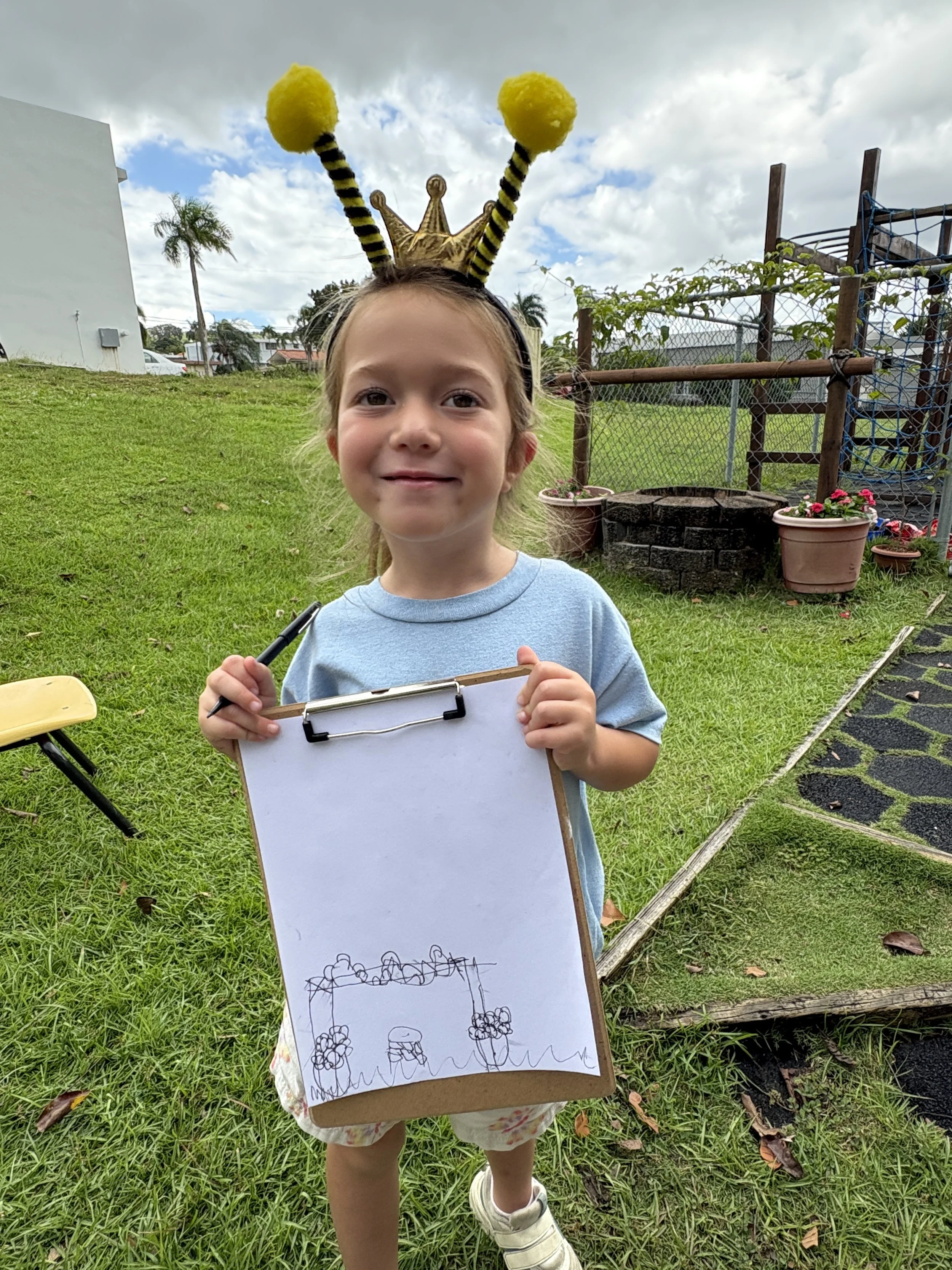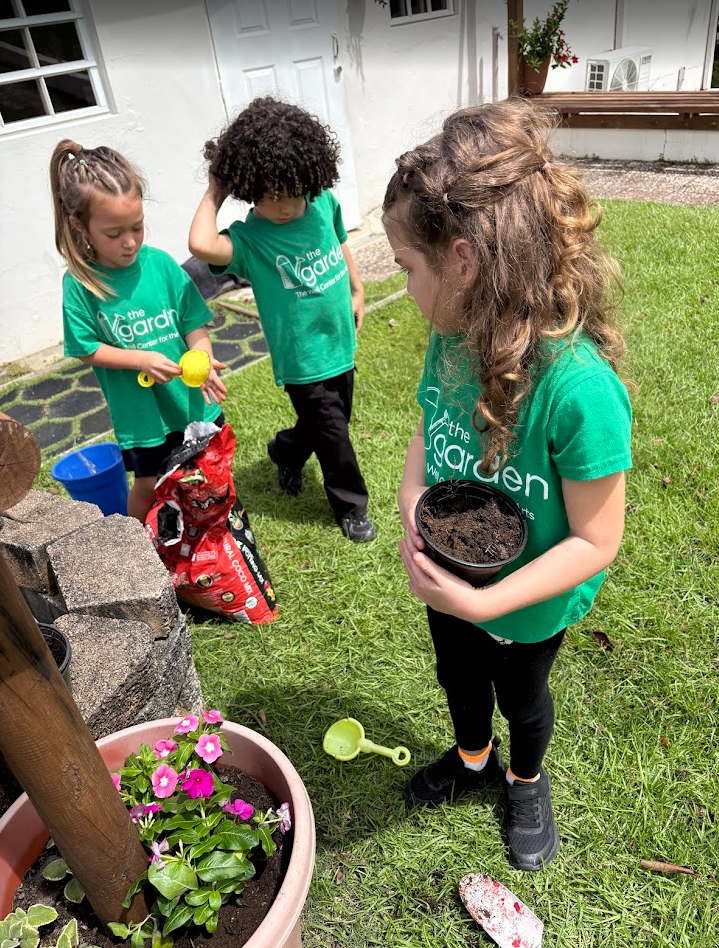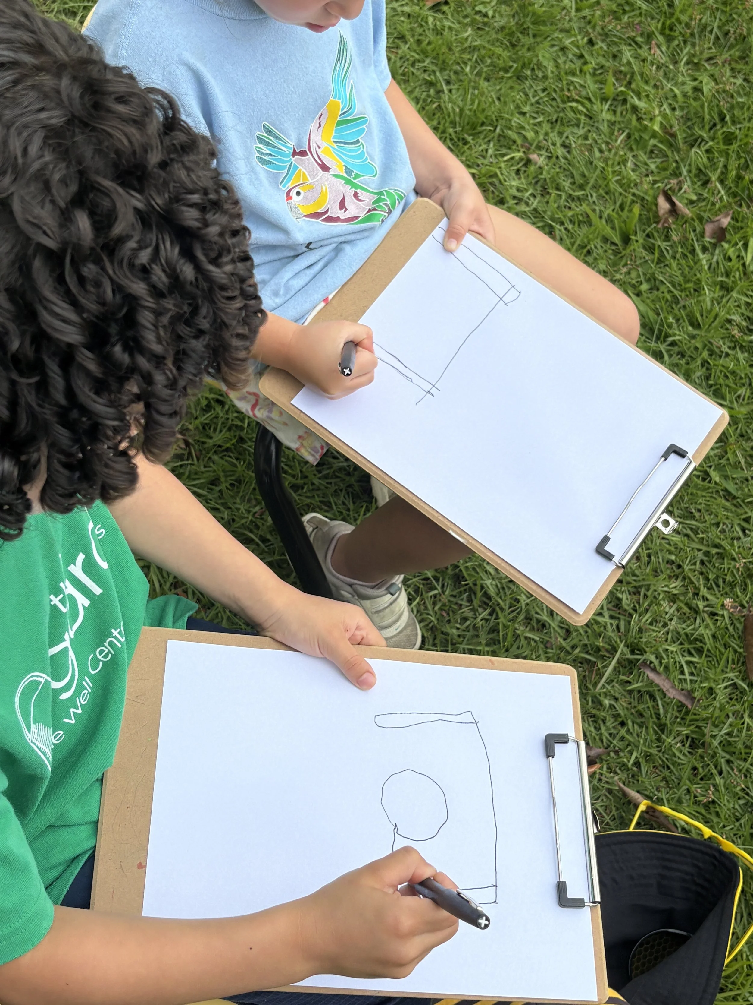 For activity time, we got to plant flowers by the well for the bees to enjoy. It was so much fun working with the soil and seeing the flower roots as we carefully pulled them out of their small pots to transfer them to a larger pot outside. We also went outside to look at and draw a picture of the flowers we planted by the well. It’s called observational drawing, where you look at something in real life (still life) and transfer it to paper. It’s great for improving hand-eye coordination. The kids really enjoyed doing this and took it very seriously.
