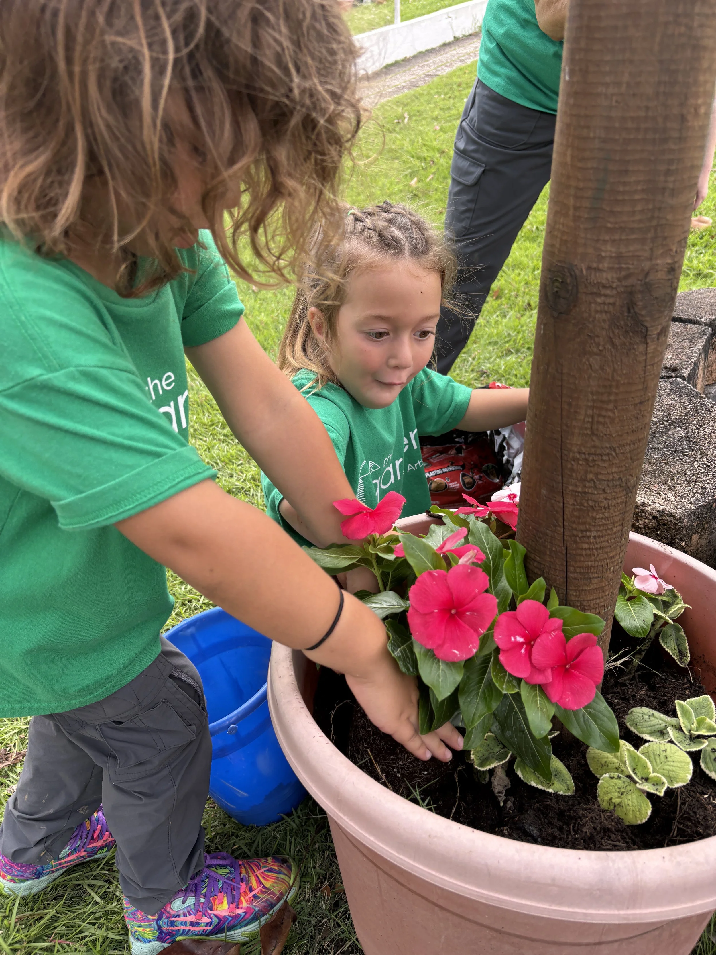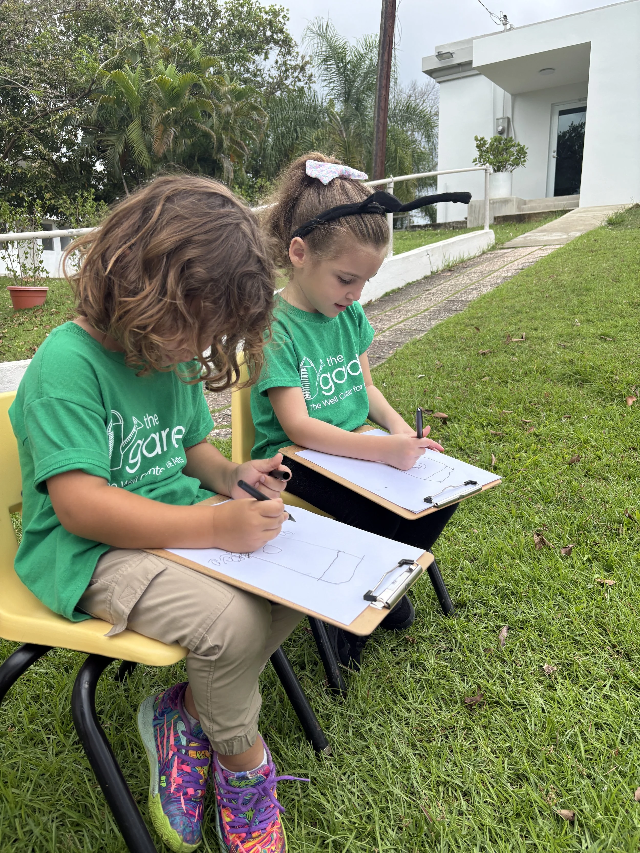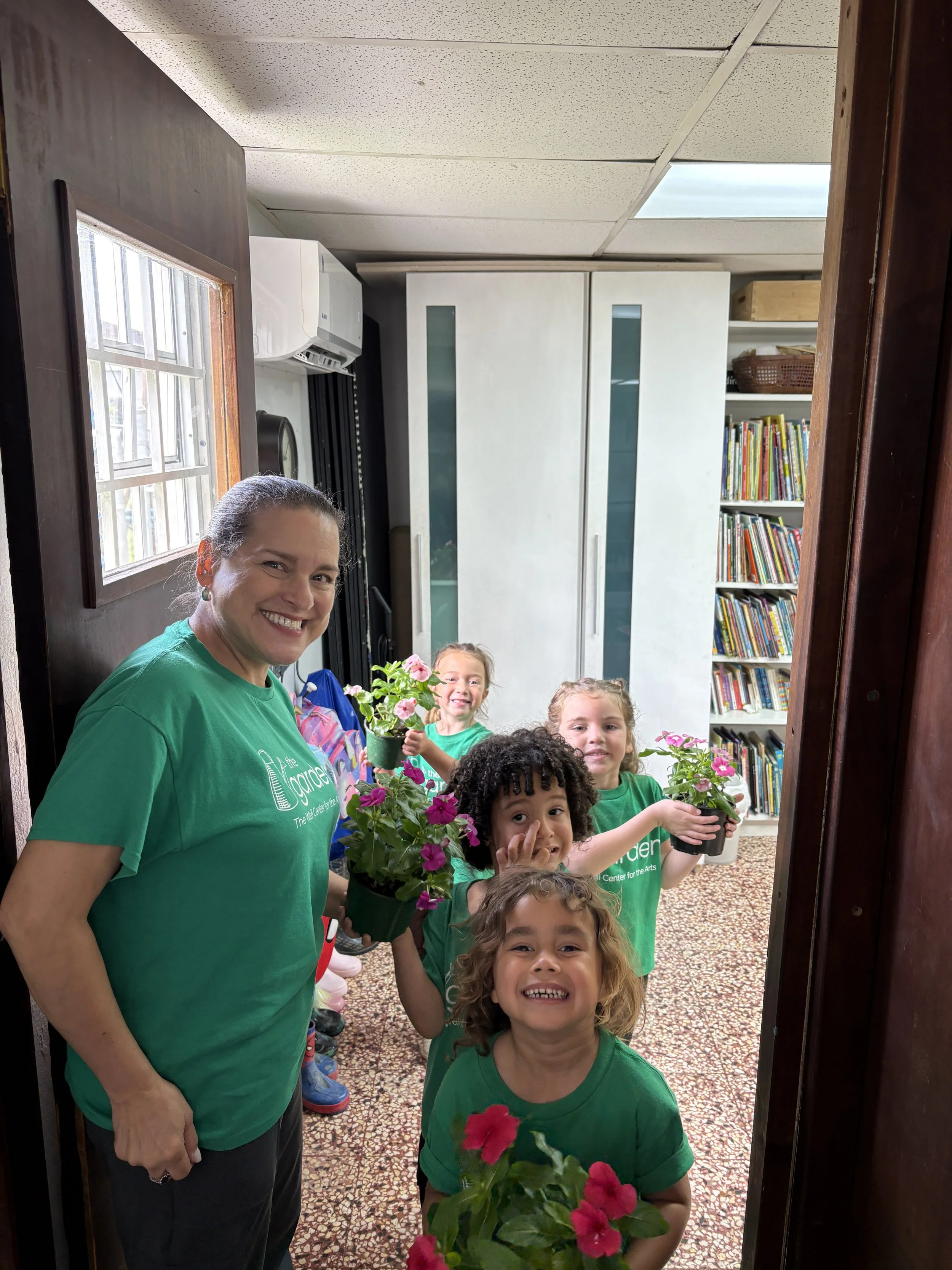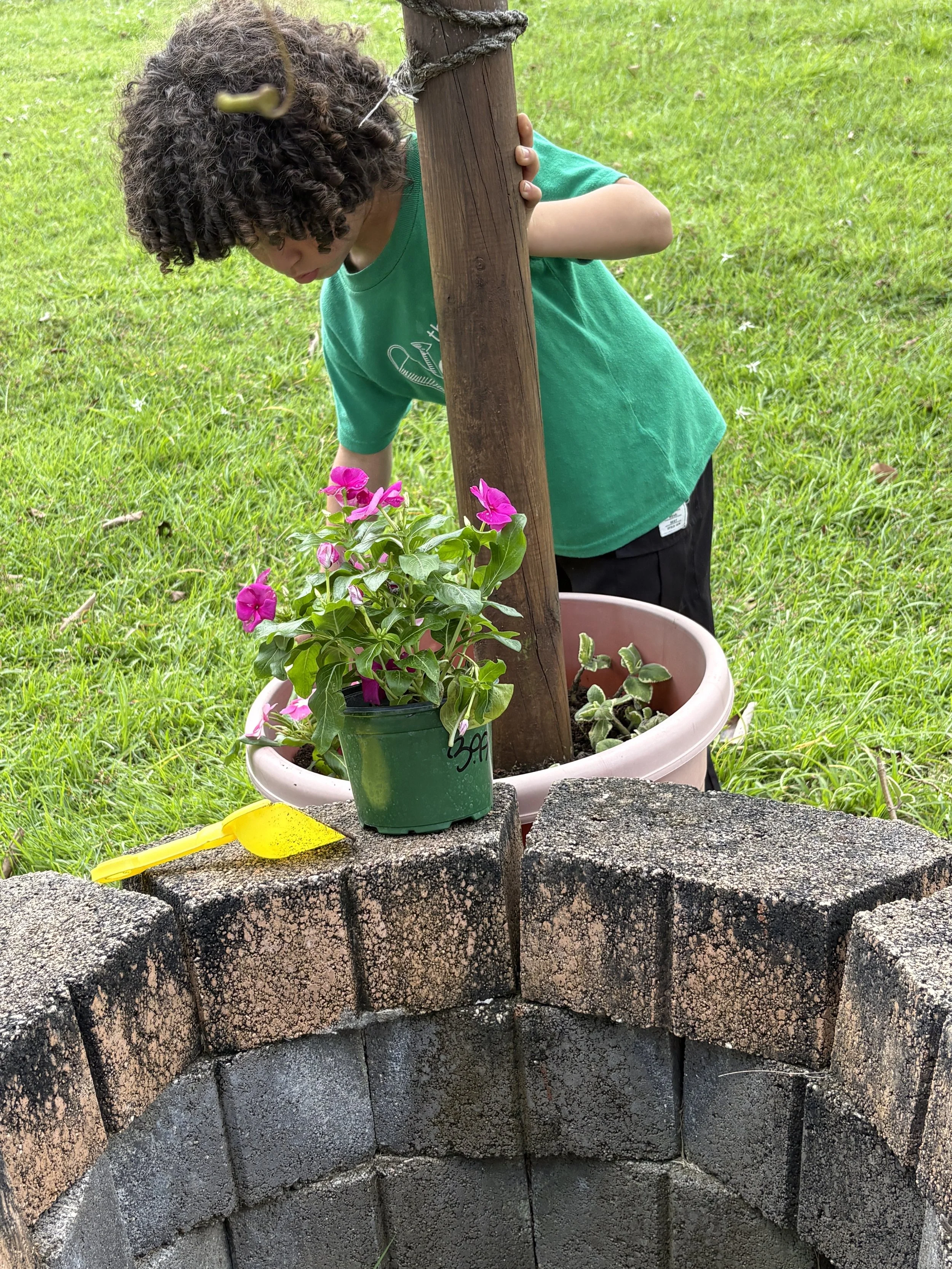 For activity time, we got to plant flowers by the well for the bees to enjoy. It was so much fun working with the soil and seeing the flower roots as we carefully pulled them out of their small pots to transfer them to a larger pot outside. We also went outside to look at and draw a picture of the flowers we planted by the well. It’s called observational drawing, where you look at something in real life (still life) and transfer it to paper. It’s great for improving hand-eye coordination. The kids really enjoyed doing this and took it very seriously.
