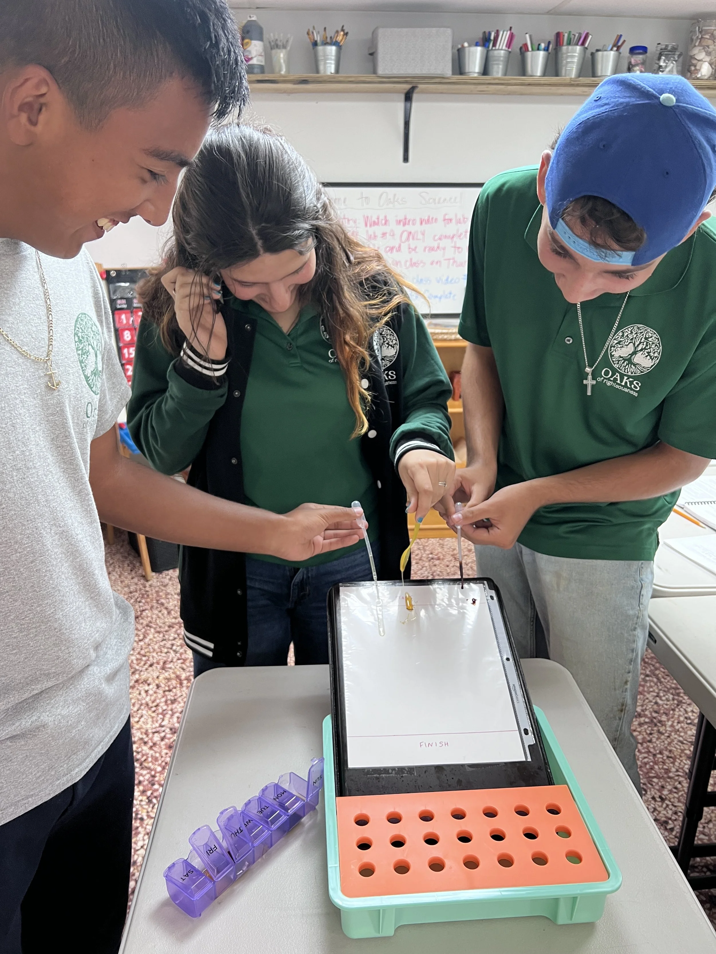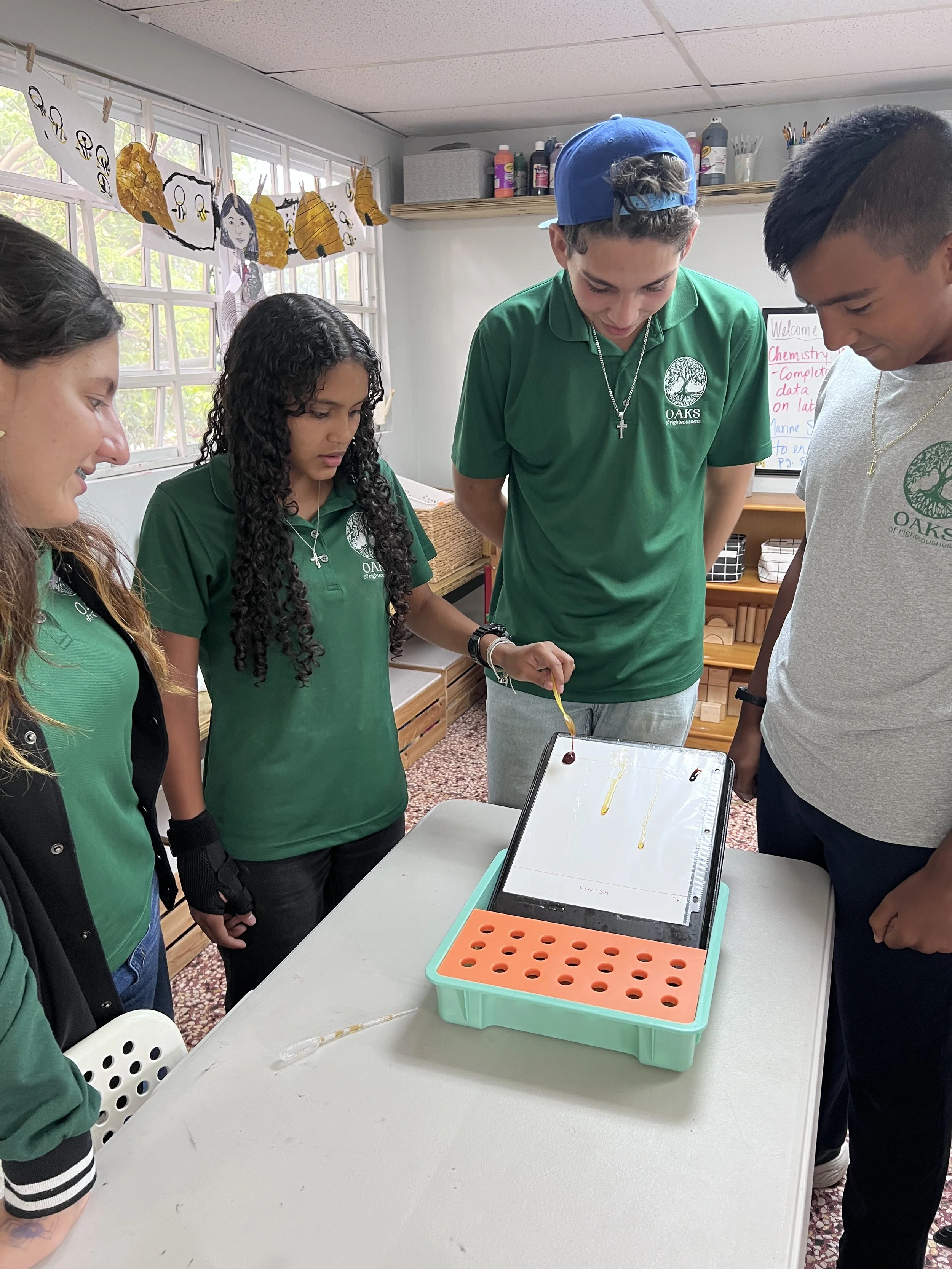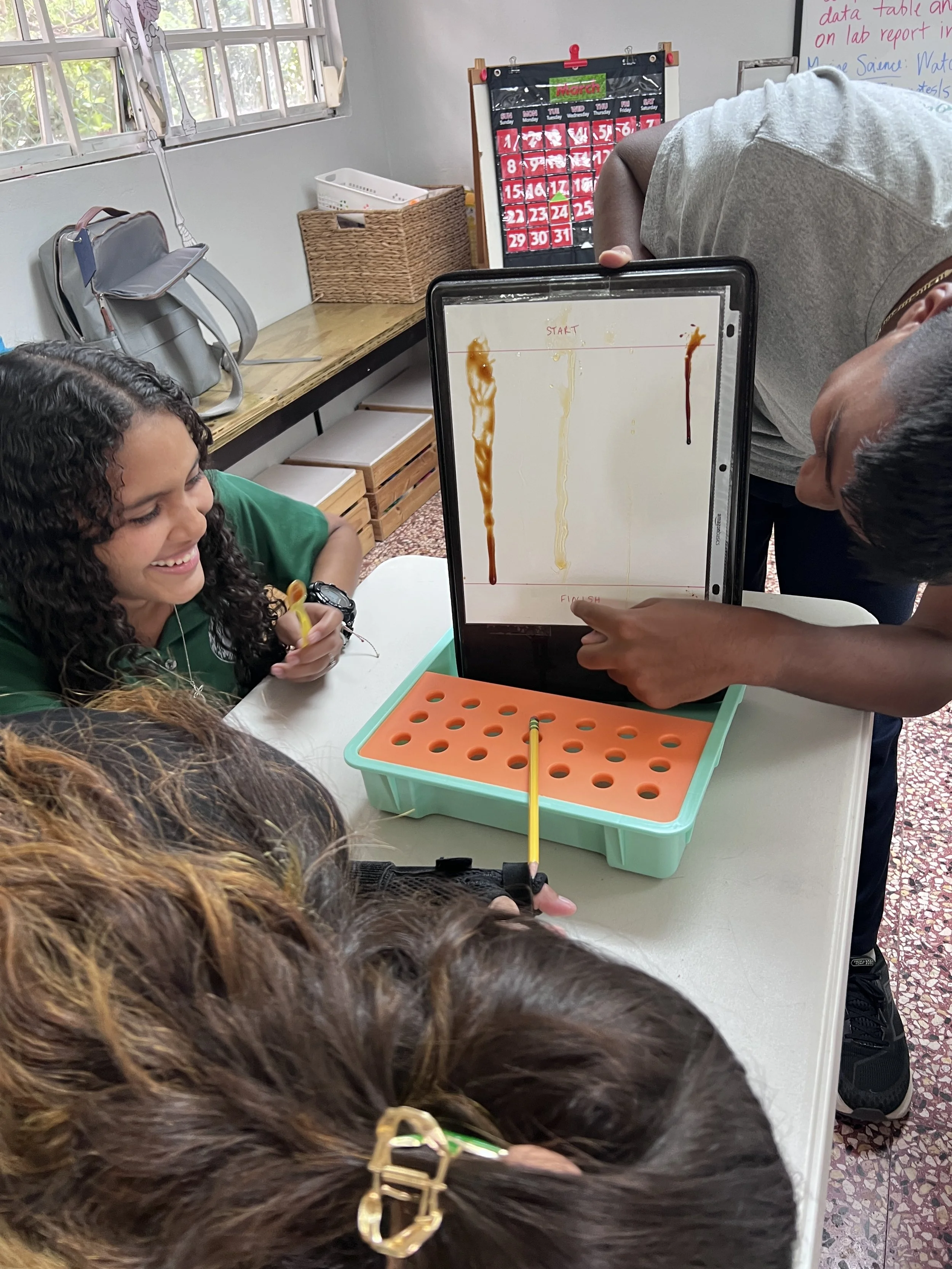 In Chemistry, the students learned all about viscosity--the measurement of the internal friction or resistance to flow of a liquid. To explore the concept more, we conducted a viscosity race in which the competitors were molasses, honey, maple syrup, dish soap, barbeque sauce, and avocado oil. Molasses won the prize of having the slowest flow and highest viscosity while avocado oil won the prize of having the fastest flow and lowest viscosity. The students also worked on a virtual viscosity lab in which they dropped a metal ball bearing into several types of liquids at different temperatures and calculated their viscosity scores.
