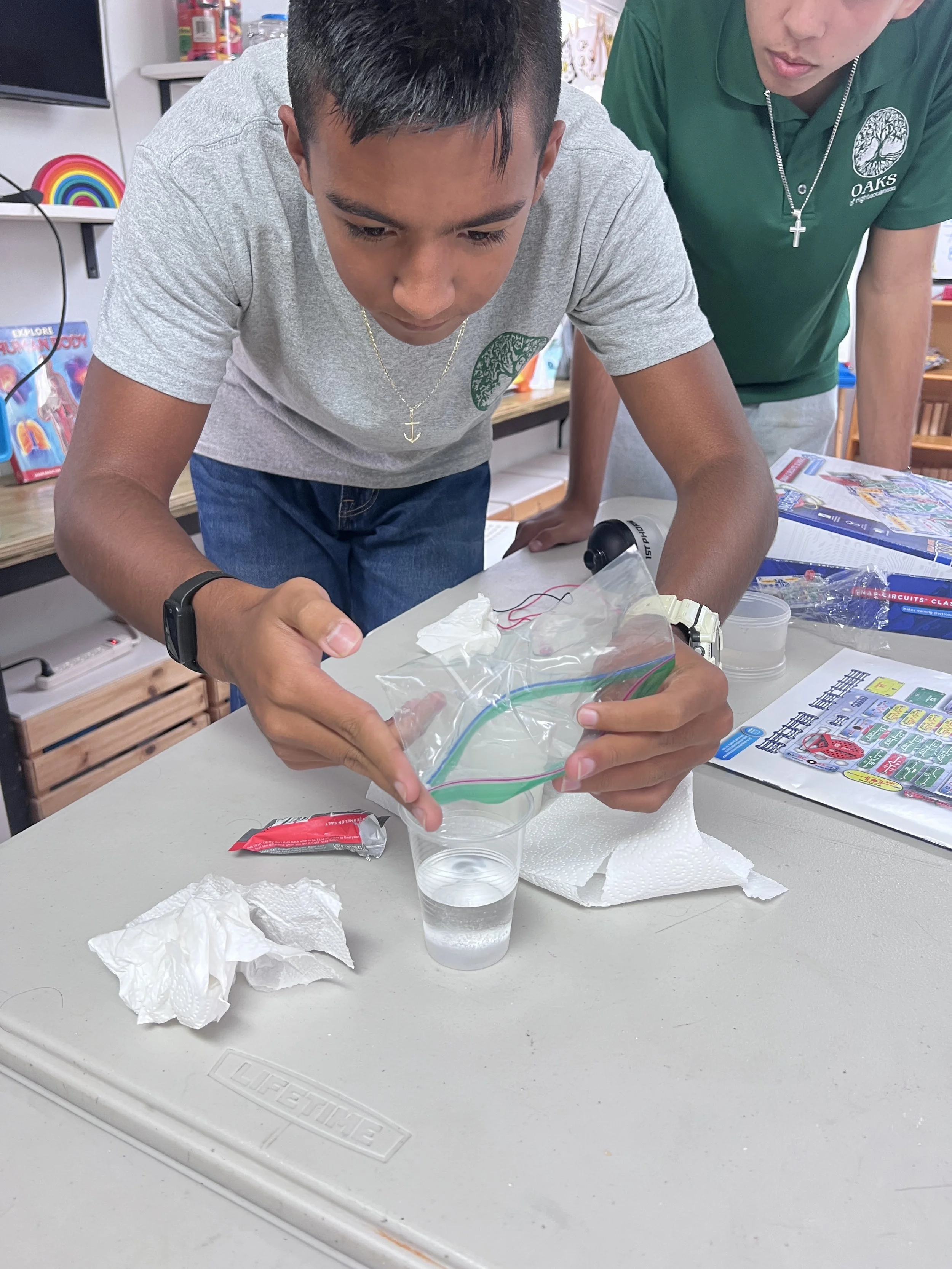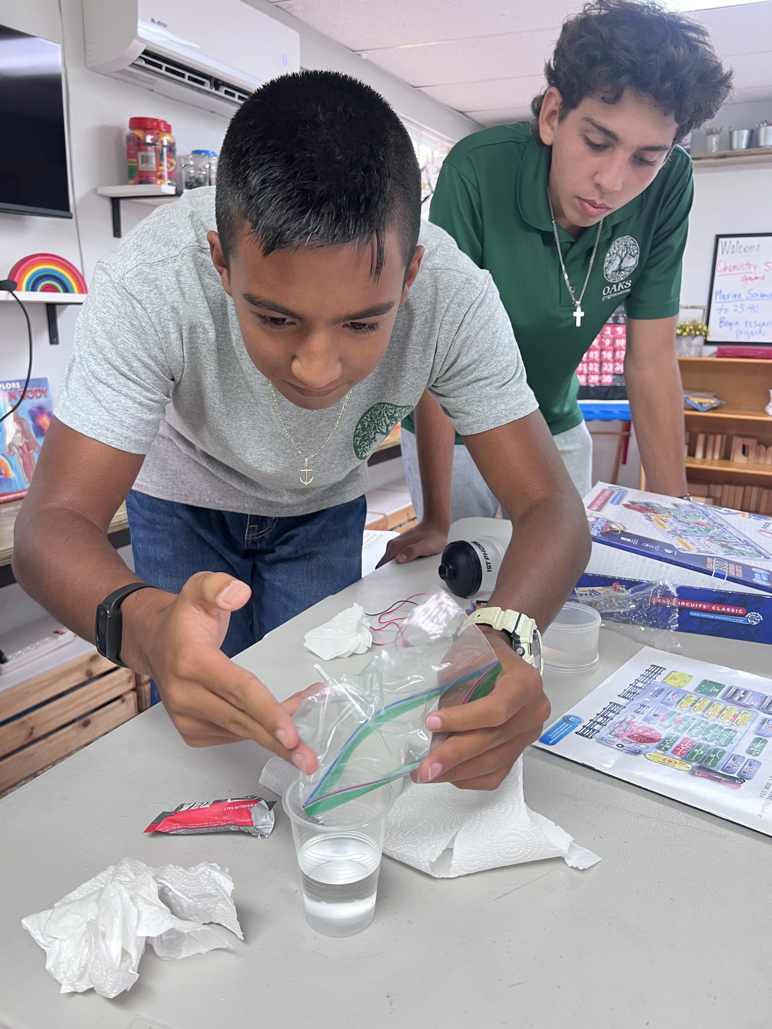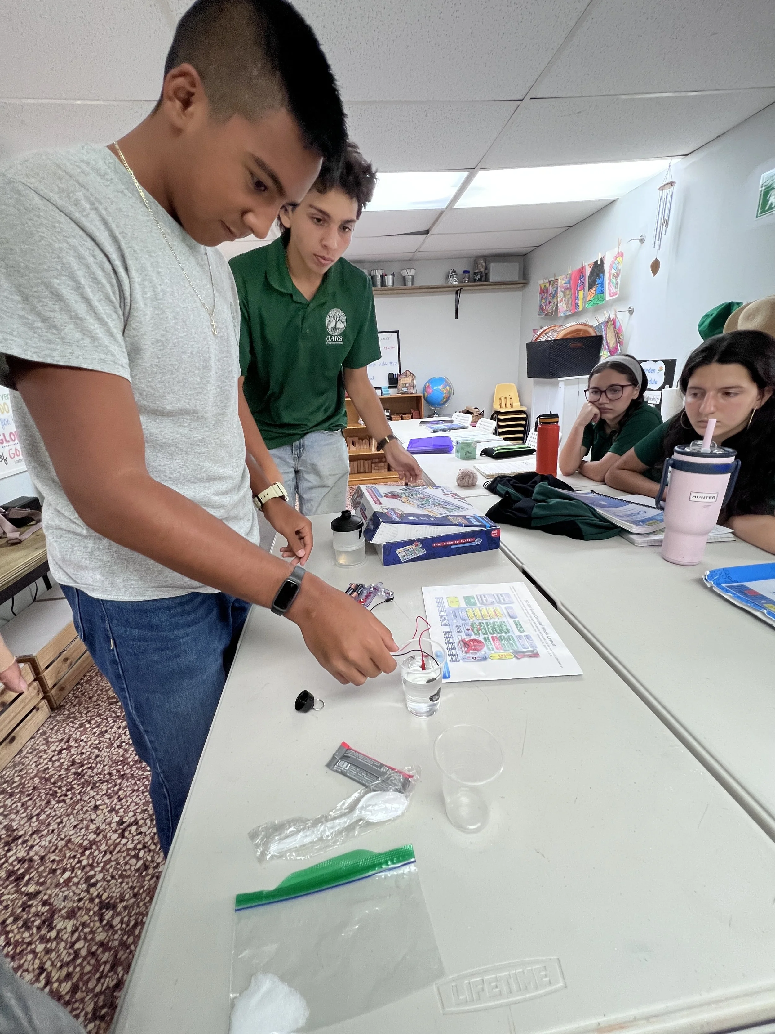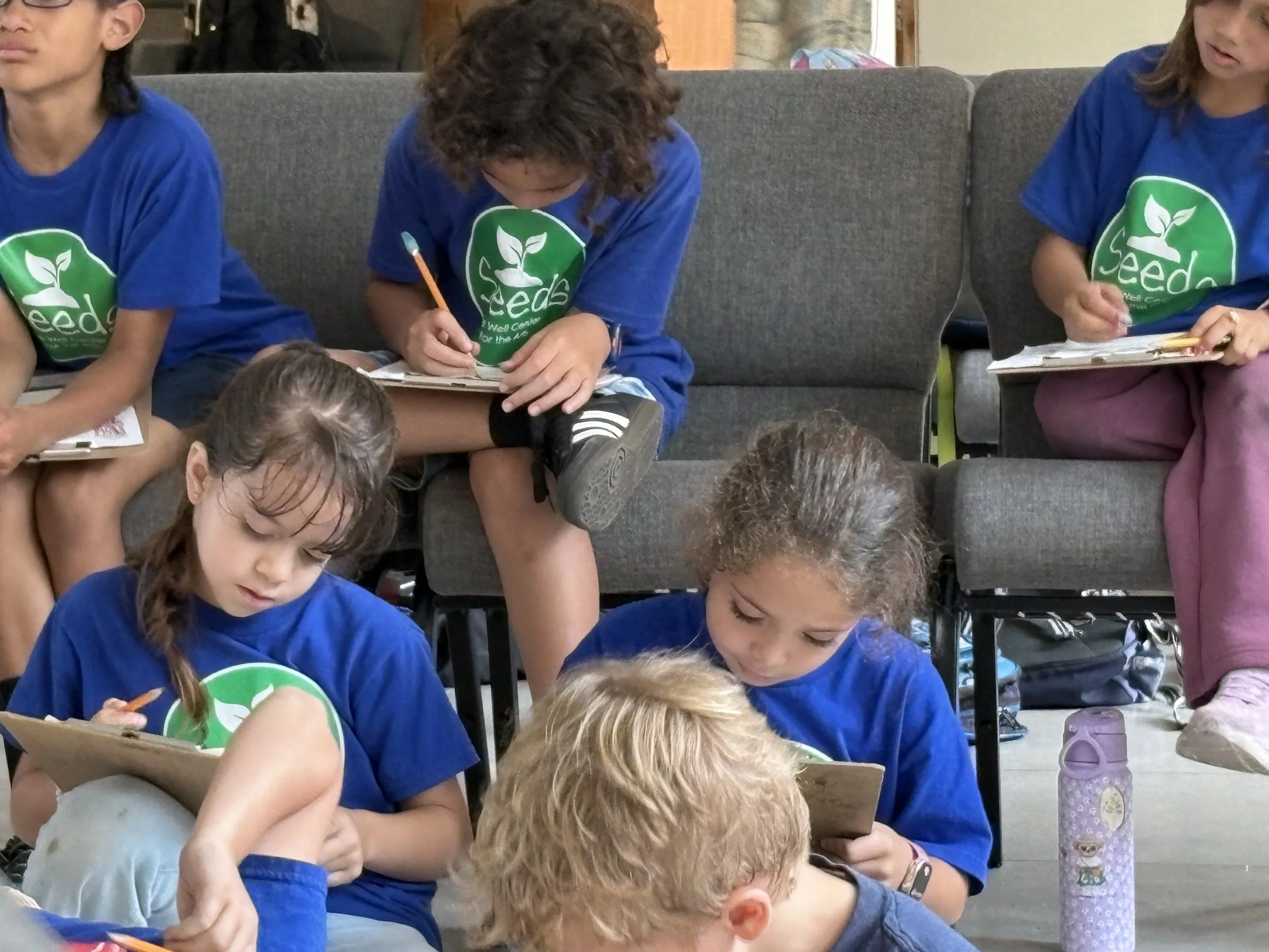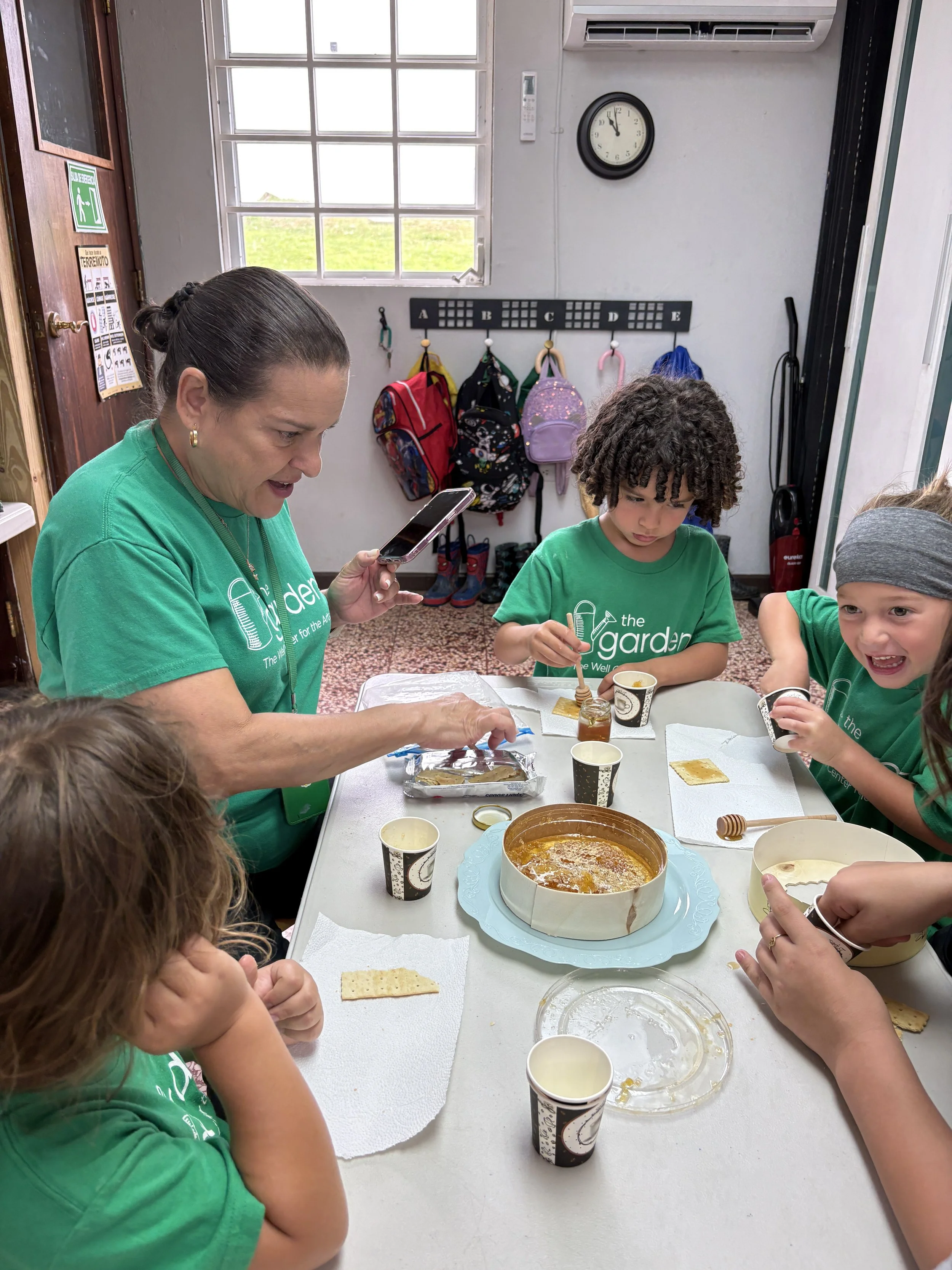 Isaiah is pictured here focusing intensely on his science project. This type of focus happened all over the programs this week, as the Oaks conducted experiments, the Seeds concentrated on a “Mona Lisa” project and the Garden kids continued their study on bees and especially…honey (yum!).