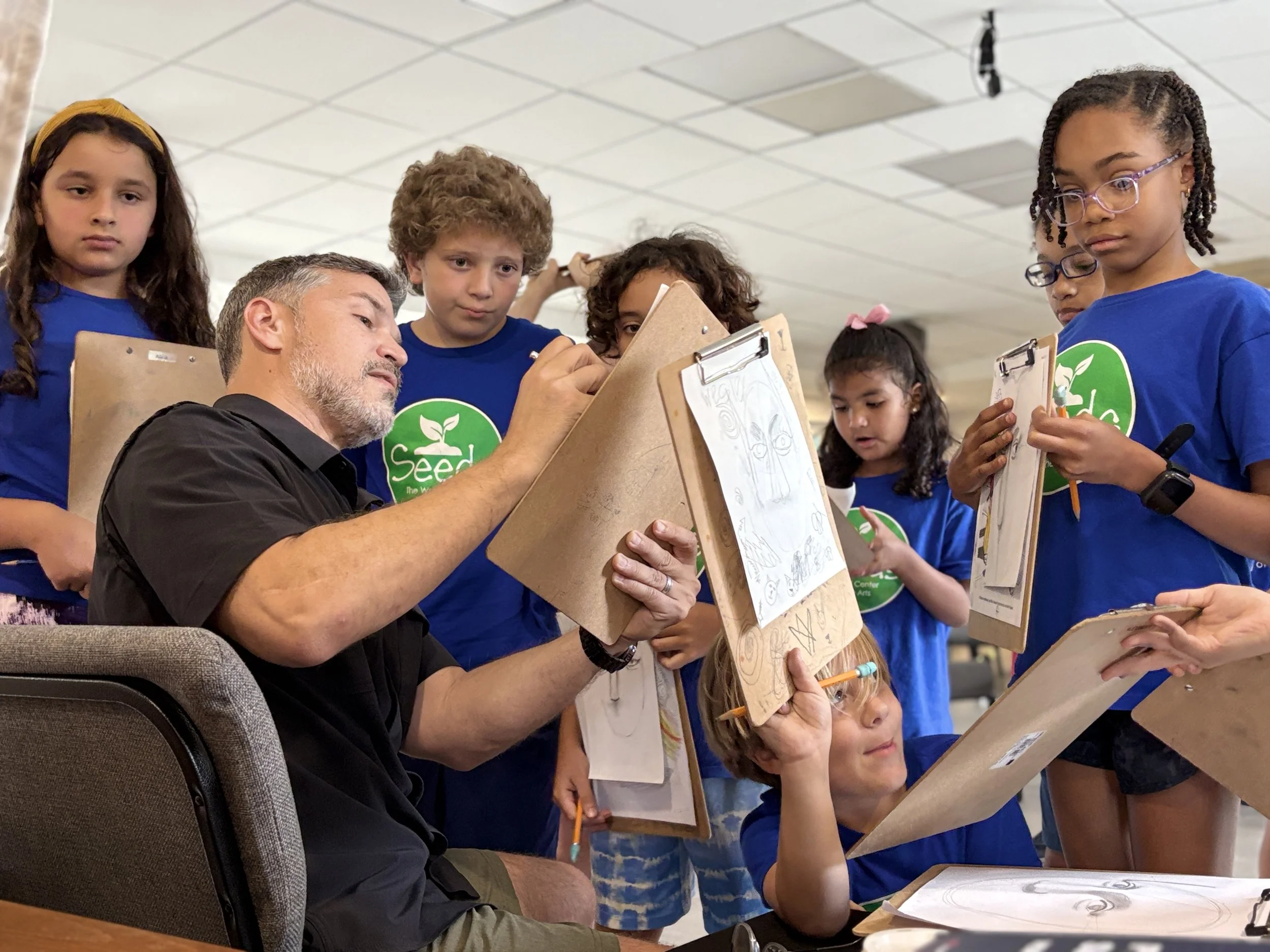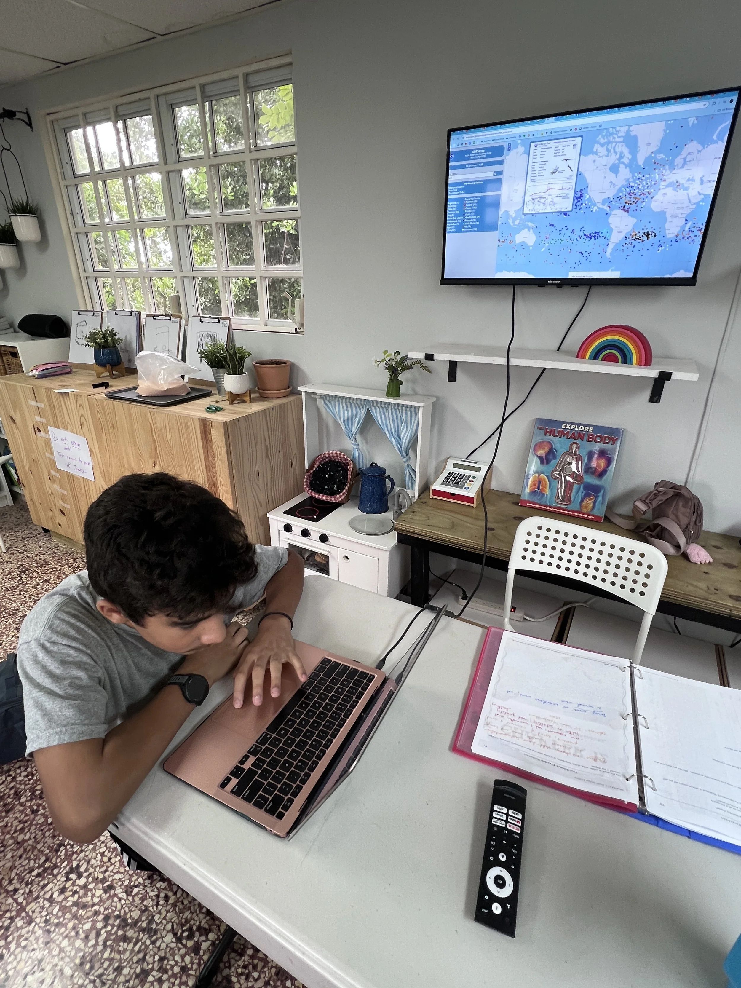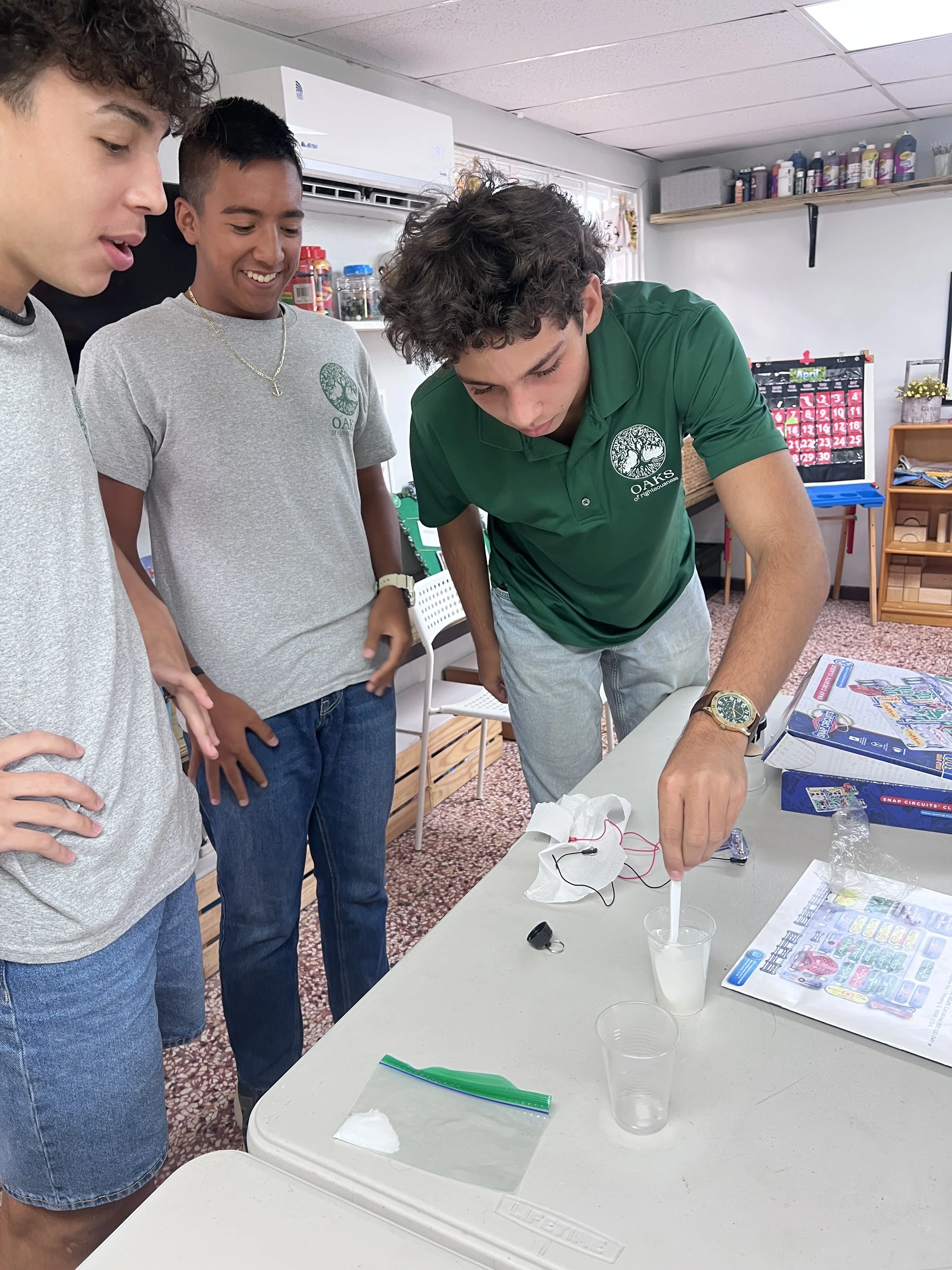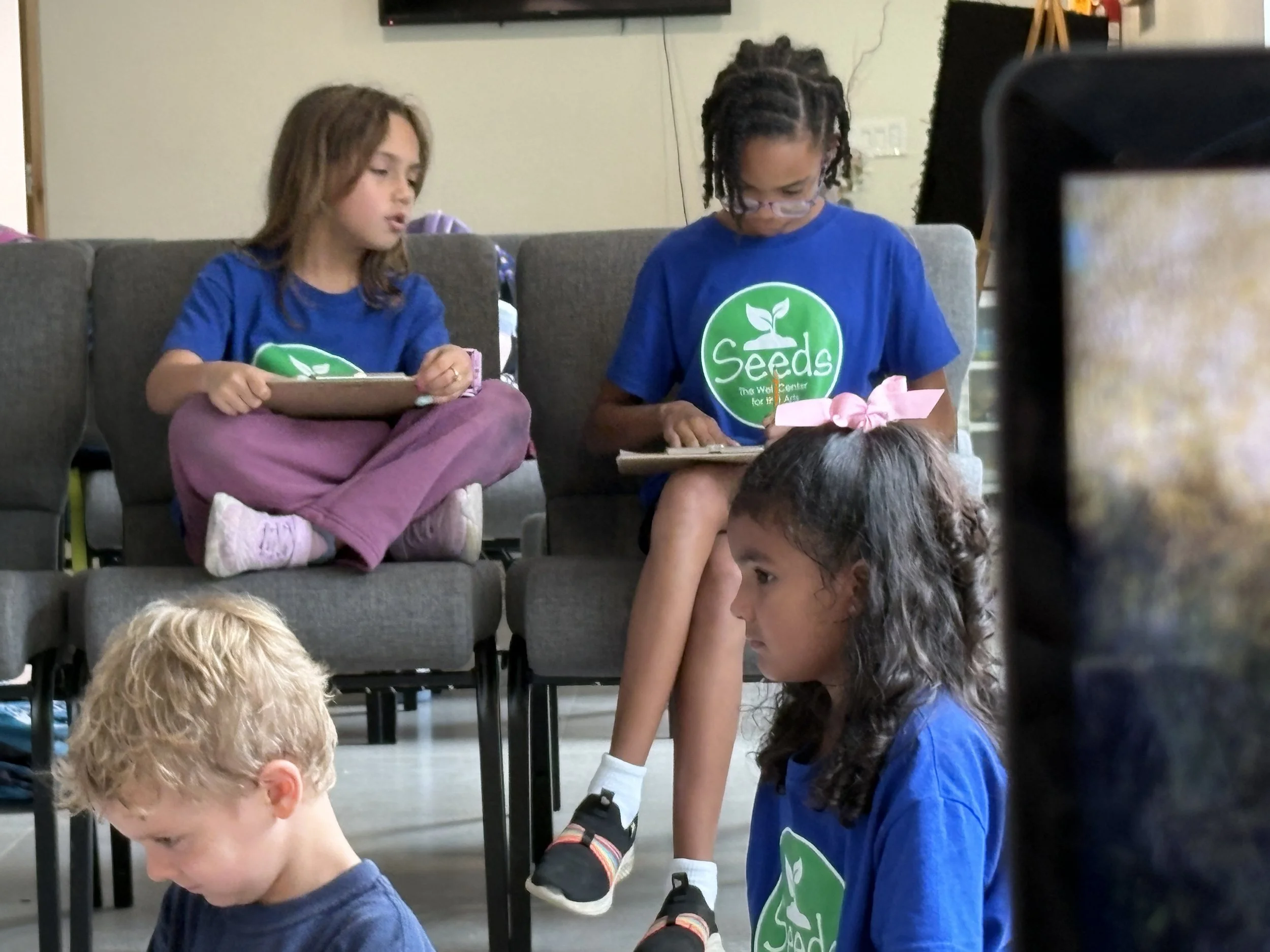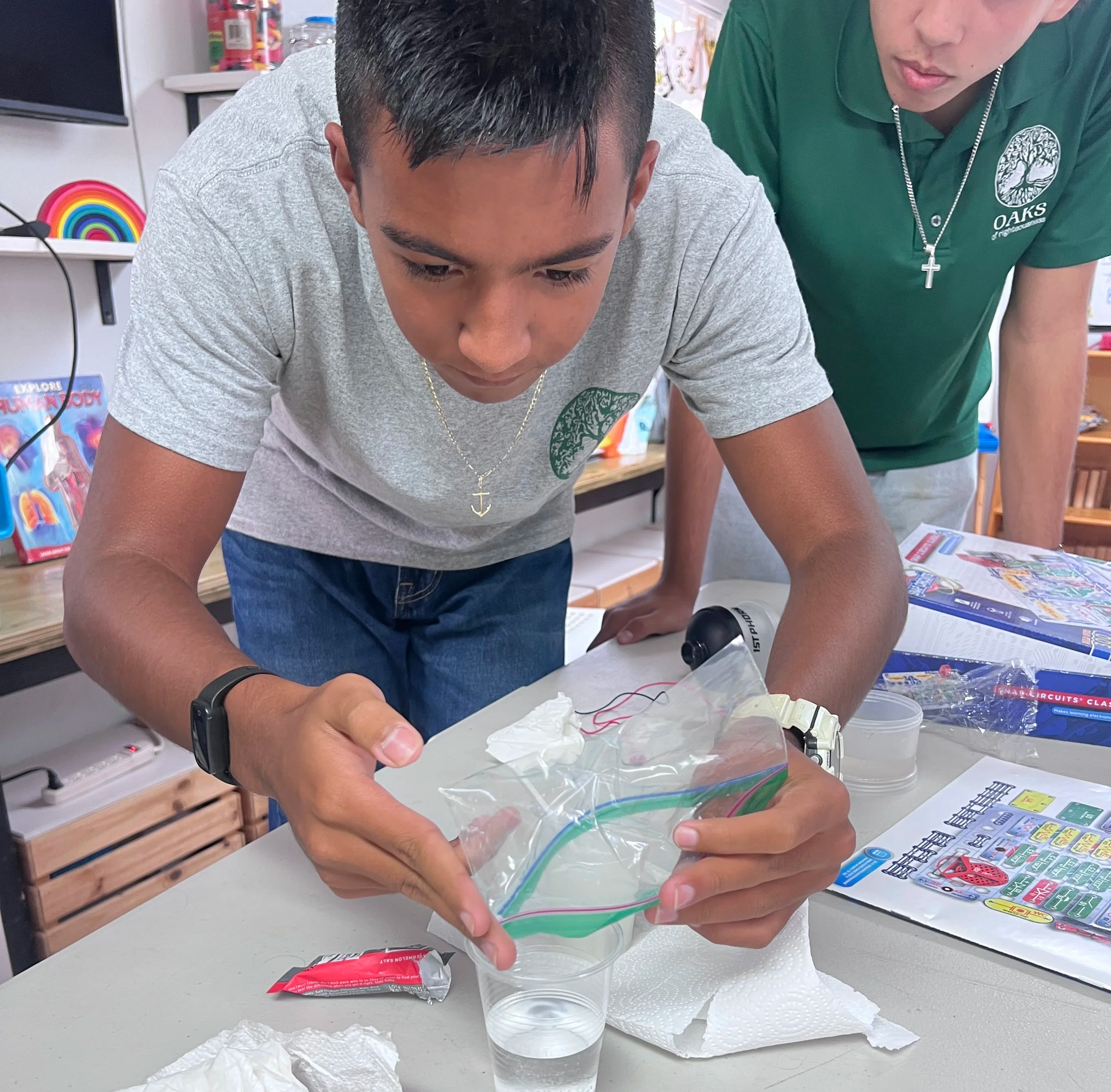 Isaiah is pictured here focusing intensely on his science project. This type of focus happened all over the programs this week, as the Oaks conducted experiments, the Seeds concentrated on a “Mona Lisa” project and the Garden kids continued their study on bees and especially…honey (yum!).