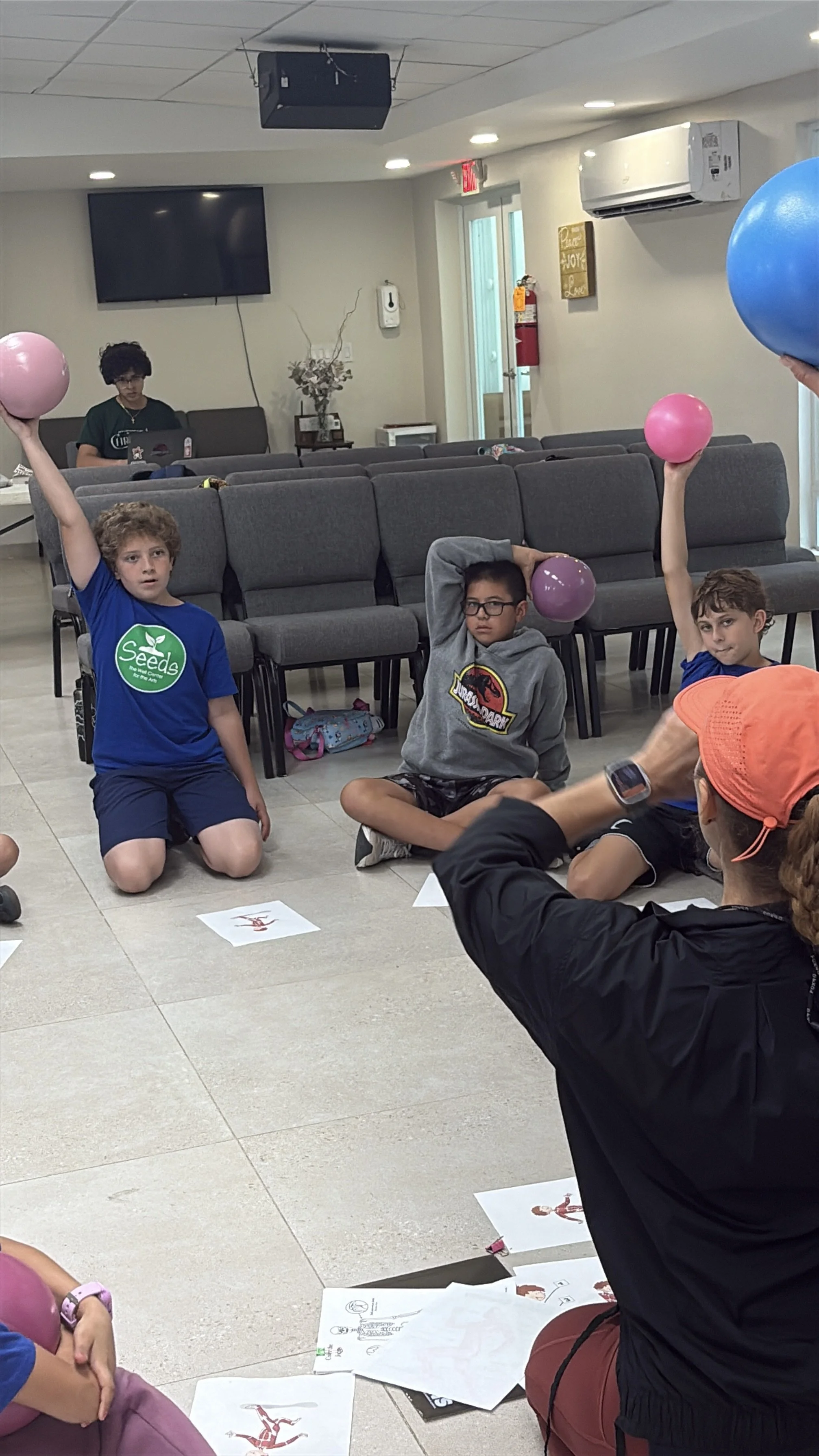 Finally, although the rain prevented Mrs. Michelle from teaching the full class, she gave a great introduction to muscles and the muscular system using exercise balls. This was an integrated Science and Physical Education course. We will resume where we left off next week.