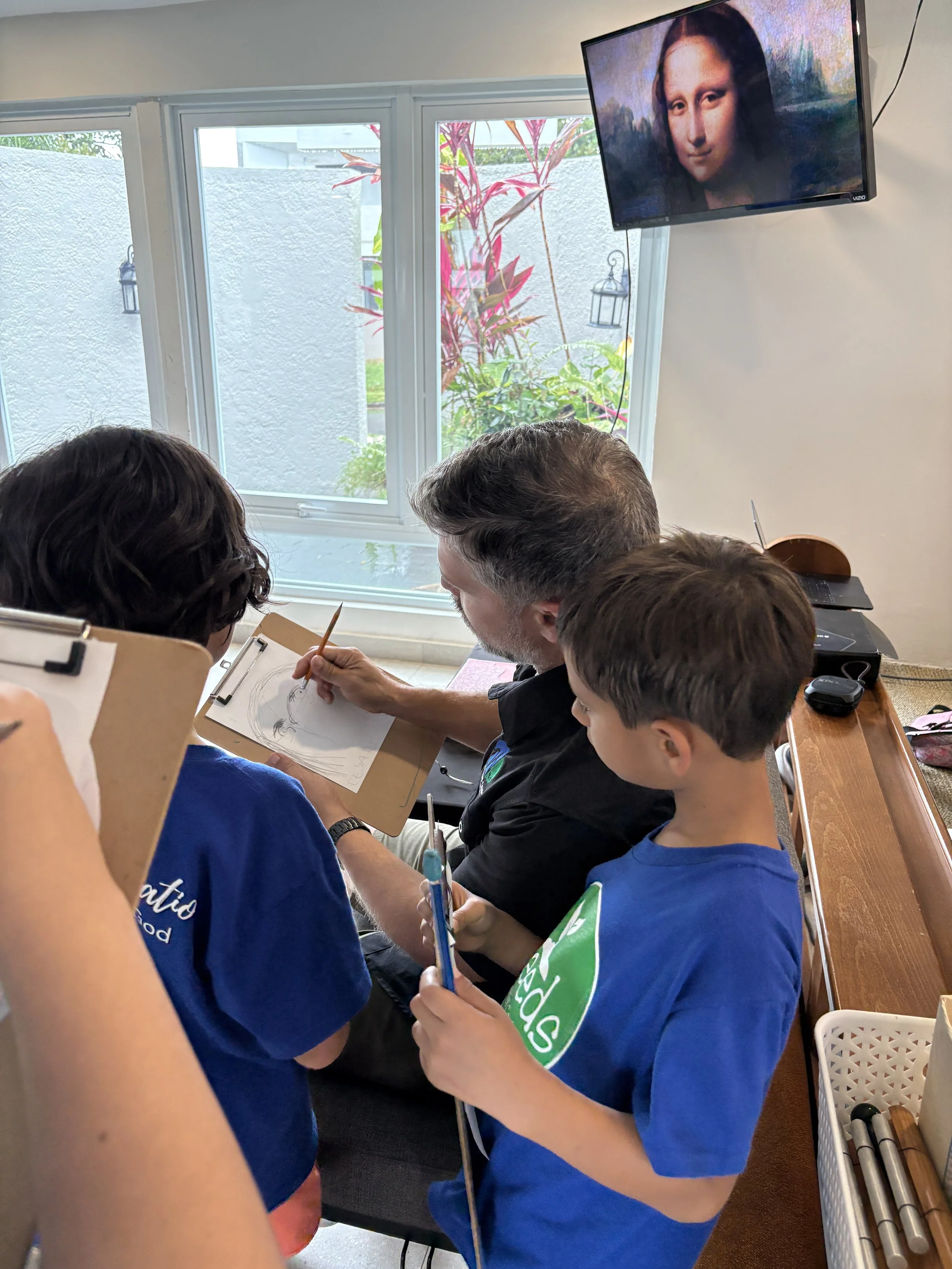 History was our main focus this week, where we spent two days learning about the Renaissance and Leonardo da Vinci's famous painting, the Mona Lisa. Mr. Jared led the children through a step by step drawing lesson while talking about different art techniques like chiaroscuro and shading. He also discussed how another empire, called the Ottoman Turks led by Suleiman I, rose to power during this time of history as well.